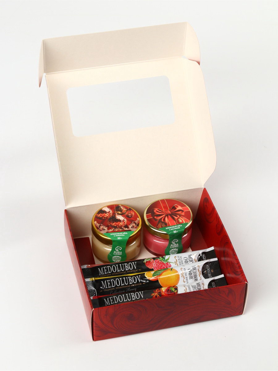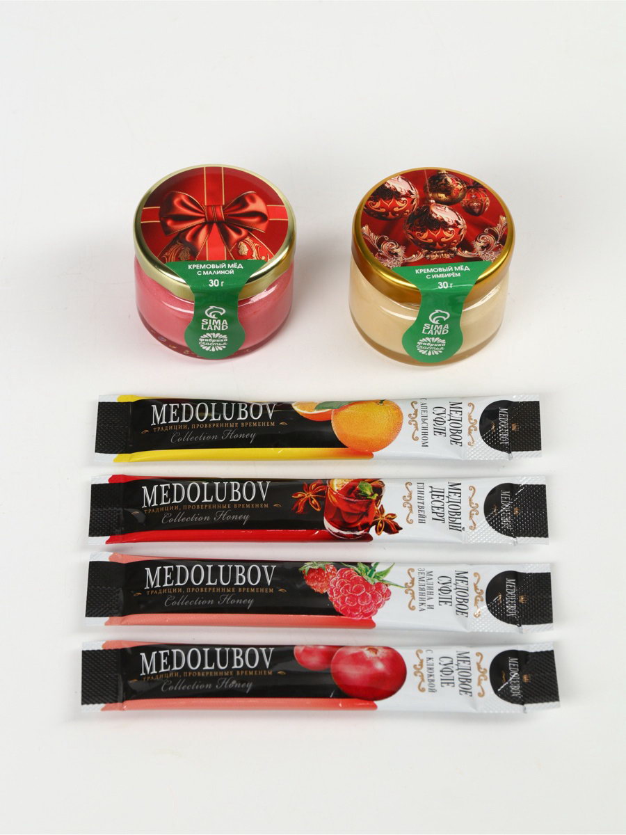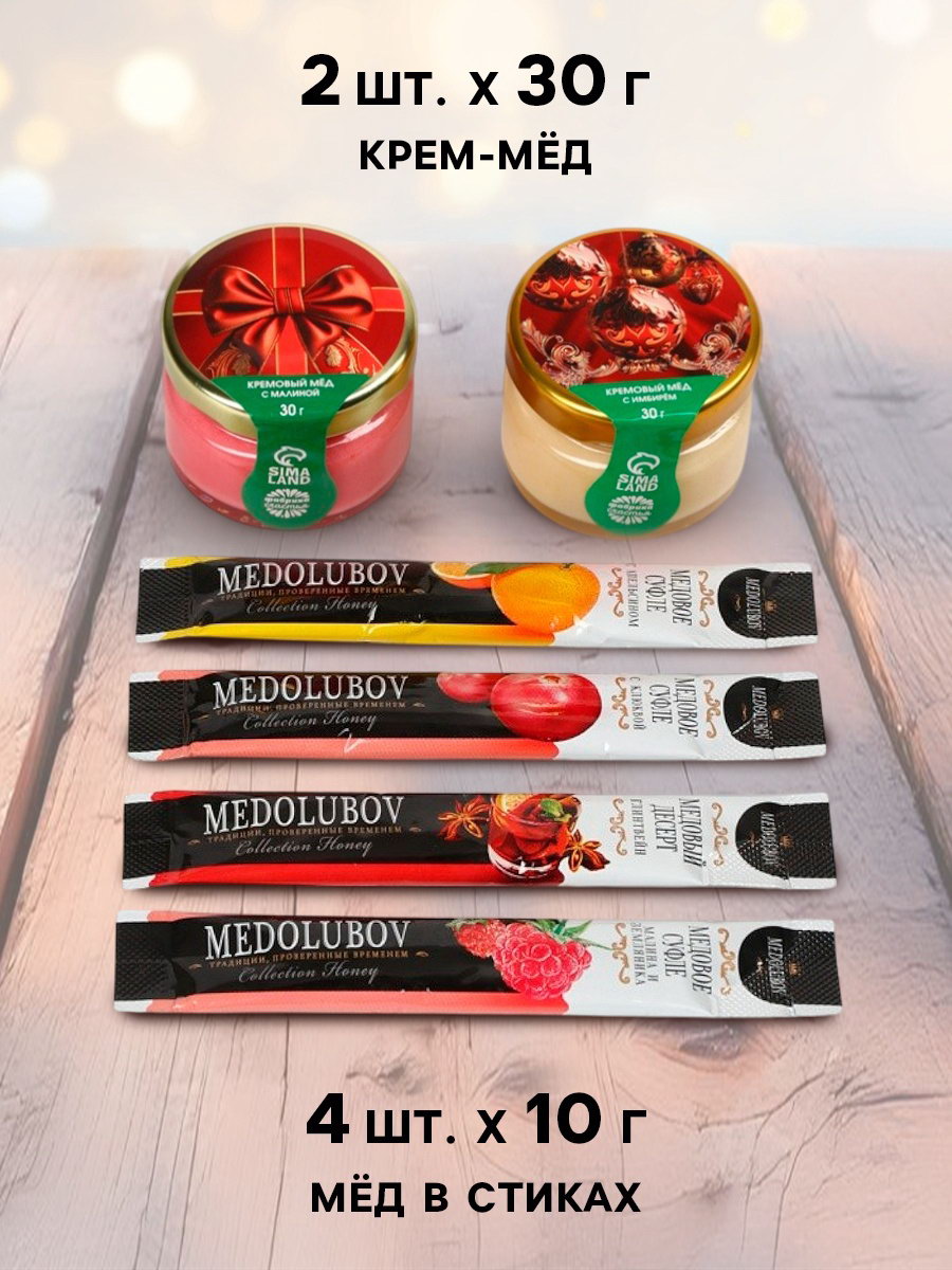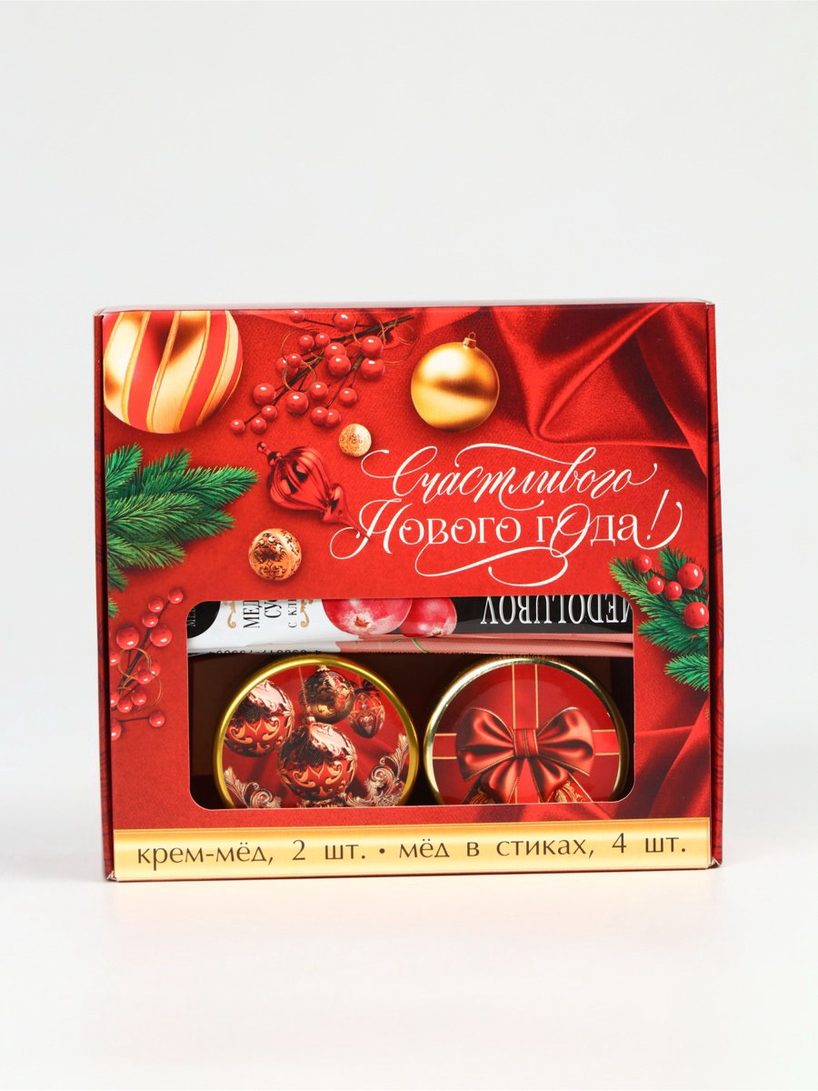 Подарочный набор "Счастливого нового года": крем-мёд 2 шт., мёд в стиках 4 шт., Фабрика счастья, Россия