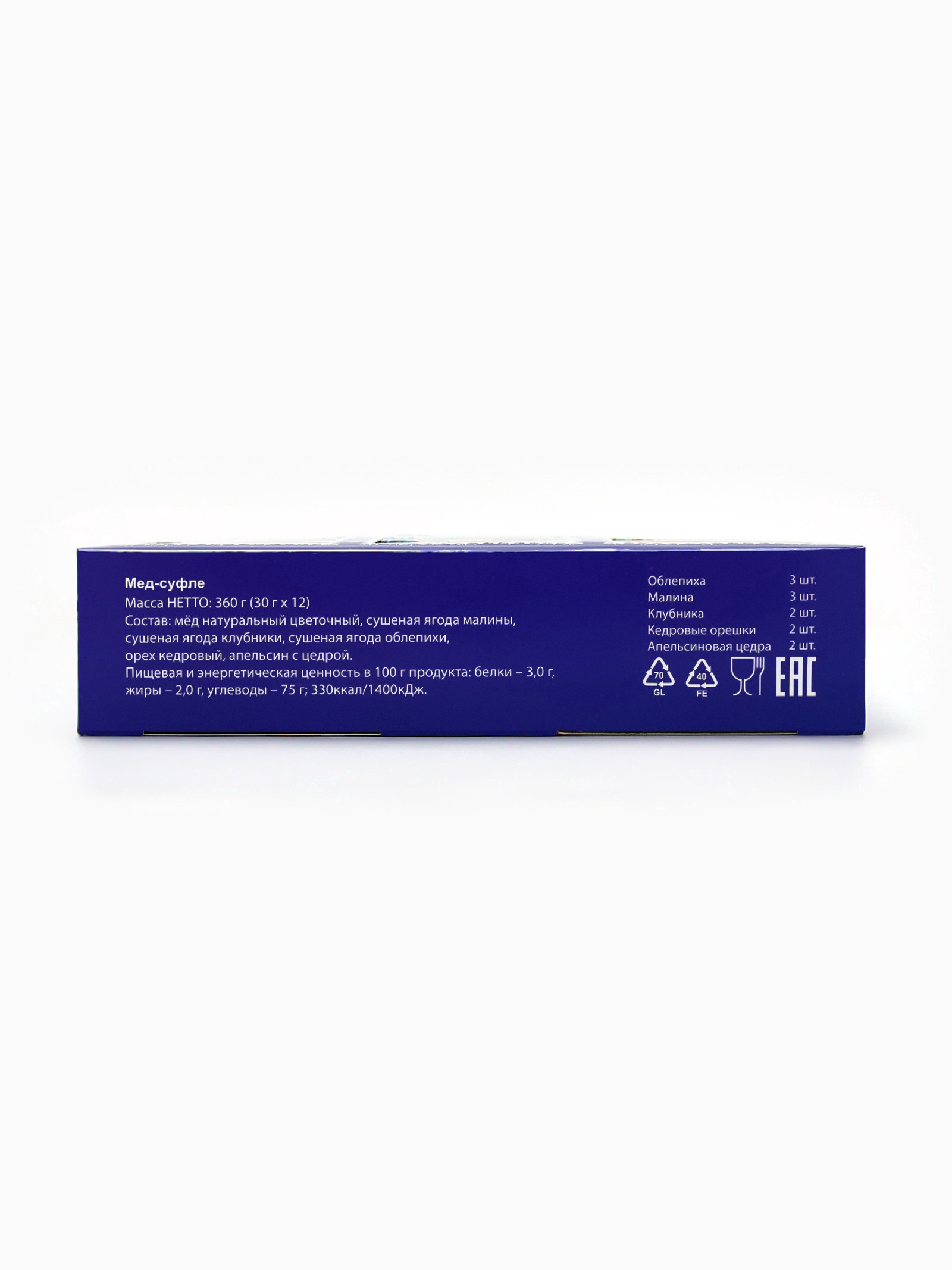 Добавки: Апельсиновая цедра, Кедровый орех, Клубника, Малина, Облепиха Размер упаковки: 18 x 4 x 23.5 см. tnved: 409000000 Температурное ограничение: Нет Запрет реализации по сегментам: 00000000266 Новогодняя коллекция: Новый год Тематика праздника: Новый год Символ года: Нет Вид: Мёд-суфле Набор: Да Вес нетто, г: 360 Возраст: Для взрослых Тематика подарка: Продукты питания В наборе, шт.: 12 Адресат: Без адресата Составляющие набора: Мёд Для кого: Унисекс Вид упаковки: Коробка картонная | ||