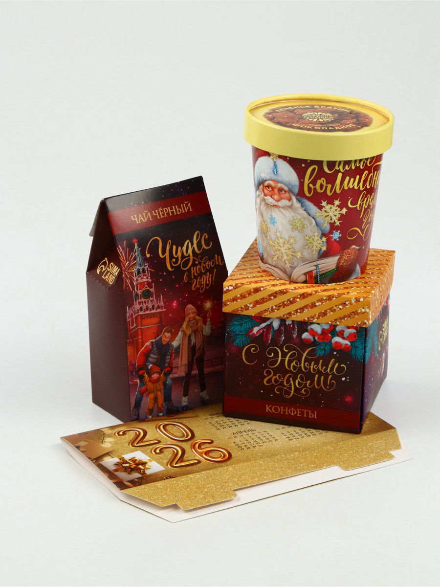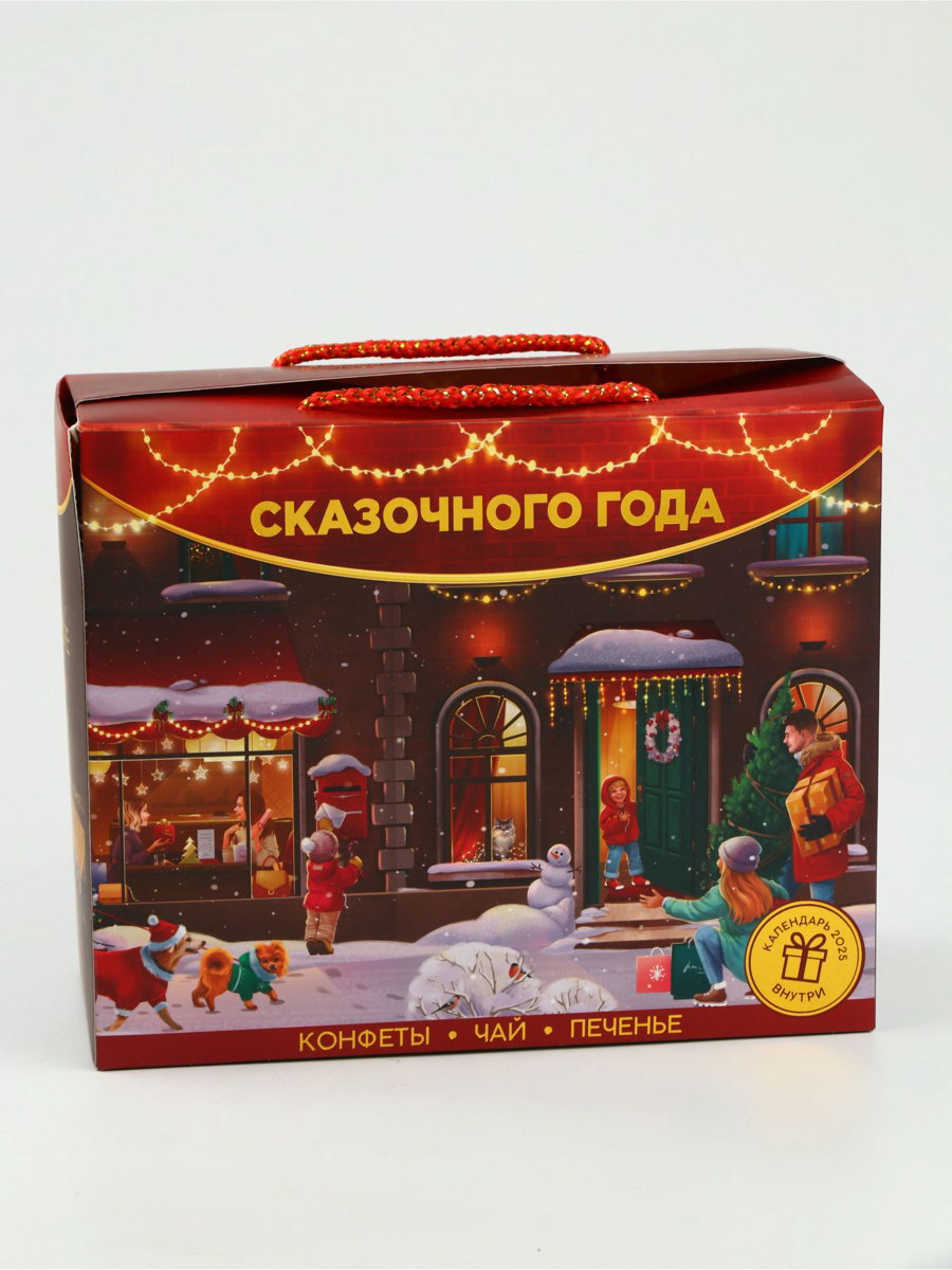 Запрет реализации по сегментам: 00000000266, 00000000593 Составляющие набора: Календарь, Конфеты, Печенье, Чай Для кого: Для женщины, Для мужчины, Унисекс Размер упаковки: 10.5 x 17 x 21 см. Вид чая: Чёрный Фасовка: Весовой tnved: 902300000 Символ года: Символ года 2026 (Лошадь) Набор: Да Температурное ограничение: Нет Тематика праздника: Новый год Новогодняя коллекция: Стильные девушки В наборе, шт.: 3 Возраст: Для взрослых Адресат: Без адресата Вид упаковки: Подарочная коробка Тематика подарка: Продукты питания Чай черный, вкус: лесные ягоды, 50 г Состав: чай черный байховый, ароматизатор: лесные ягоды. Масса нетто: 50 гр Срок годности: 36 месяцев. Конфеты сливочные с шоколадной начинкой, 110 г Состав: сахар, масло растительное (рафинированное дезодорированное кокосовое), вафельная крошка (мука пшеничная, сахар, масло кокосовое, эмульгатор – соевый лецитин, пищевые растительные волокна, ароматизатор "Ванилин"), заменитель какао-масла (рафинированное гидрогенизированное пальмовое), молоко сухое обезжиренное, молоко сухое цельное, воздушный рис (мука рисовая, крупа кукурузная, мука пшеничная, сахар, соль), сухая молочная сыворотка, мука пшеничная, жир молочный, какао-порошок, какао тертое, эмульгаторы: соевый лецитин, Е476; крахмал кукурузный, соль пищевая, разрыхлители: Е500ii, Е503i; ароматизаторы, вода питьевая. Масса нетто: 110 гр Срок годности: 9 месяцев с даты изготовления. Печенье сдобное шоколадное "Брауни" Состав: маргарин (м. д. ж.: 82 %), рафинированные дезодорированные масла в натуральном и модифицированном виде, вода, эмульгаторы: Е322, Е471, Е475, соль поваренная пищевая, краситель – Е160а, ароматизатор, регулятор кислотности – лимонная кислота, сахар белый, вода питьевая, арахис дробленый, мука пшеничная, картофельный крахмал, какао-порошок, разрыхлитель, соль, ванилин, ксантановая камедь, сорбиновая кислота. Масса нетто: 120 гр Срок годности: 12 месяцев. | ||