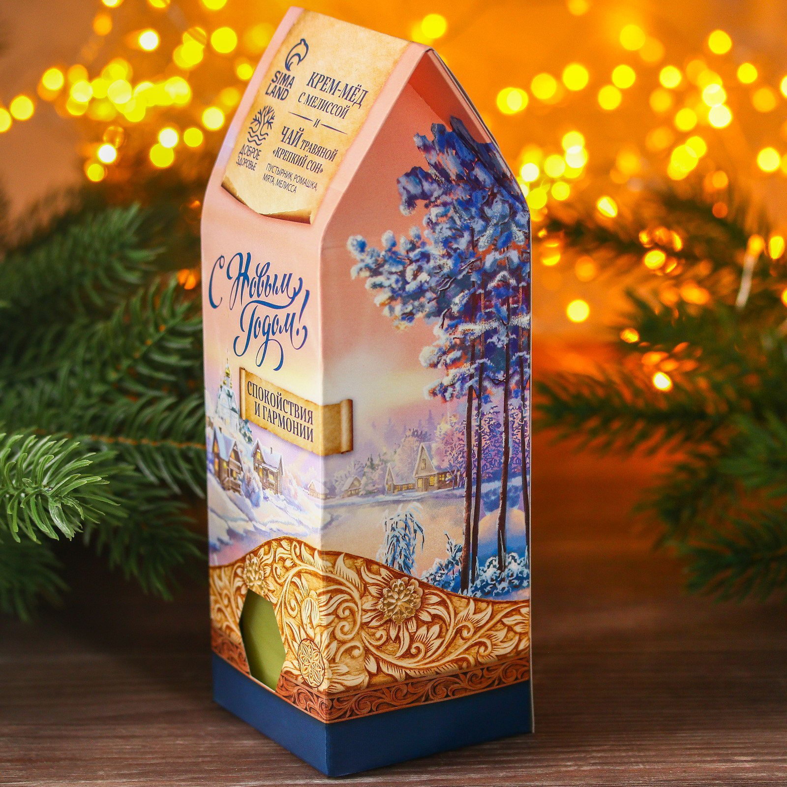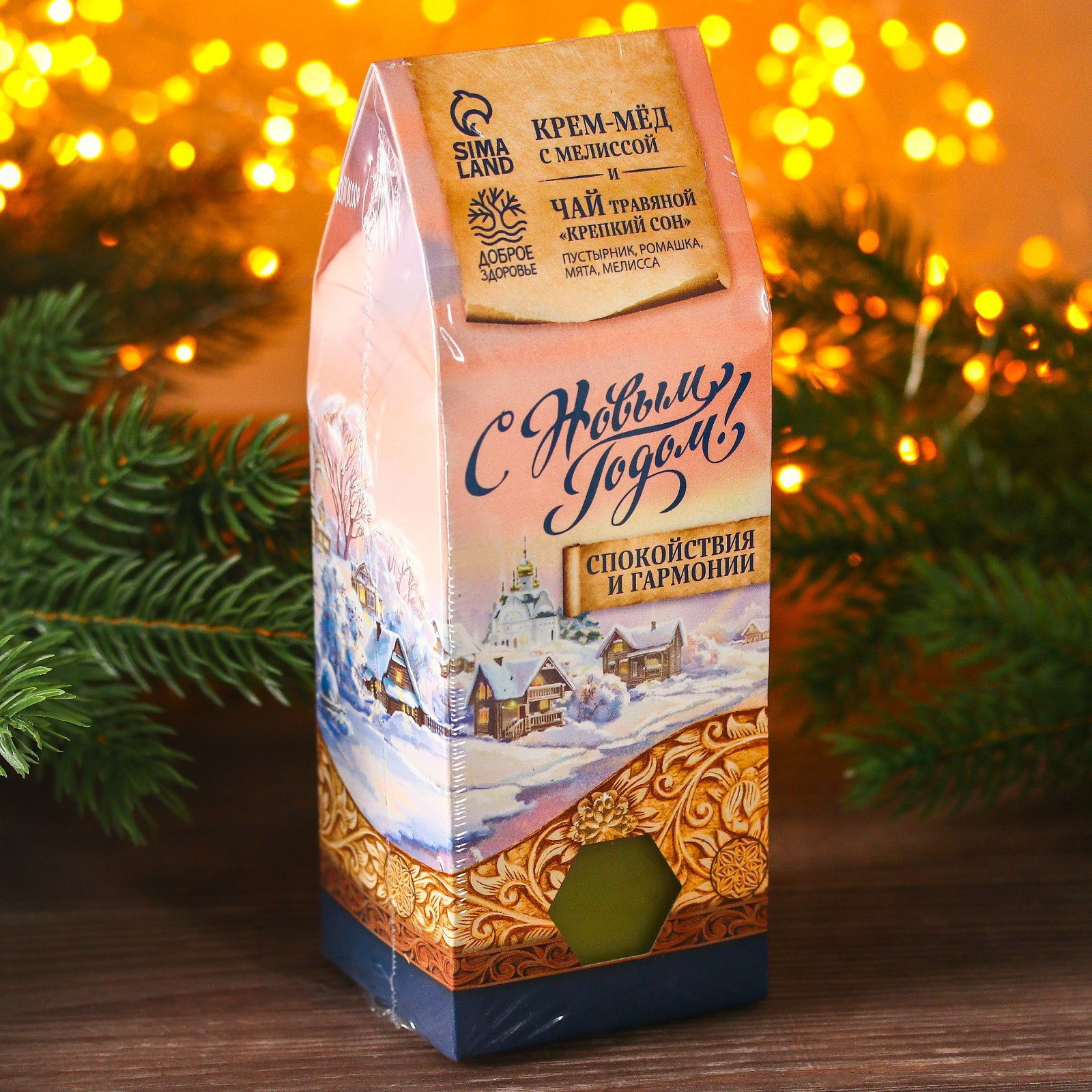 Подарочный набор новогодний "С Новым годом": чай травяной 20 г и крем-мед 120 г, Доброе здоровье, Россия