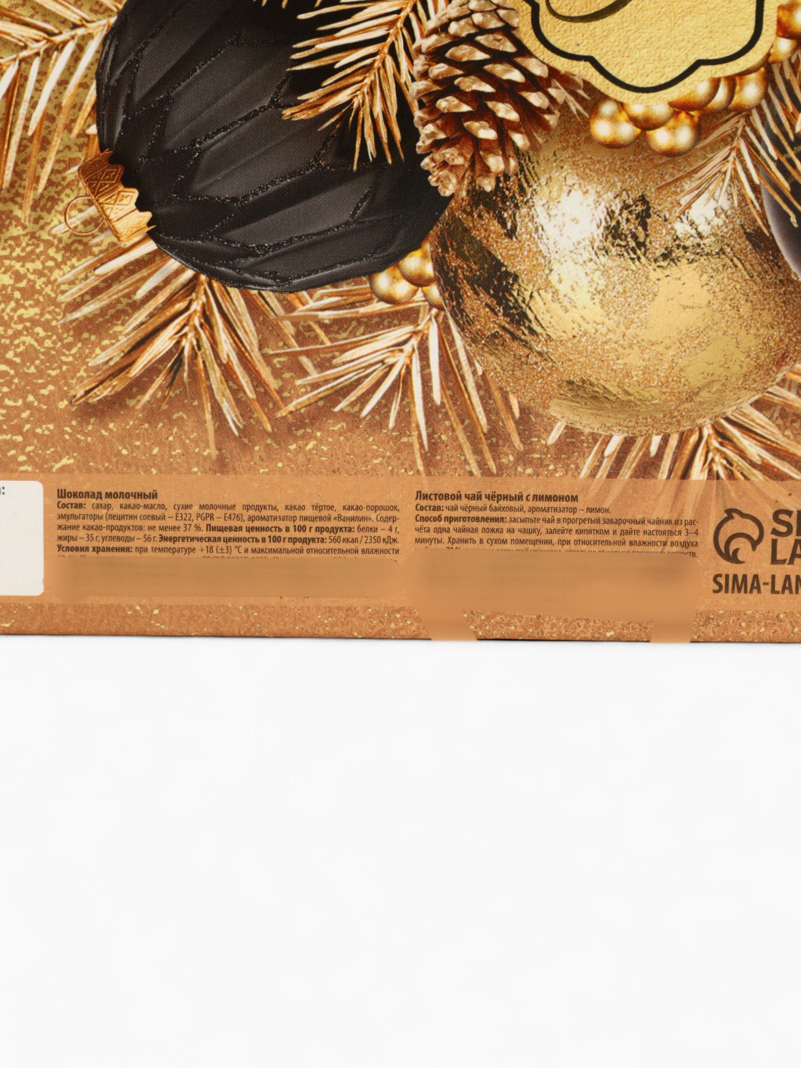Запрет реализации по сегментам: 00000000266, 00000000593 Вес нетто, г: 20, 50 Для кого: Для женщины, Для мужчины, Унисекс Составляющие набора: Чай, Шоколад Размер упаковки: 20 x 3.2 x 20 см. Вид упаковки: Подарочная коробка Темпер. ограничение НЕ ВЫШЕ ℃: +18 Тематика праздника: Новый год Адресат: Без адресата tnved: 902300000 Символ года: Нет Тематика подарка: Продукты питания Набор: Да Возраст: Для взрослых В наборе, шт.: 2 ПРИ ОФОРМЛЕНИИ ЗАКАЗА, ПРОСИМ ЗАПРАШИВАТЬ АКТУАЛЬНЫЕ СРОКИ ГОДНОСТИ У МЕНЕДЖЕРА Чай чёрный с лимоном Состав: чай чёрный байховый, ароматизатор: лимон. Способ приготовления: засыпьте чай в прогретый заварочный чайник из расчёта одна чайная ложка на чашку, залейте кипятком и дайте настояться 3–4 минуты. Срок годности: 36 месяцев Масса нетто: 50 гр Шоколад молочный в плитках Состав: сахар, какао-масло, сухие молочные продукты, какао тёртое, какао-порошок, эмульгаторы (лецитин соевый Е322, PGPR – E476), ароматизатор, идентичный натуральному, "Ванилин". Срок годности: 12 месяцев Масса нетто: 70 гр | ||