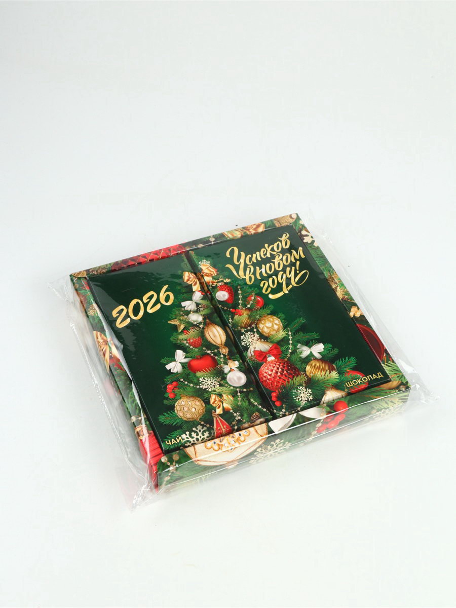 Подарочный набор новогодний "Успехов в Новом 2026 году", чай 50 г, шоколад 70 г, Фабрика счастья, Россия