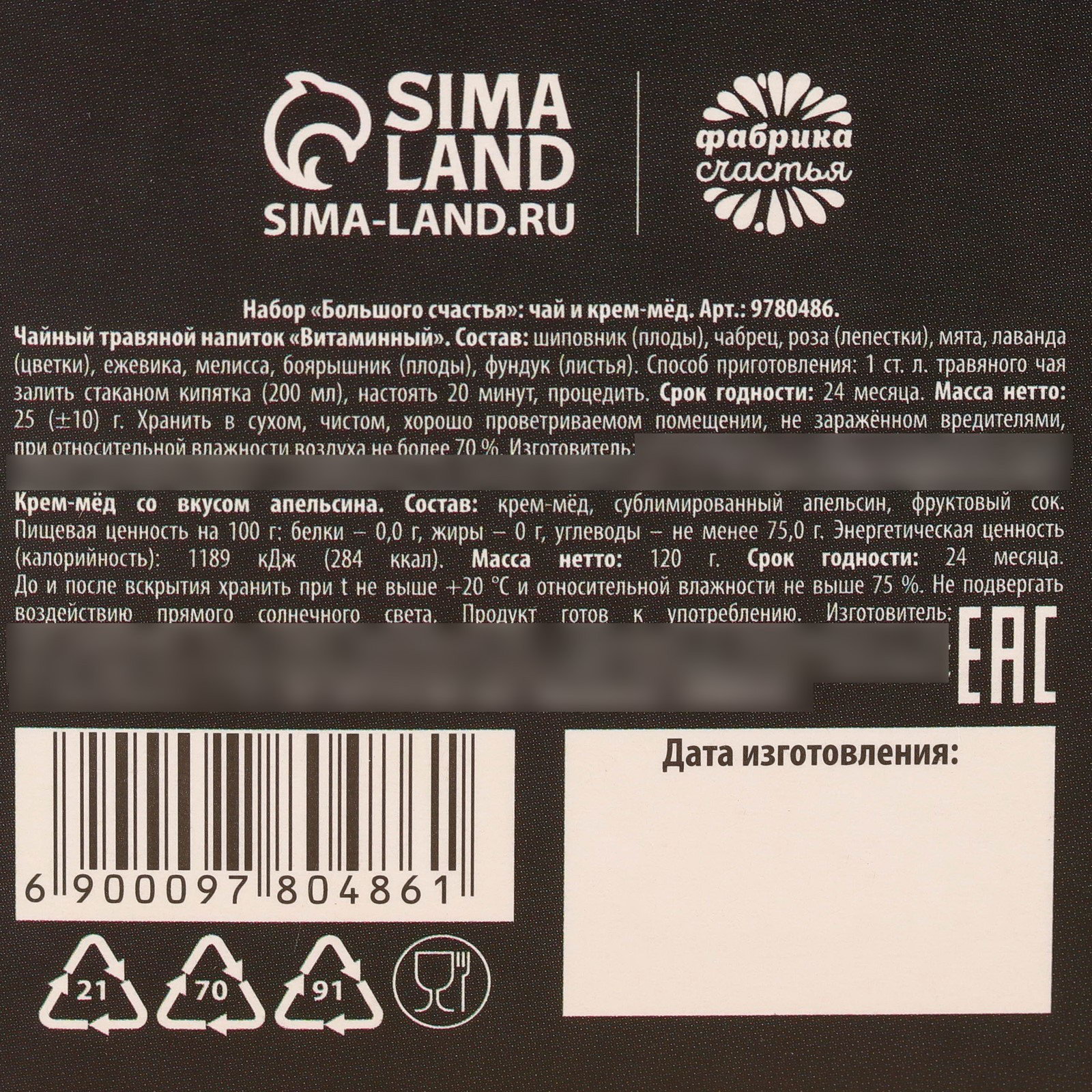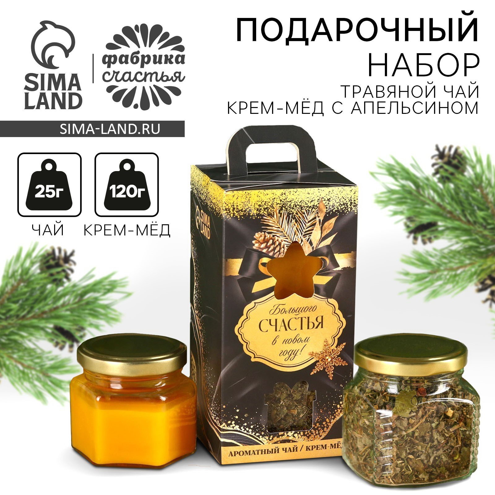 Подарочный набор новогодний "Большого счастья": травяной чай, мёд кремовый с апельсином, Фабрика счастья, Россия
