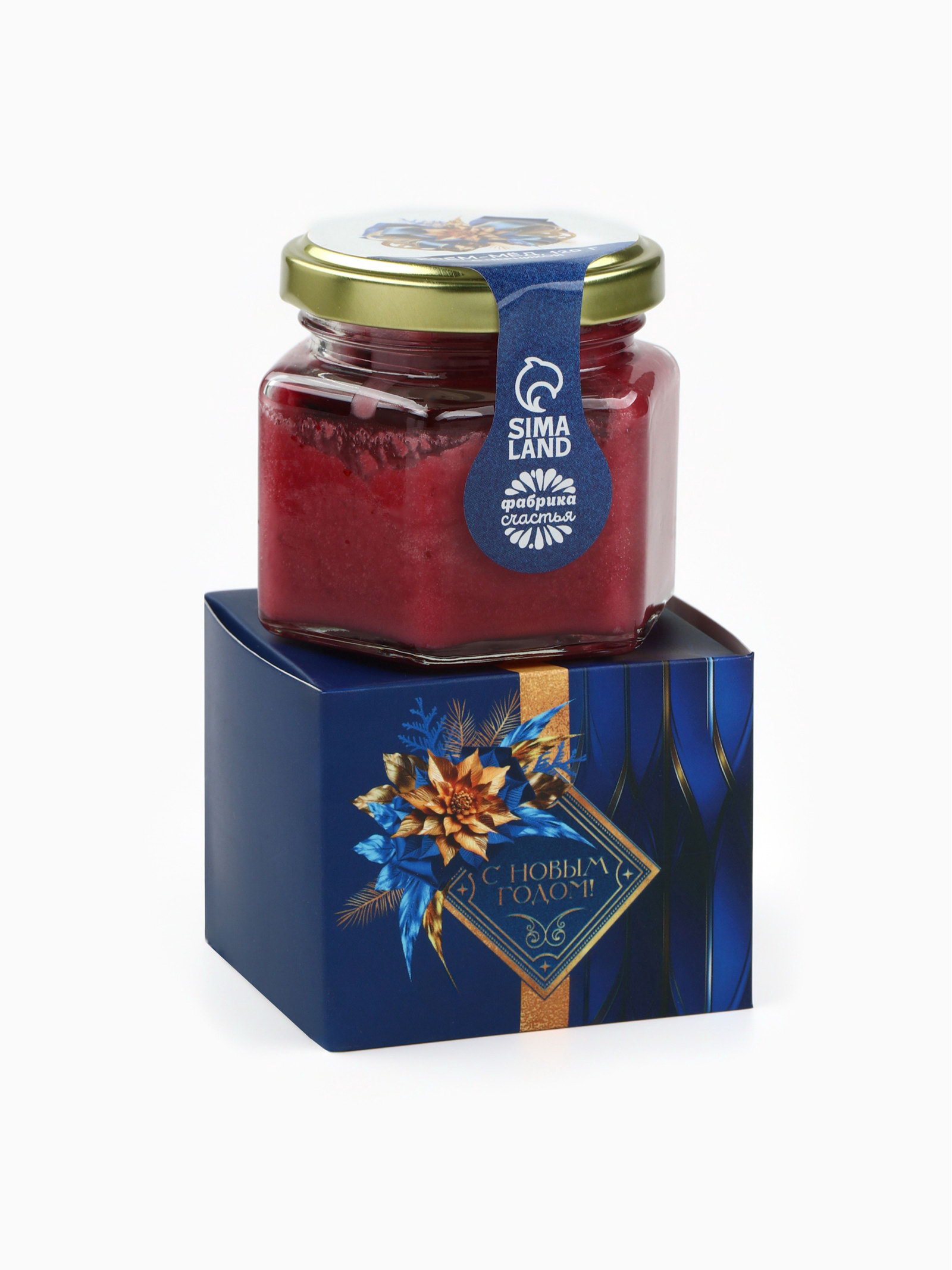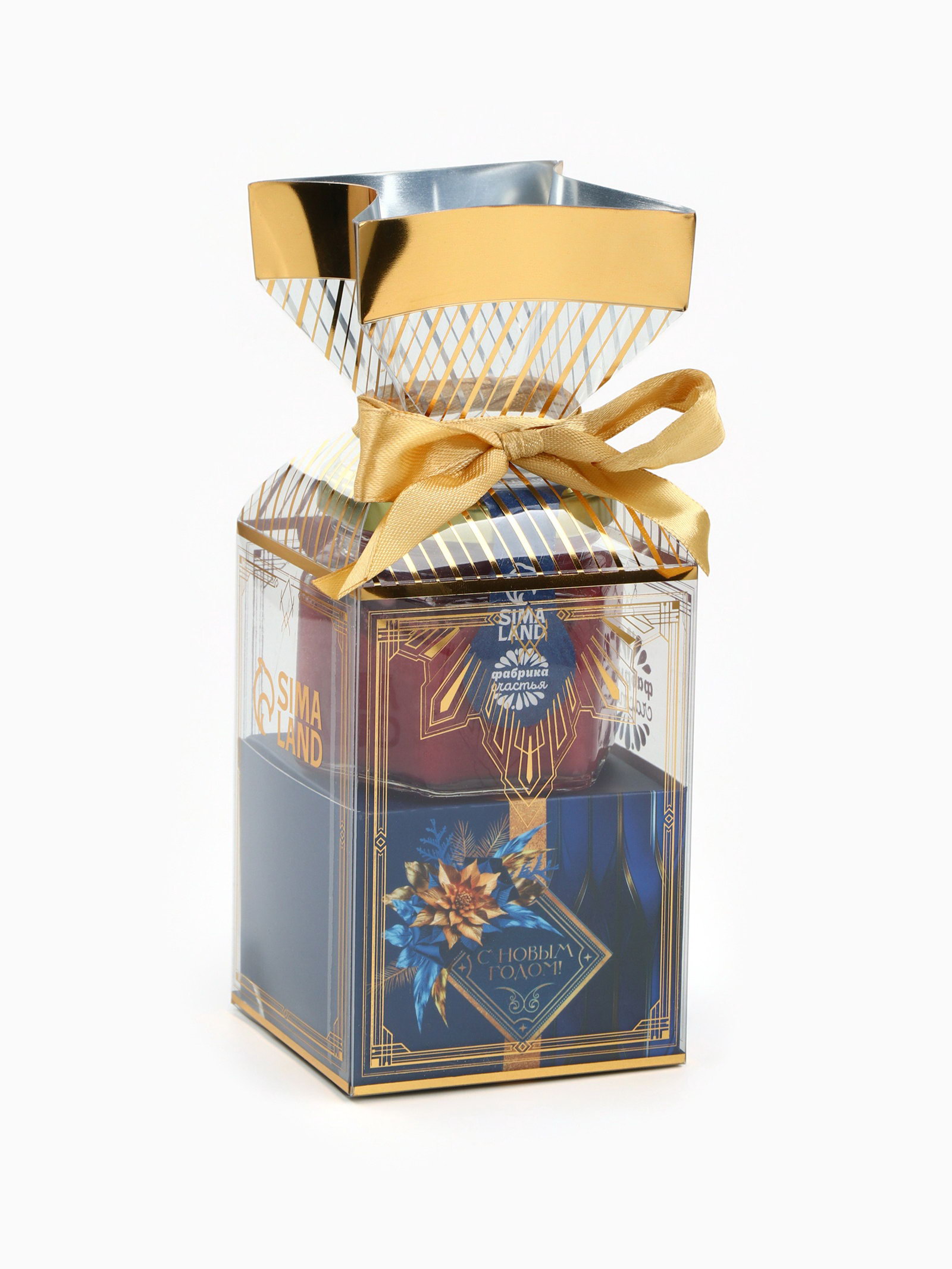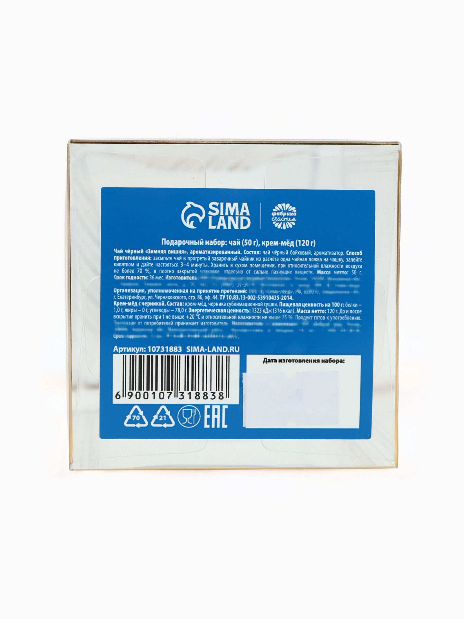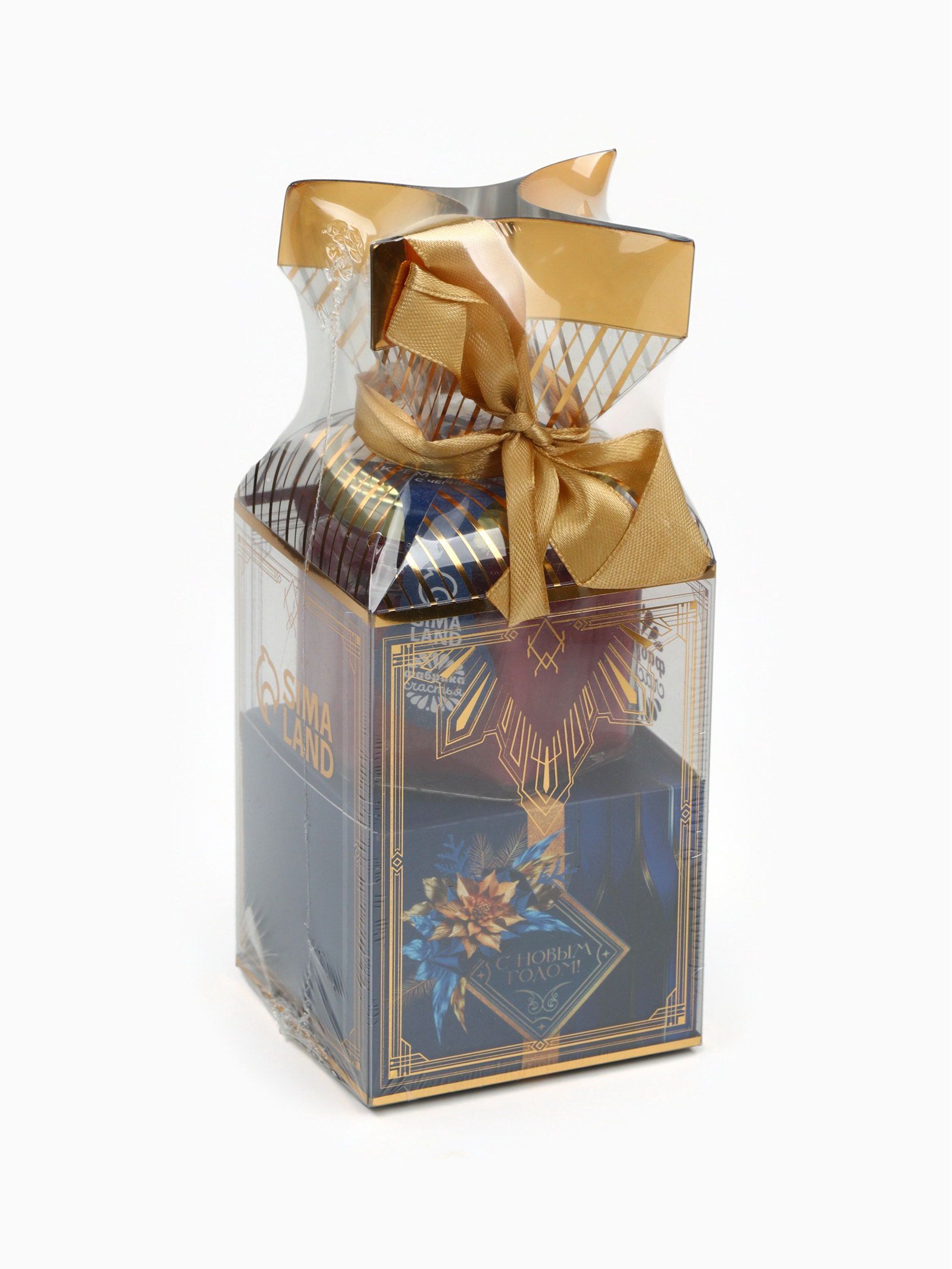 Подарочный набор новогодний "С новым годом": чай со вкусом: зимняя вишня 50 г, крем - мёд с черникой, 120 г, Фабрика счастья, Россия