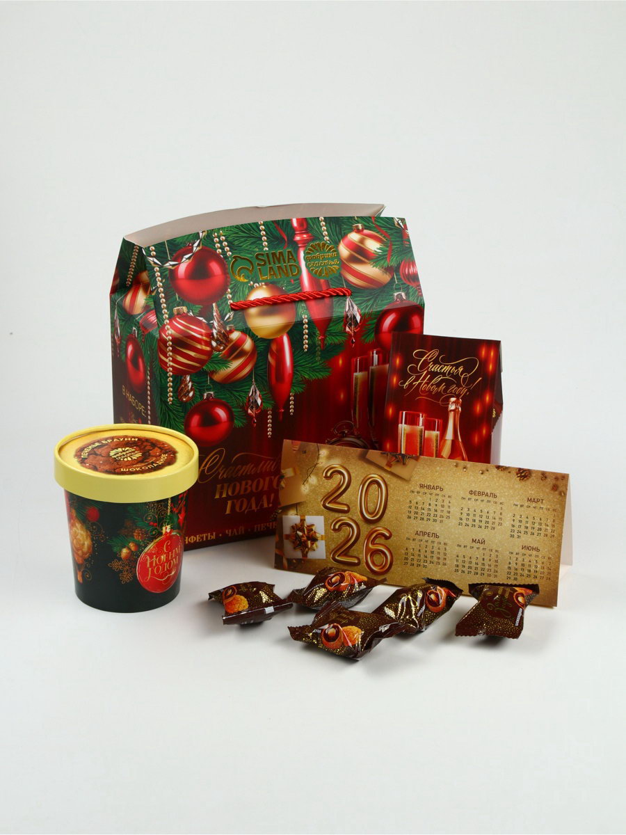 Подарочный набор новогодний "Счастливого года": чай, конфеты, печенье брауни, Фабрика счастья, Россия