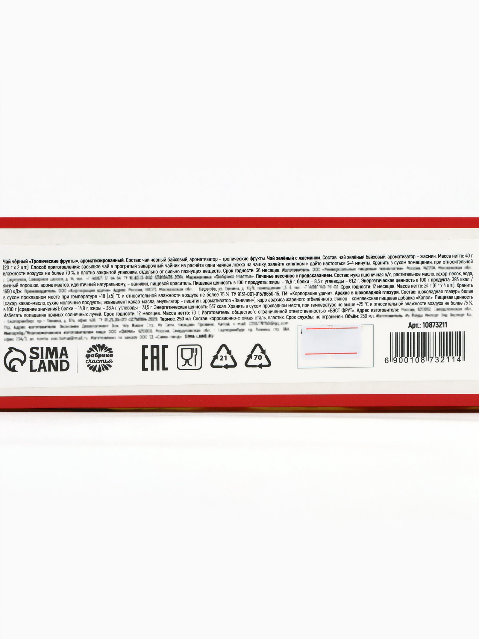 Подарочный набор новогодний "Волшебного года": термос, чай чёрный/зелёный, печенье с предсказанием, арахис в шоколадной глазури, Фабрика счастья, Россия
