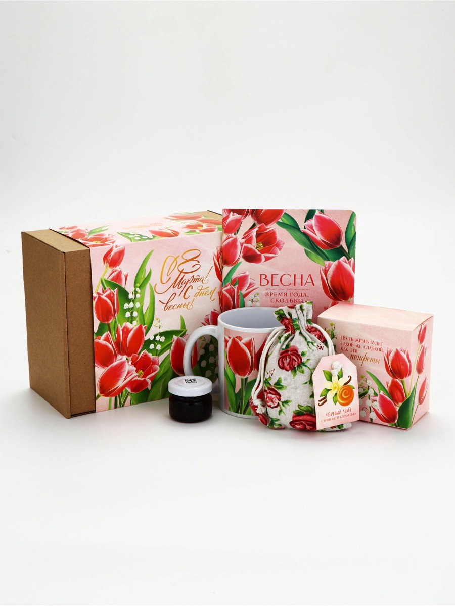 Подарочный набор "С 8 марта!", кружка, джем, чай 20 г, блокнот, конфеты, Фабрика счастья, Россия
