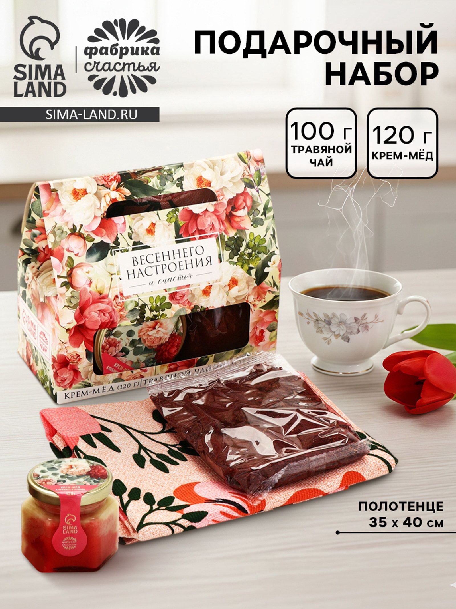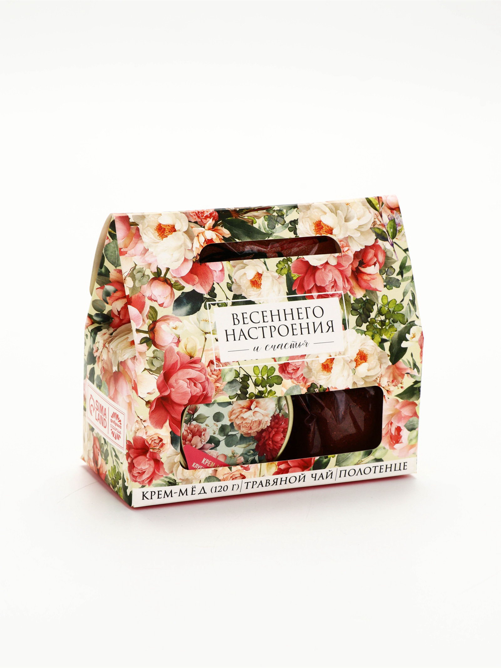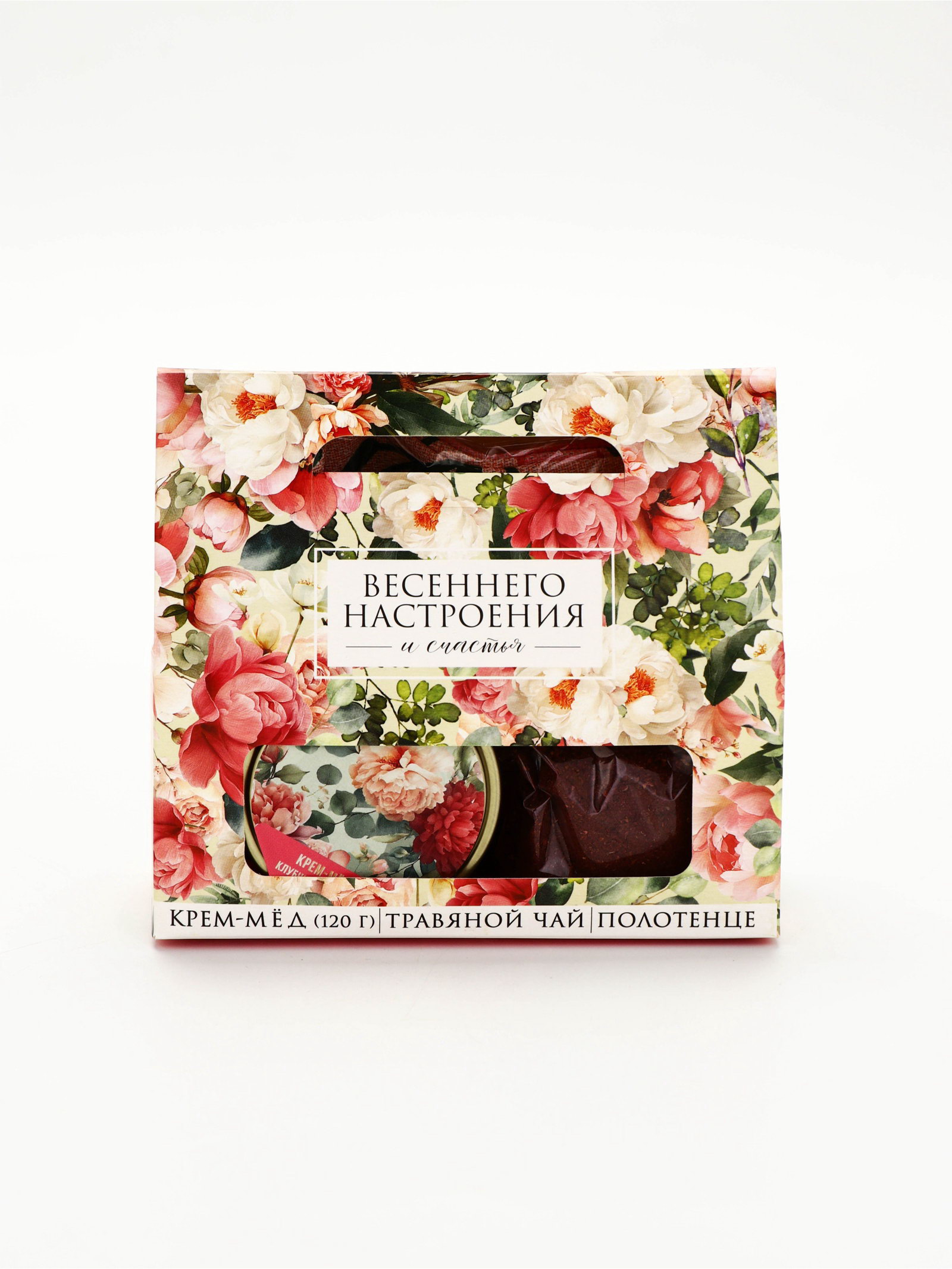 Подарочный набор "Весеннего настроения": крем-мёд 120 г, травяной чай, полотенце, Фабрика счастья, Россия