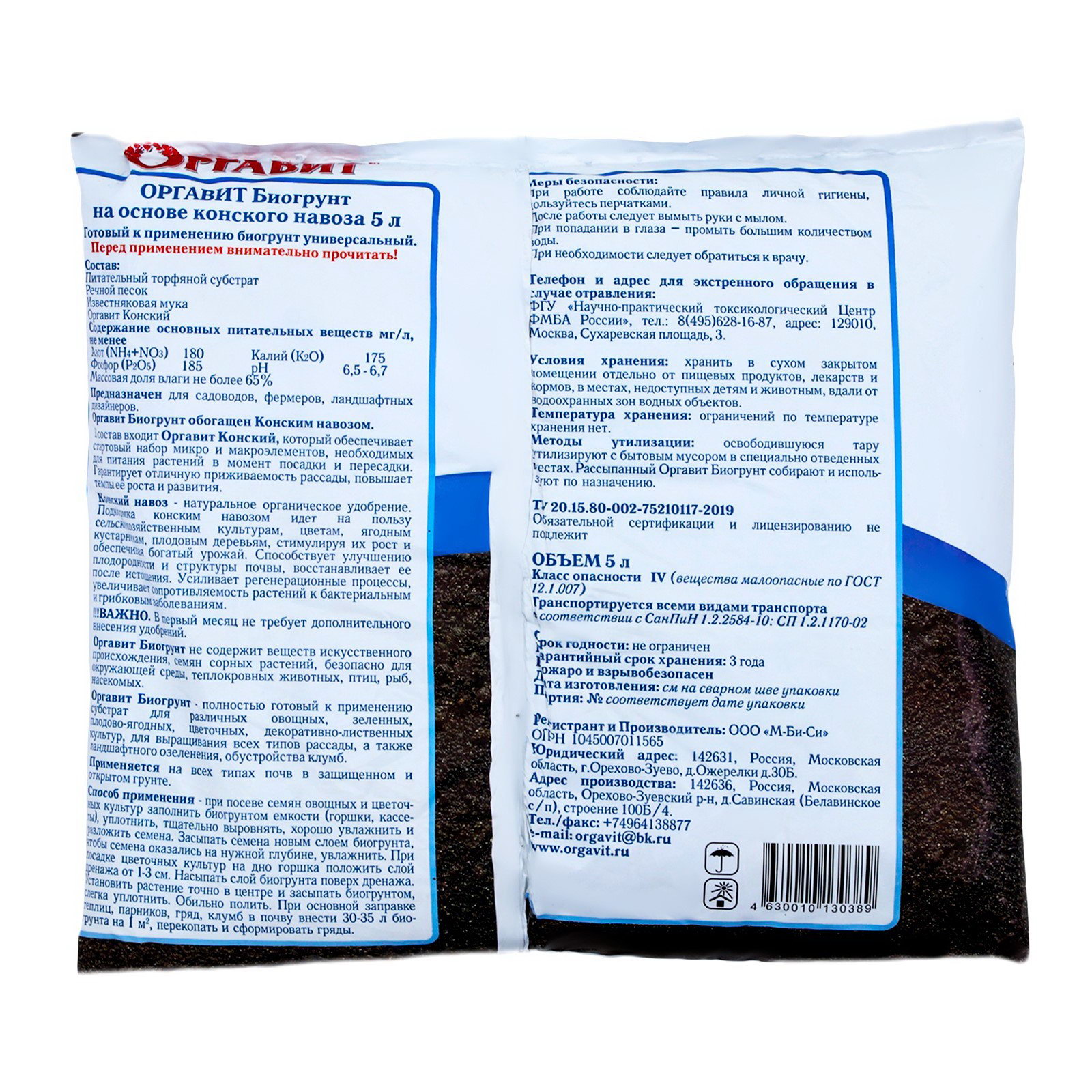 Грунт на основе конского навоза Универсальный, 5 л, Оргавит, Россия