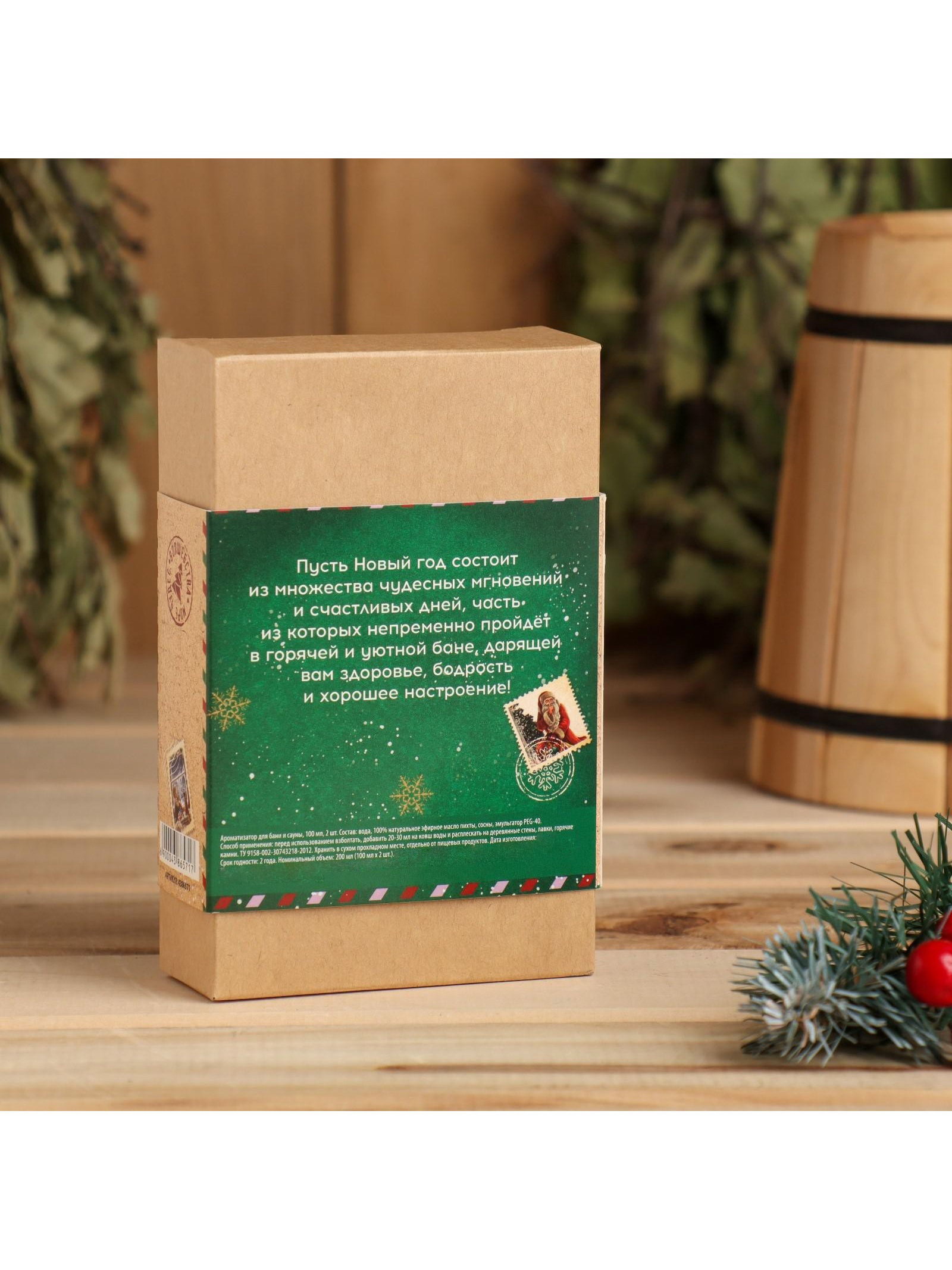 Новогодний набор ароматизаторов "Новогодняя посылочка", сосна, пихта, 2 шт. по 100 мл, 100 мл., Банная забава, Россия
