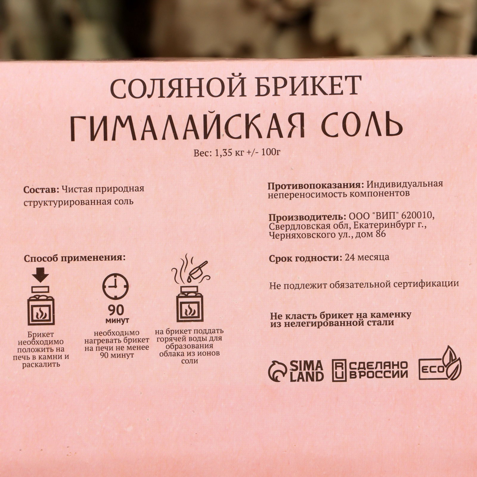 Вид: Гималайская розовая, Природная структурированная соль Размер упаковки: 10 x 5 x 15 см. tnved: 2501010000 Температурное ограничение: Нет Вес, г: 1350 Аромат: Без аромата Ароматизированная: Нет Соль для бани сделает поход в парную ещё полезнее для здоровья. Средство подходит для людей всех возрастов, используется для лечения и профилактики множества болезней. Раскаляясь вместе с камнями, кристаллы аккумулируют тепло. Испаряясь, соль благоприятно воздействует на дыхательные пути, повышает иммунитет. Контактируя с воздухом, кристаллы соли насыщают его отрицательными ионами и оказывают бактерицидный эффект. Соль благоприятно воздействует на весь организм человека: повышает иммунитет, улучшает состояние кожных покровов, приводит в тонус мышцы и успокаивает нервную систему. Её минералы оказывают омолаживающий эффект. Применение: нагревайте брикет на печи не менее 90 минут, затем поддайте на него горячей воды. Соль наполнит воздух бани ионами, тем самым поможет снять усталость, улучшить кровообращение и общее самочувствие. | ||