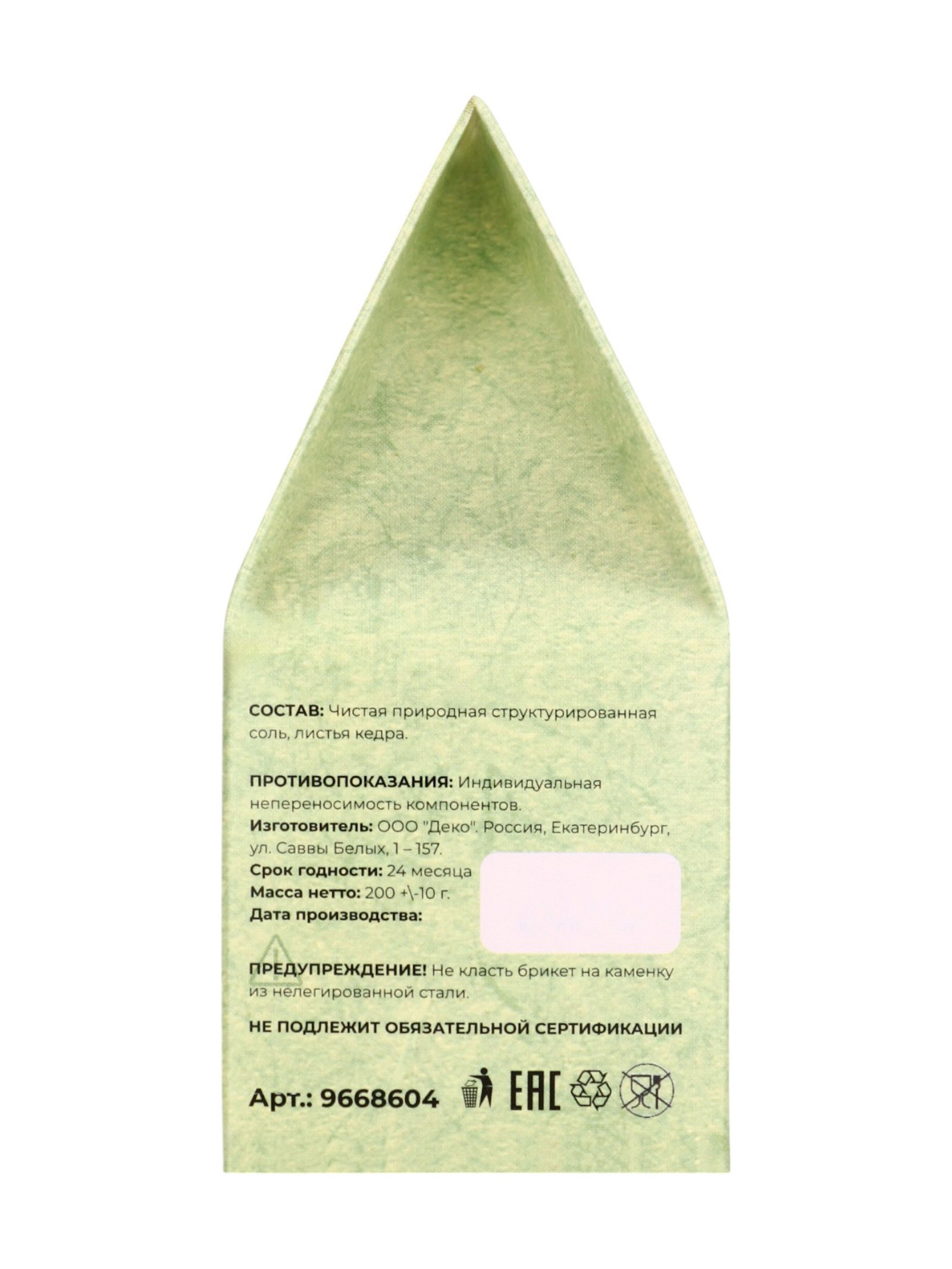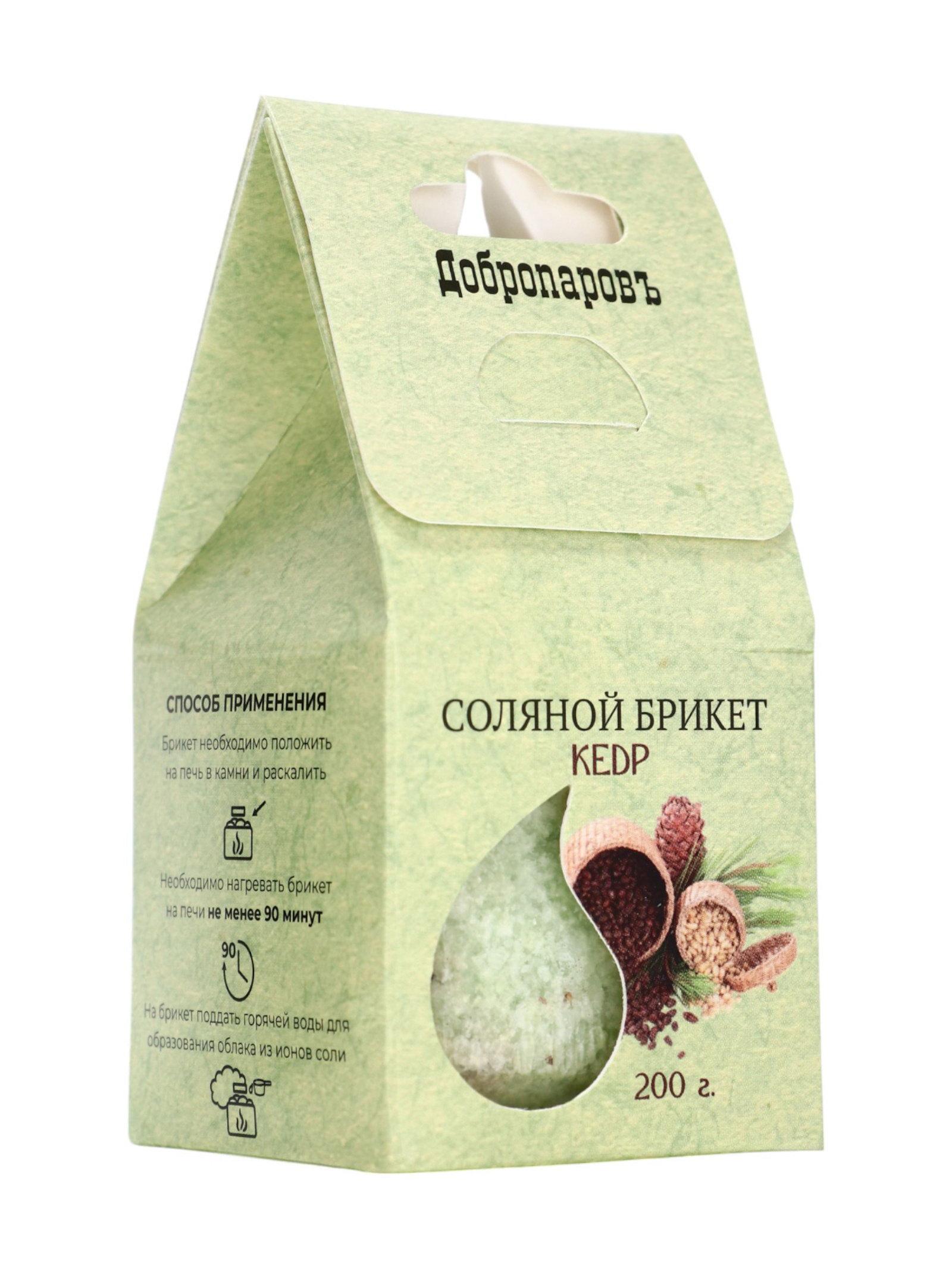 Соляной брикет куб "Кедр" 200 г, Добропаровъ, Россия