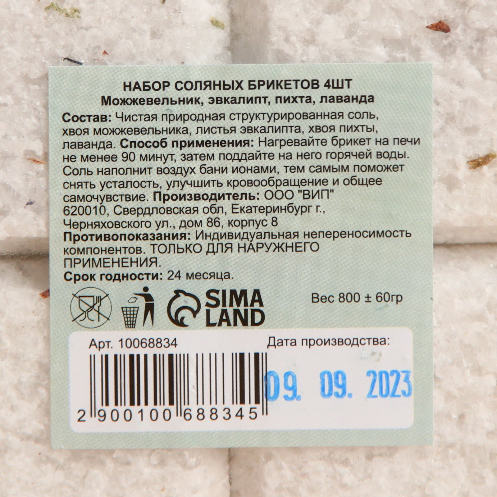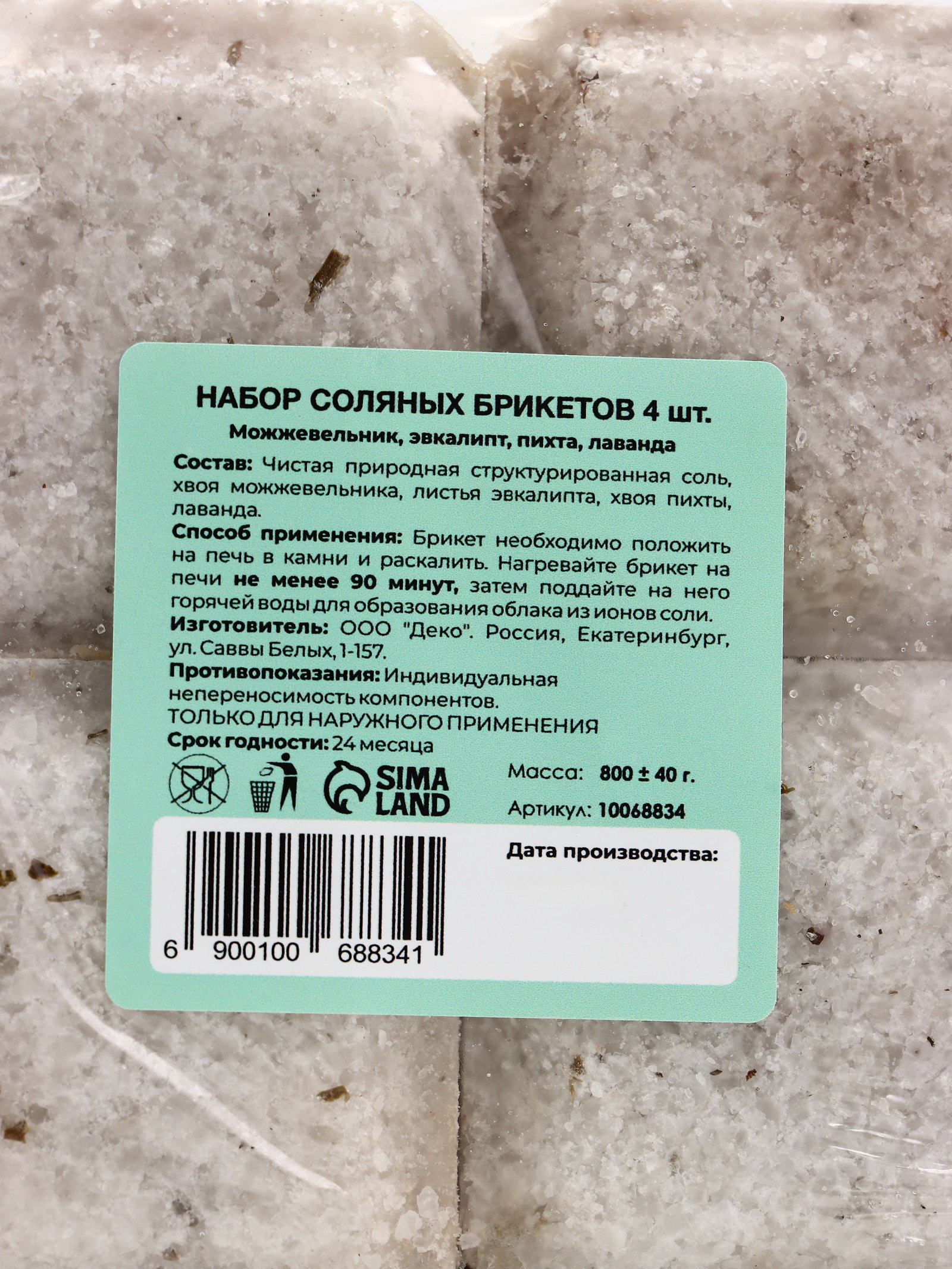 Соляной брикет набор 4 шт "Можжевельник, эвкалипт, пихта, лаванда", Добропаровъ, Россия