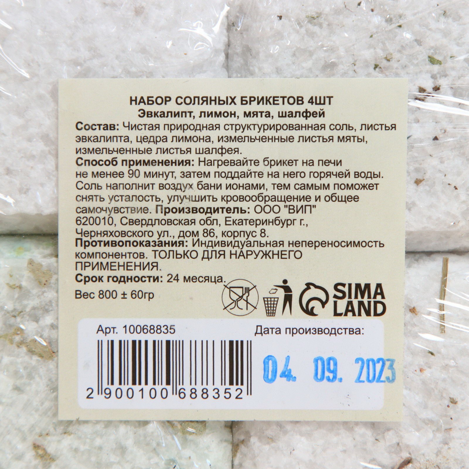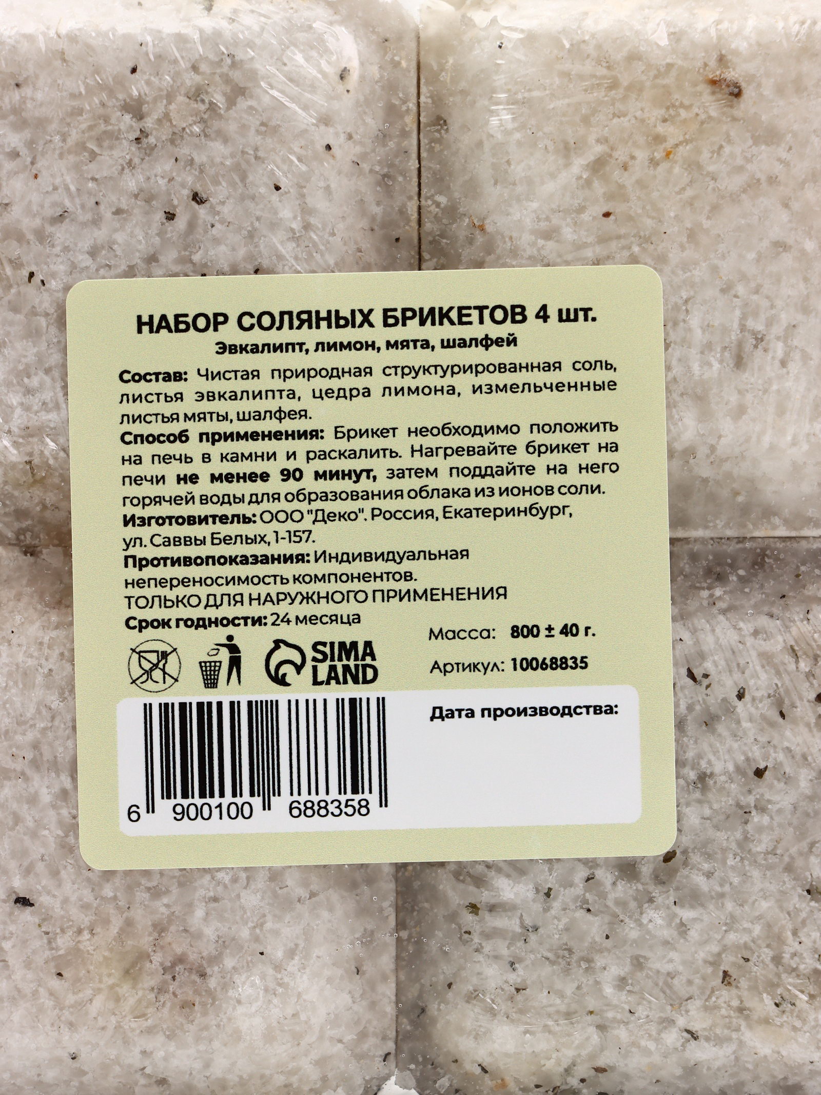 Аромат: Лимон, Мята, Шалфей, Эвкалипт Размер упаковки: 10 x 5 x 8.5 см. Вес, г: 800 tnved: 3307300000 Температурное ограничение: Нет Ароматизированная: Да Вид: Природная структурированная соль Соляной брикет набор 4 шт. "Эвкалипт, Лимон, Мята, Шалфей" это гармоничное сочетание пользы гималайской соли и целебных свойств эфирных масел. Каждый брикет весом около 200 г наполняет парную мягким, но насыщенным ароматом, создавая атмосферу природного SPA. Эвкалипт освежает и облегчает дыхание. Лимон бодрит, улучшает настроение. Мята расслабляет, снимает усталость. Шалфей успокаивает, поддерживает иммунитет. Натуральная соль насыщает воздух отрицательно заряженными ионами, улучшая общее самочувствие, а эфирные масла дополняют эффект мягкой ароматерапией. Способ применения Разместите брикет(ы) среди камней в печи или на полке в парной. Дайте им прогреться не менее 1–1,5 часов. Для активации аромата и минерализации воздуха слегка сбрызните брикет горячей водой. Меняйте ароматы по настроению или сочетайте их для уникальных композиций. Совет: чтобы аромат был насыщенным, используйте в начале парения, а для лёгкой свежести в конце. | ||