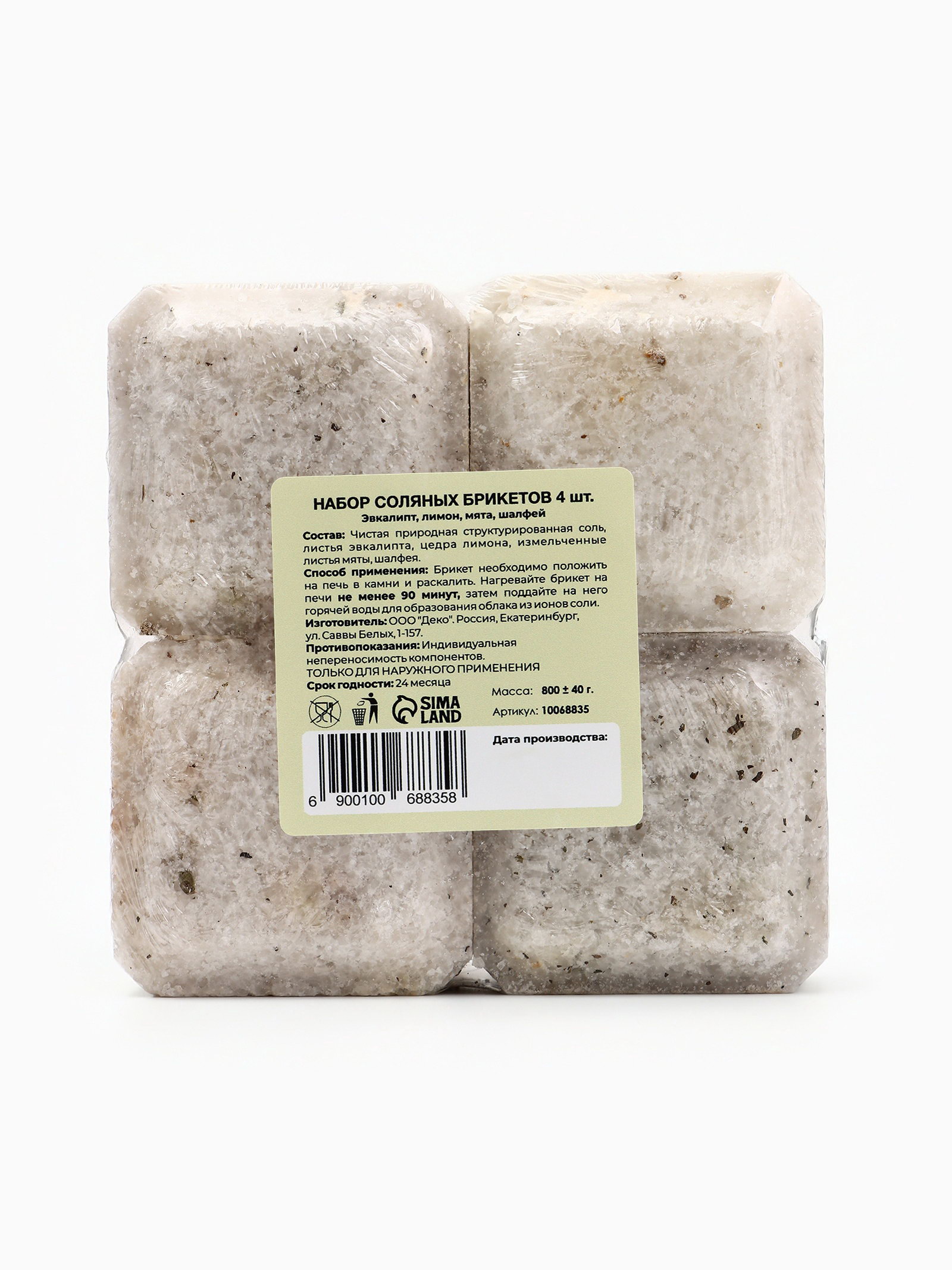 Соляной брикет набор 4 шт "Эвкалипт, Лимон, Мята, Шалфей", Добропаровъ, Россия