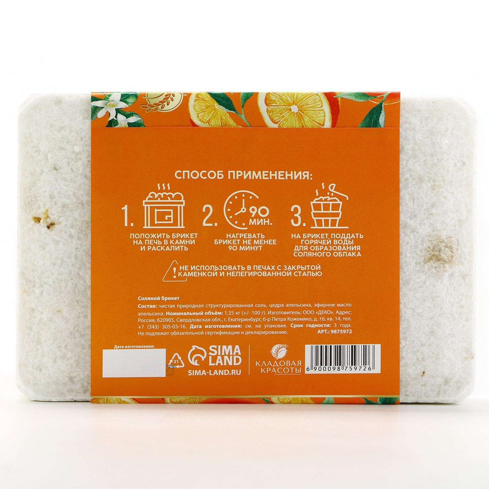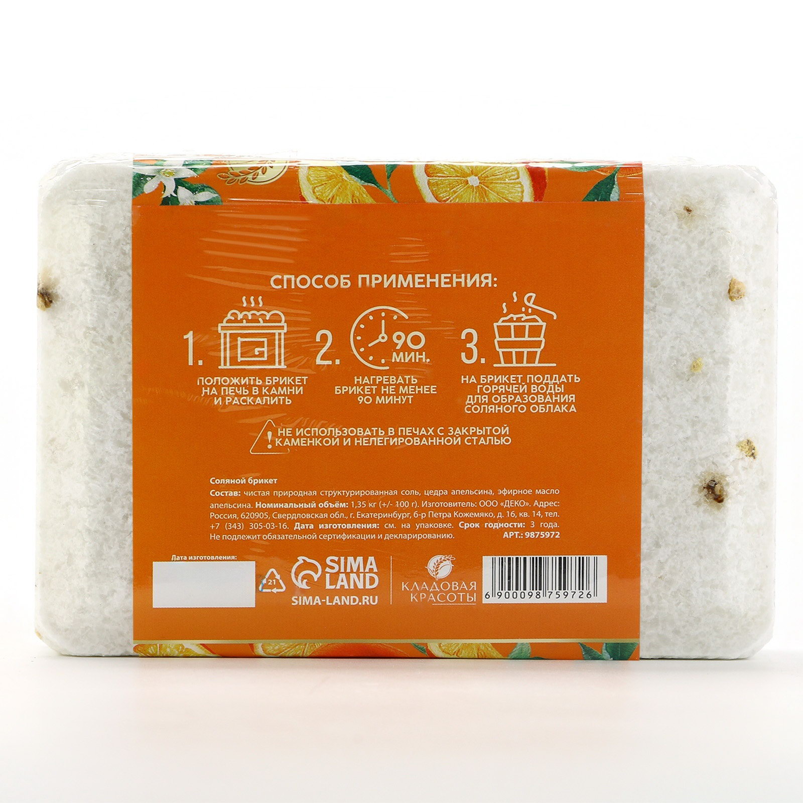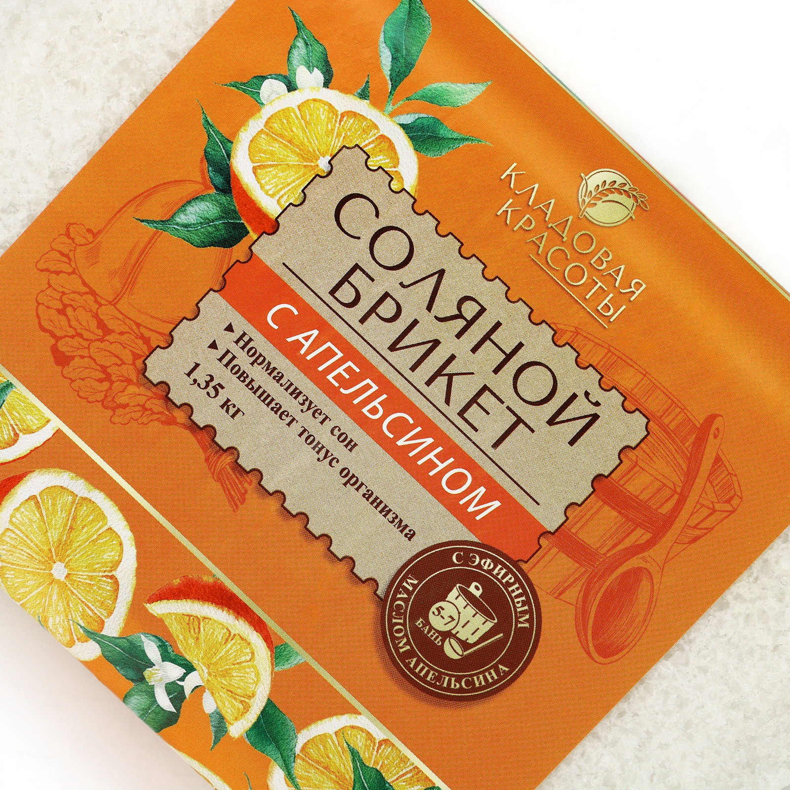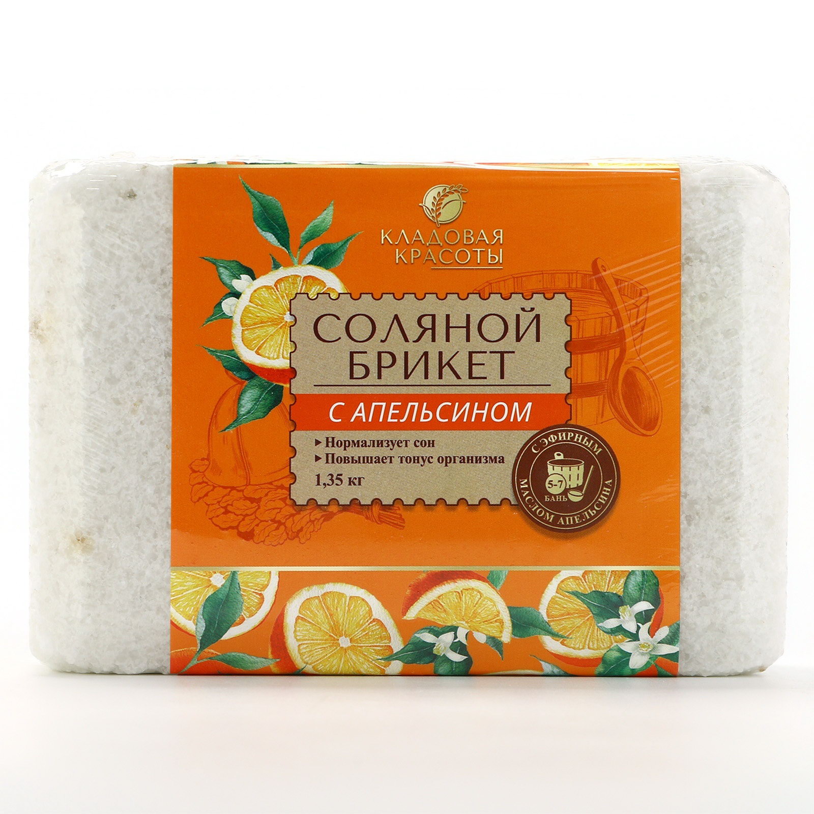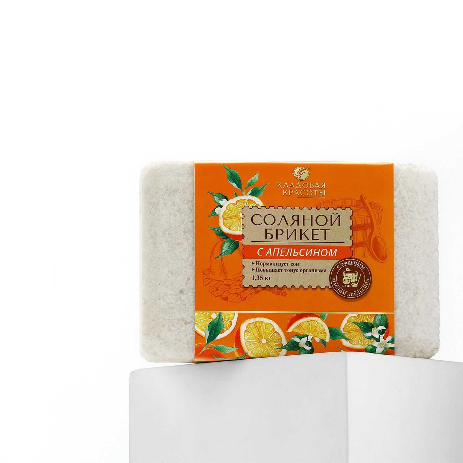 Соляной брикет с эфирным маслом апельсина, 1.35 кг, аромат апельсина, КЛАДОВАЯ КРАСОТЫ, Кладовая красоты, Россия