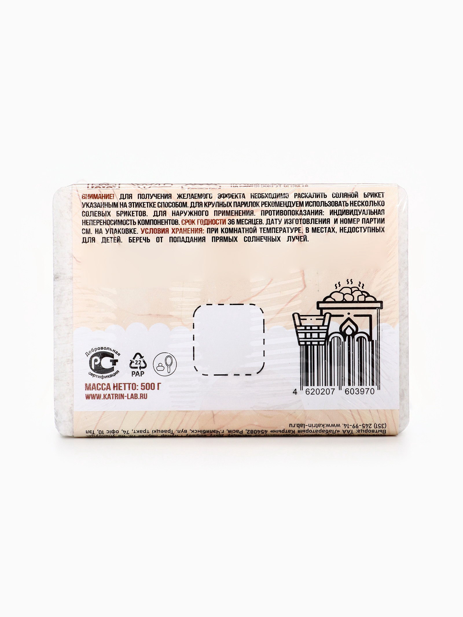 Соляной брикет для бани "Банька" целебный, 500 г, Laboratory Katrin, Россия