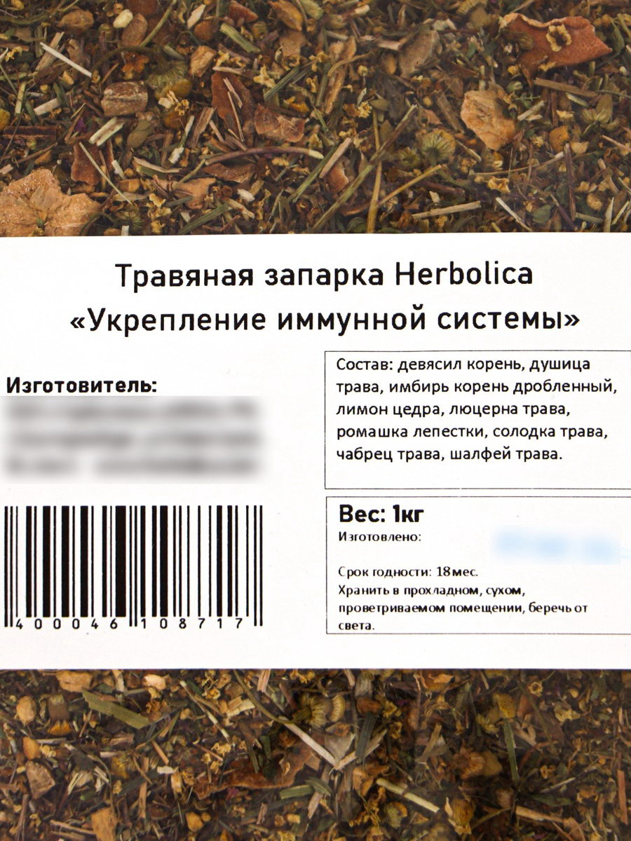 Травяная запарка для бани, сауны и кедровой бочки "Укрепление иммунной системы", 1 кг, Herbolica, Россия