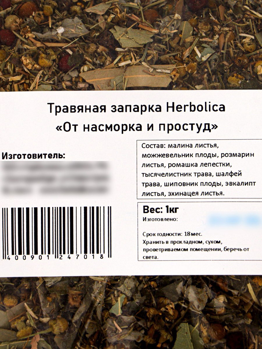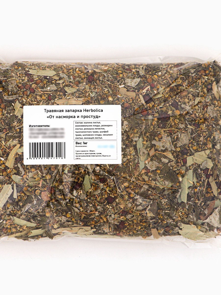 Травяная запарка для бани, сауны и кедровой бочки "От насморка и простуд", 1 кг, Herbolica, Россия