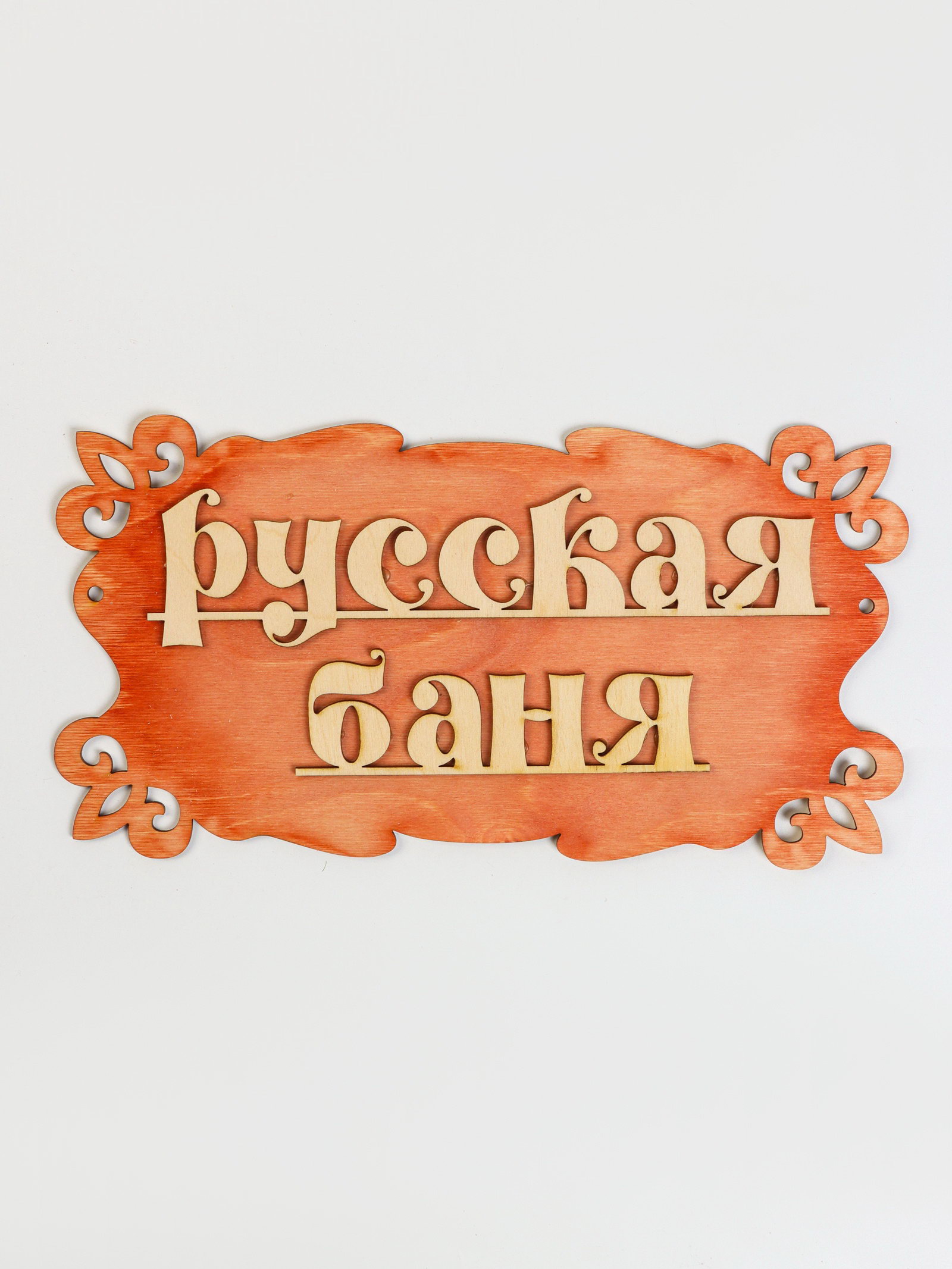 Табличка для бани "Русская баня" 30х17см, 30x17 см., Добропаровъ, Россия