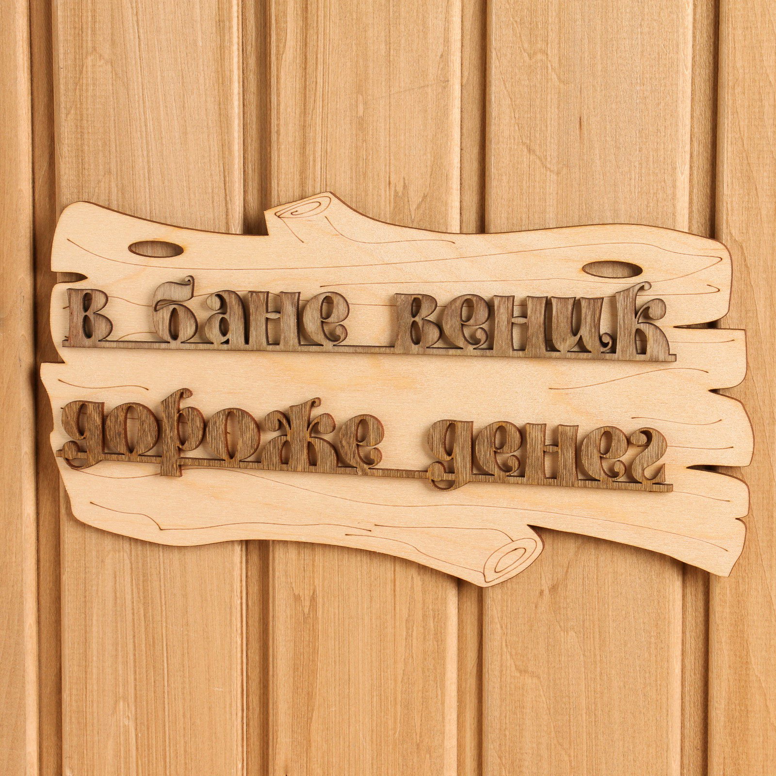 Табличка для бани и сауны "В бане веник дороже денег", 30x17 см, дерево, 30x17 см., Добропаровъ, Россия