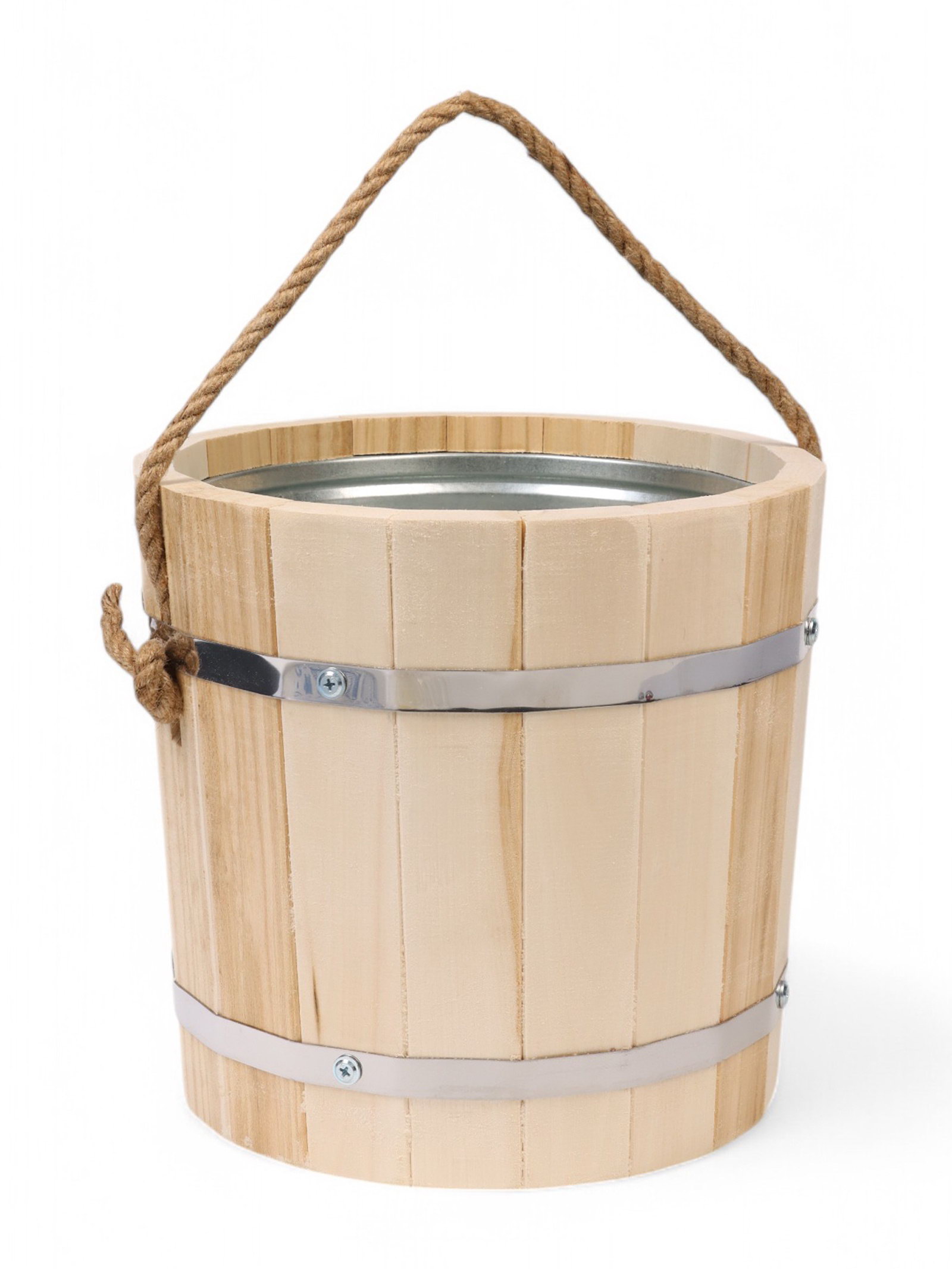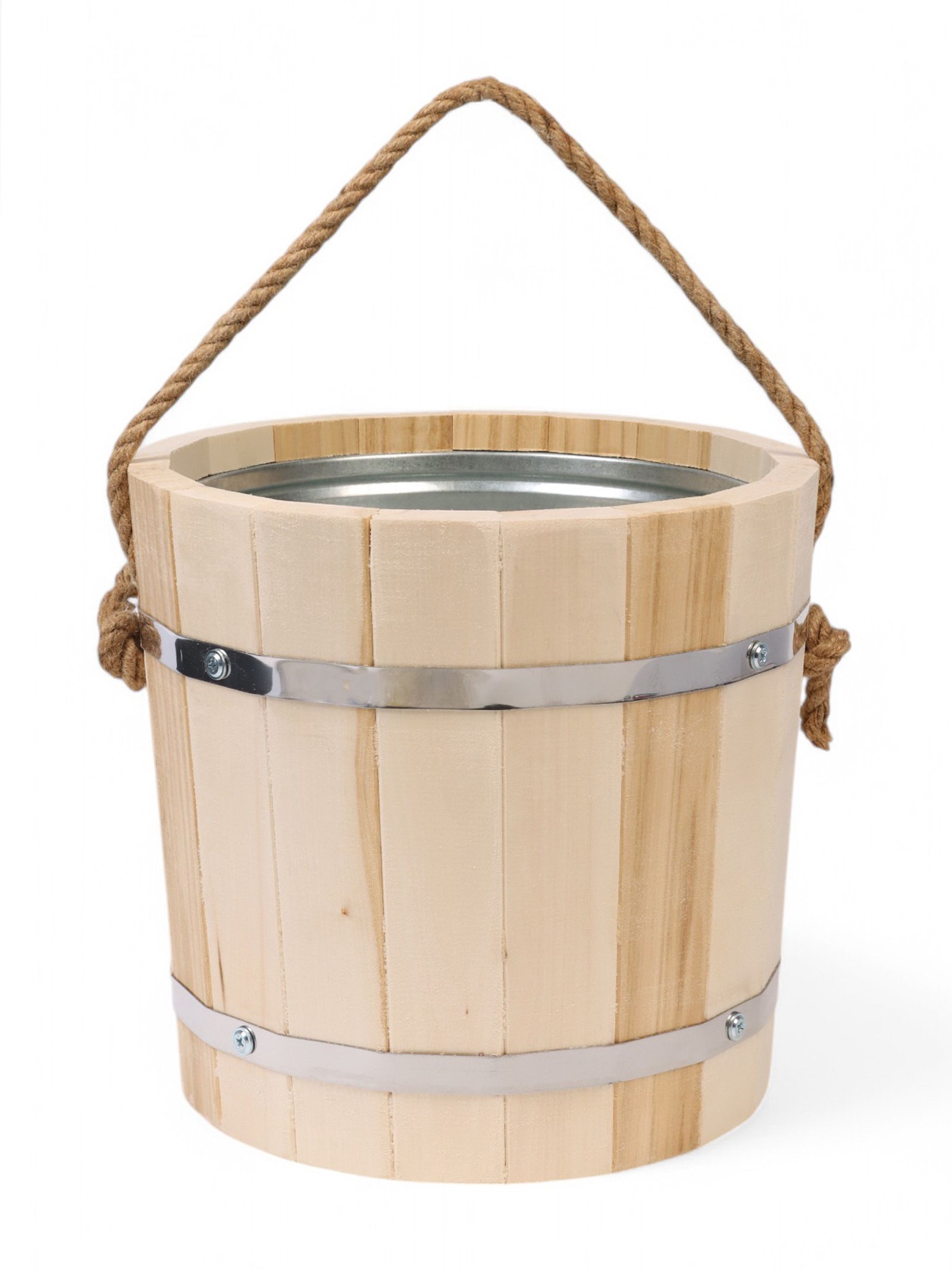 Ведро для бани и сауны, 7 л, липа, оцинкованная вставка, ручка - верёвка, 7000 мл., Добропаровъ, Россия