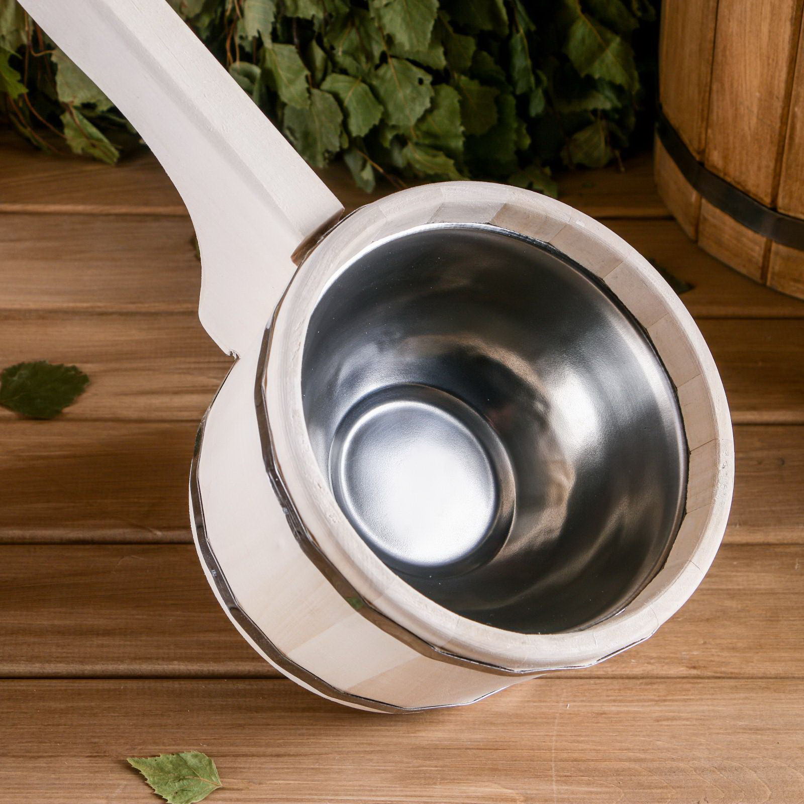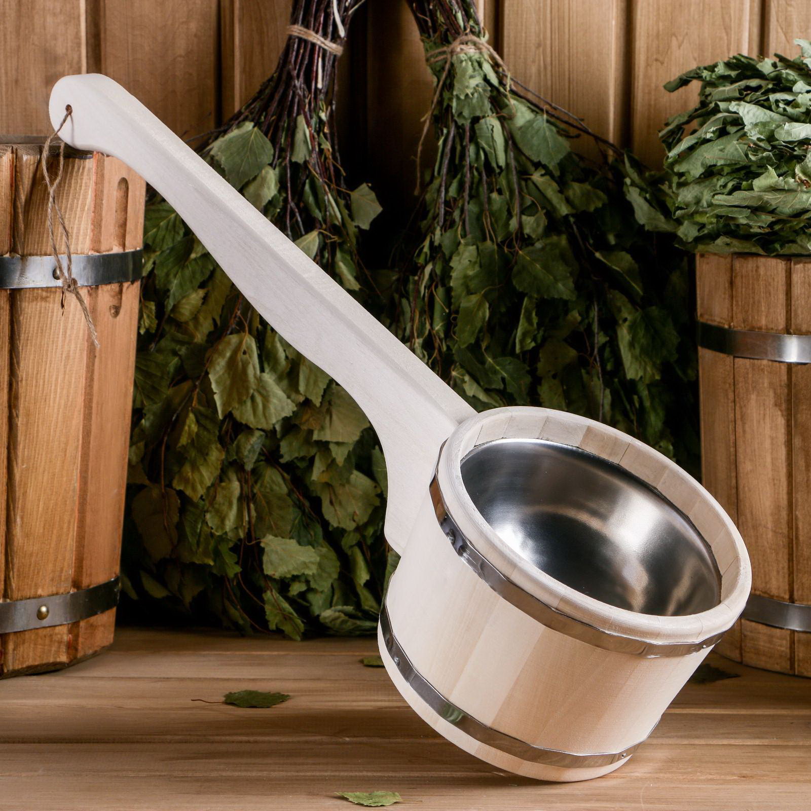 Ковш - черпак для бани и сауны, 900 мл, липа, нержавеющий обруч, 51 см, 900 мл., Добропаровъ, Россия