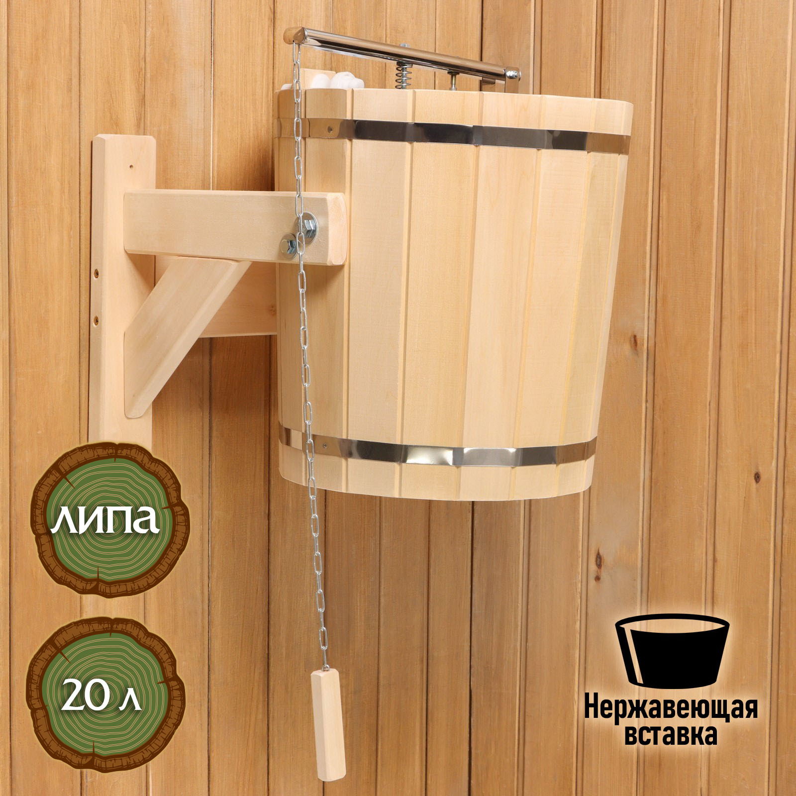 Обливное устройство для бани "Водопад", 20 л, деревянное, нержавеющая вставка, 20000 мл., Россия