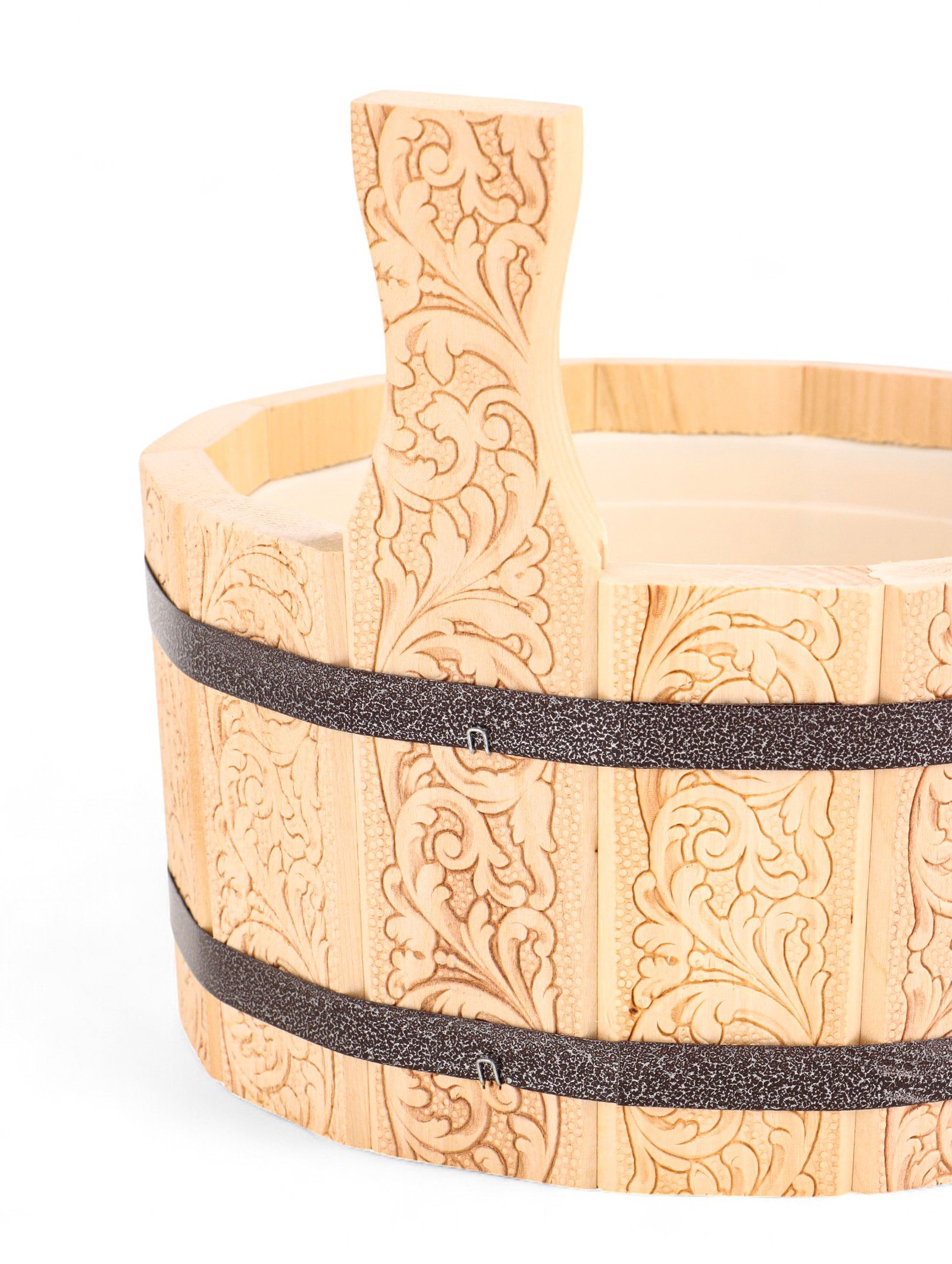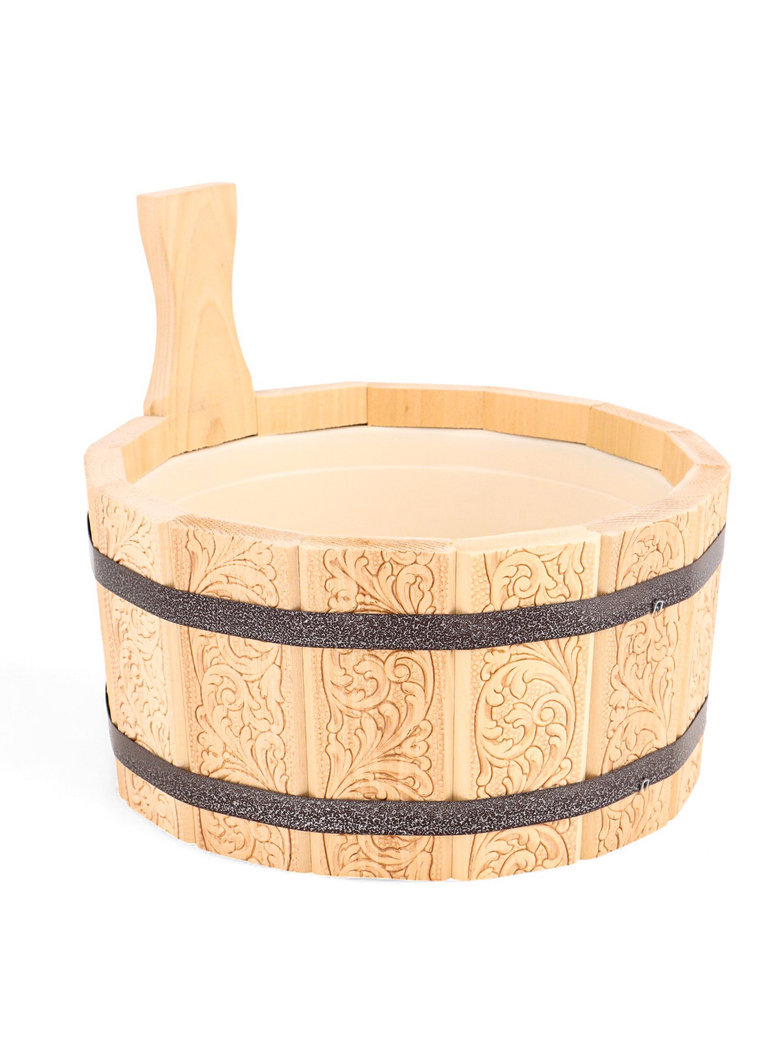 Шайка- ушат, бадья из липы, 4 л, пластиковая вставка "Русские узоры", 4000 мл., Добропаровъ, Россия