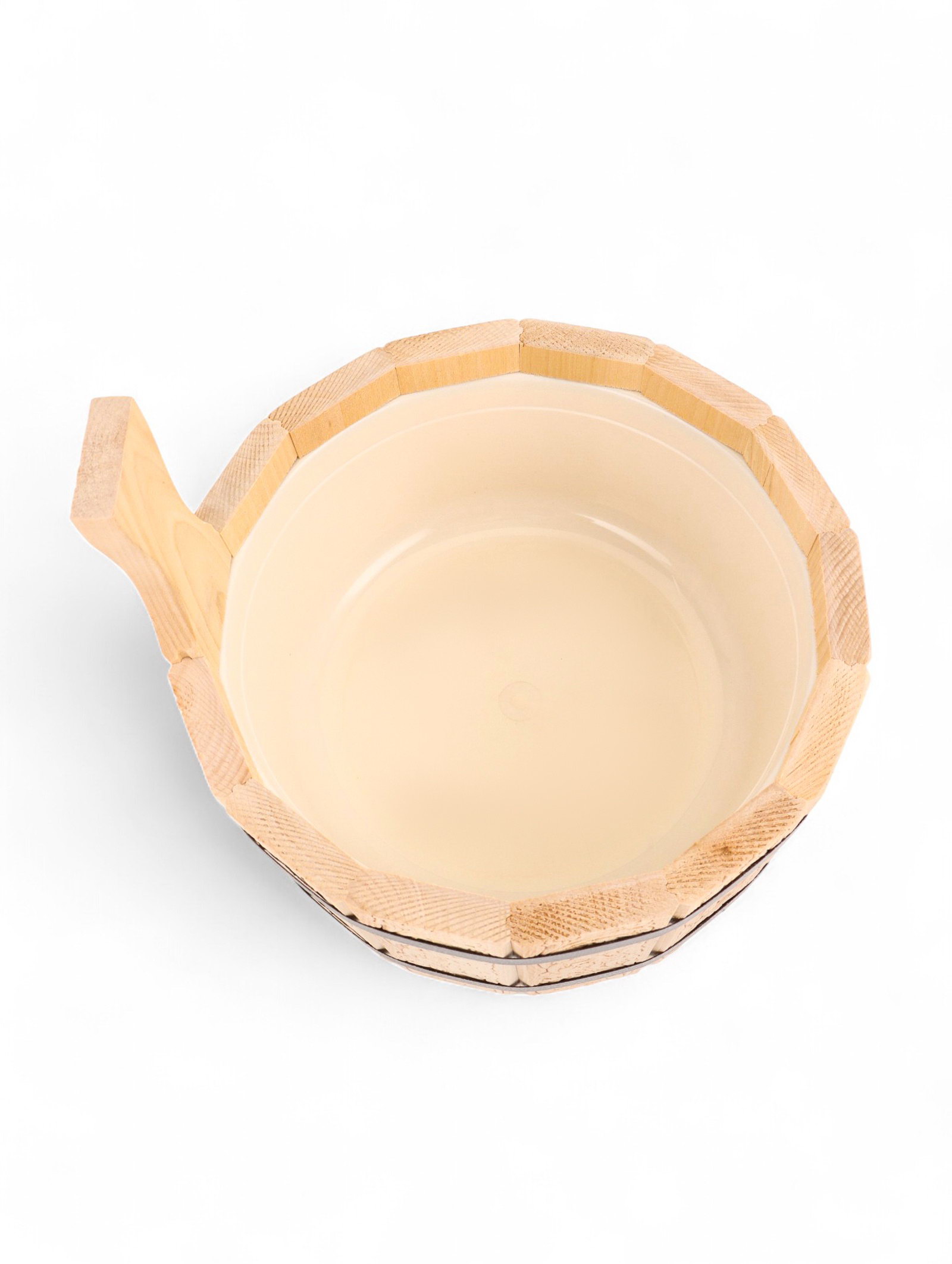Размер упаковки: 28 x 25 x 28 см. Размер упаковки: 28 x 25 x 28 см. tnved: 4416000000 Температурное ограничение: Нет Вставка: Пластиковая Вид дерева: Липа Вид: Шайка Инструкция использования и хранения бондарного изделия