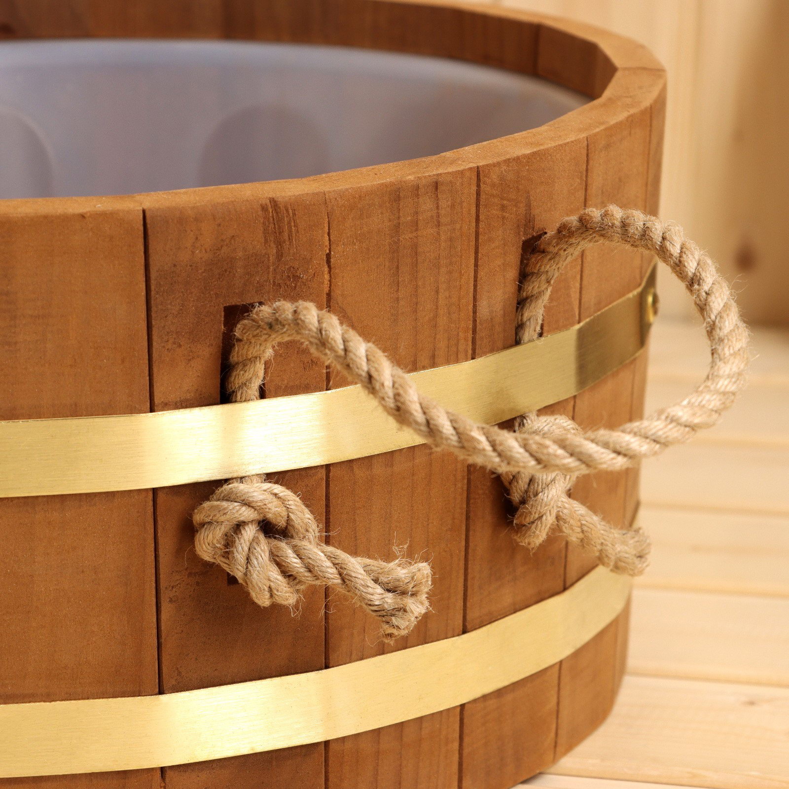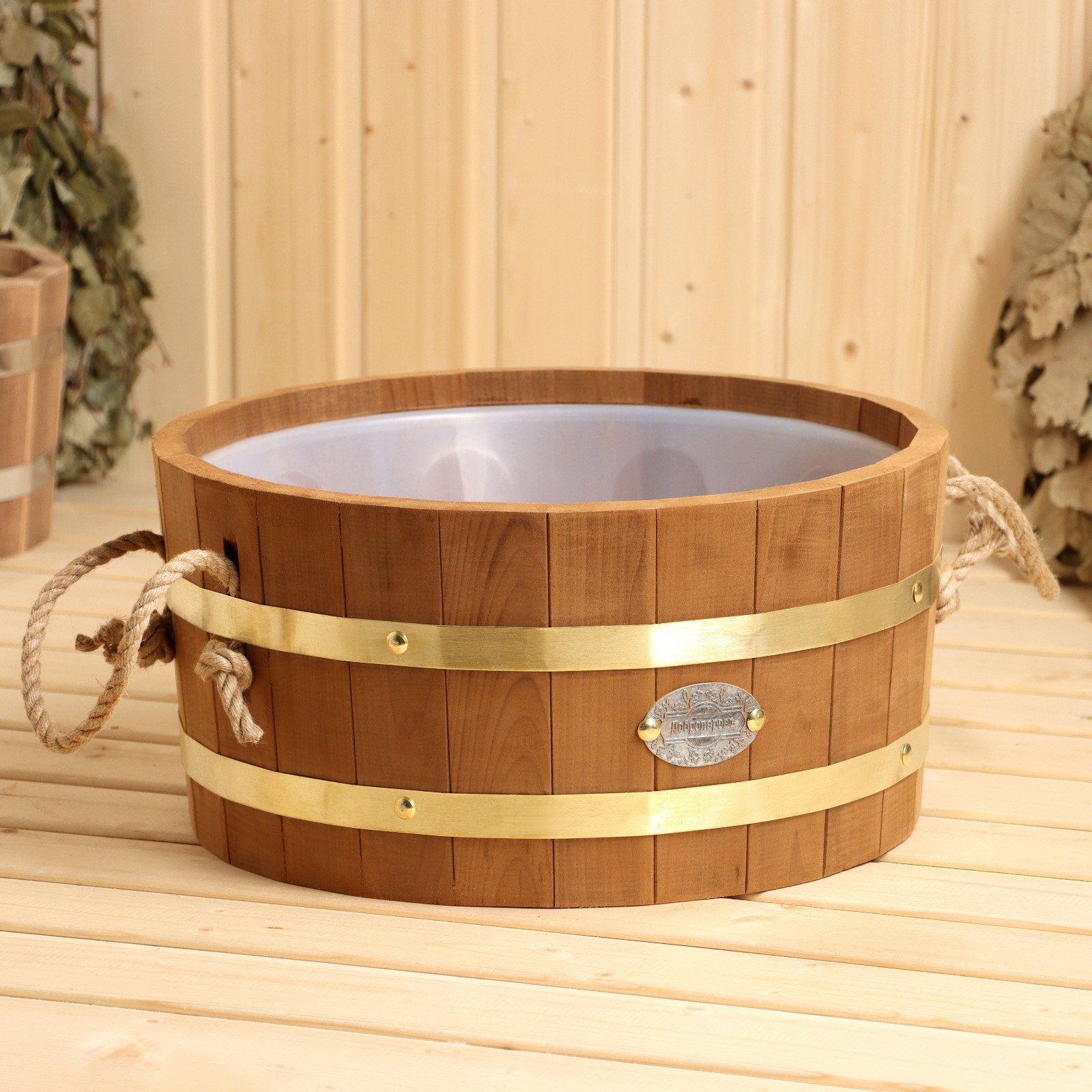 Шайка - таз для бани и сауны, 10 л, деревянная, пластиковая вставка, ручки - верёвки, с термообработкой, 10000 мл., Добропаровъ, Россия