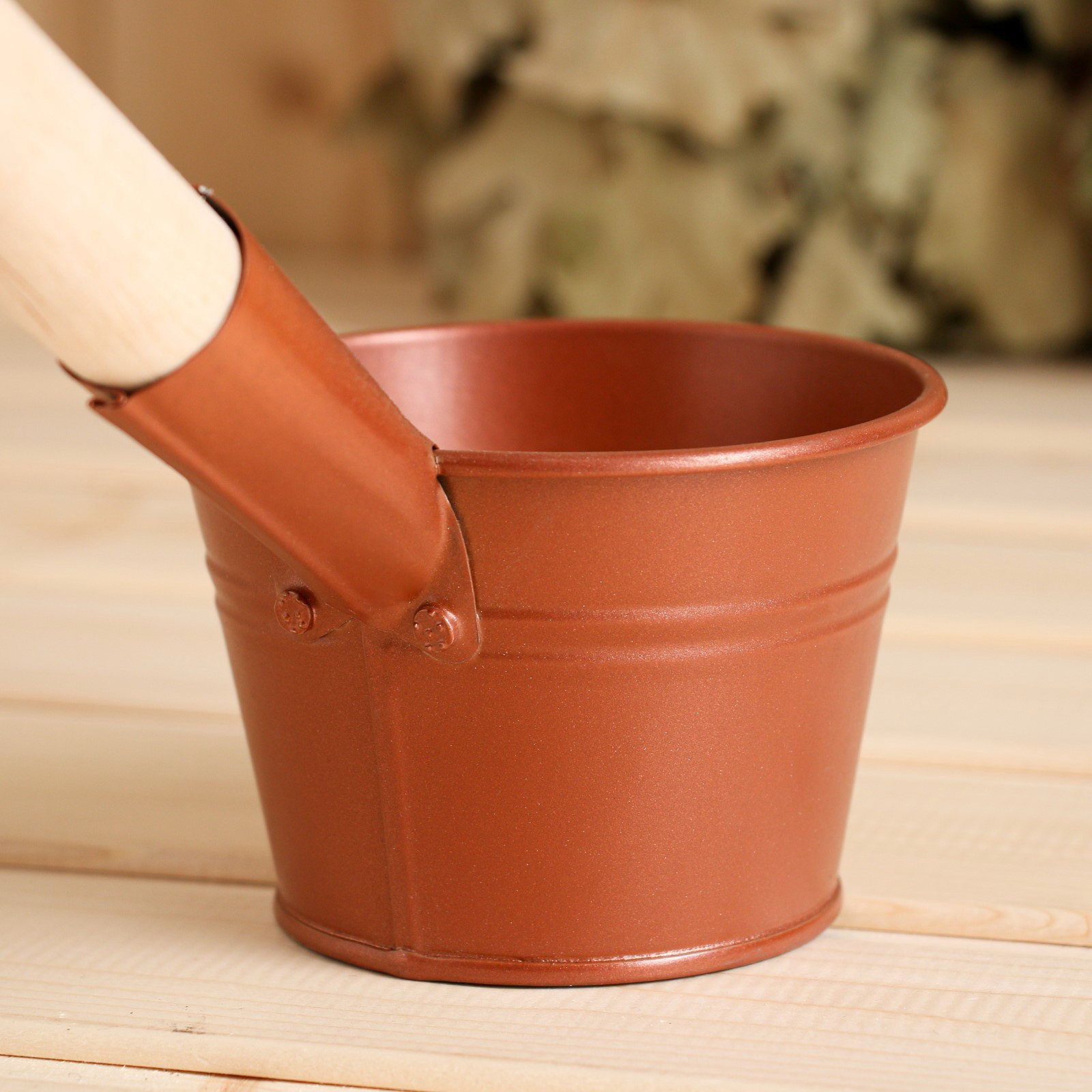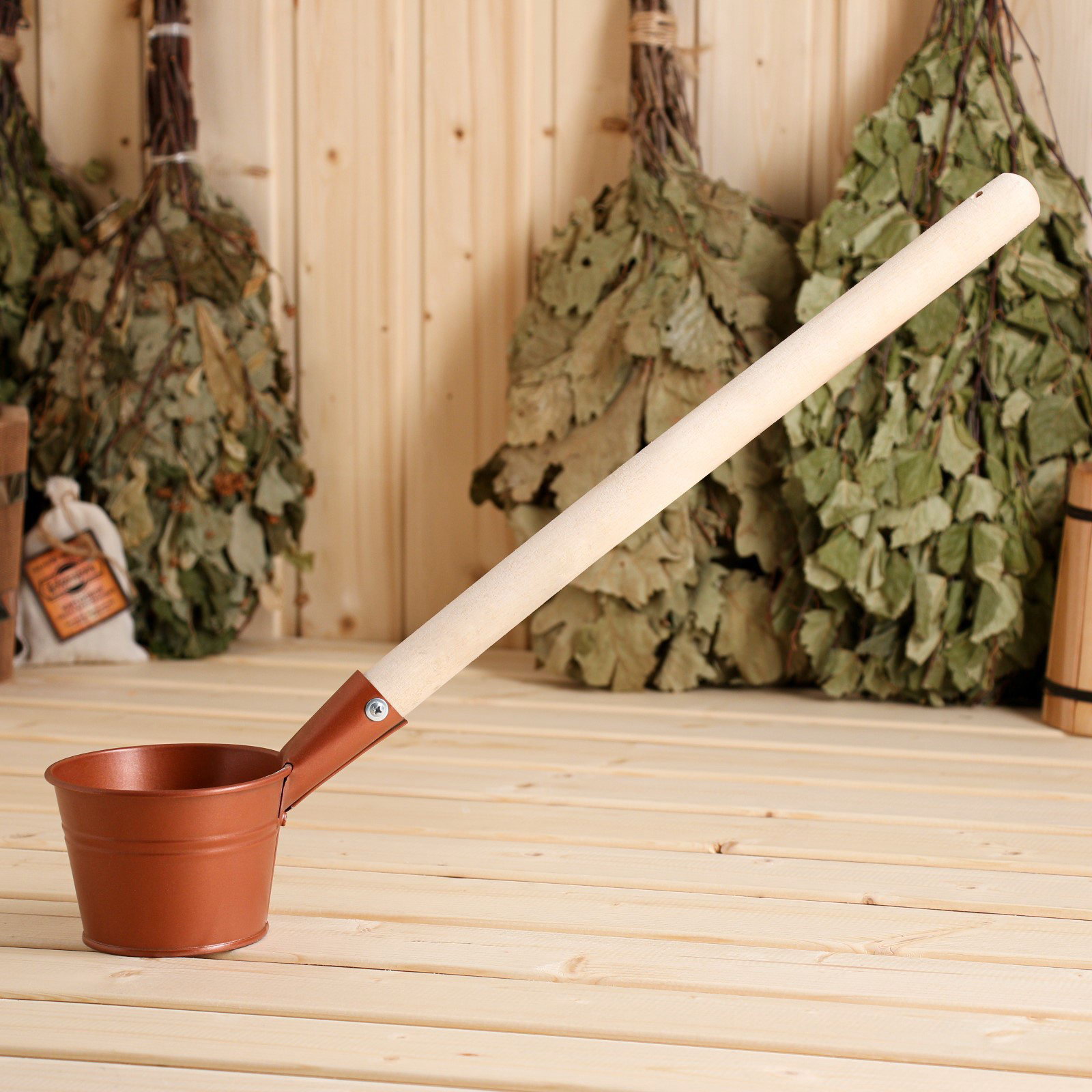 Ковш - черпак для бани и сауны "Бронза", 500 мл, металлический, деревянная ручка, 500 мл., Добропаровъ, Россия