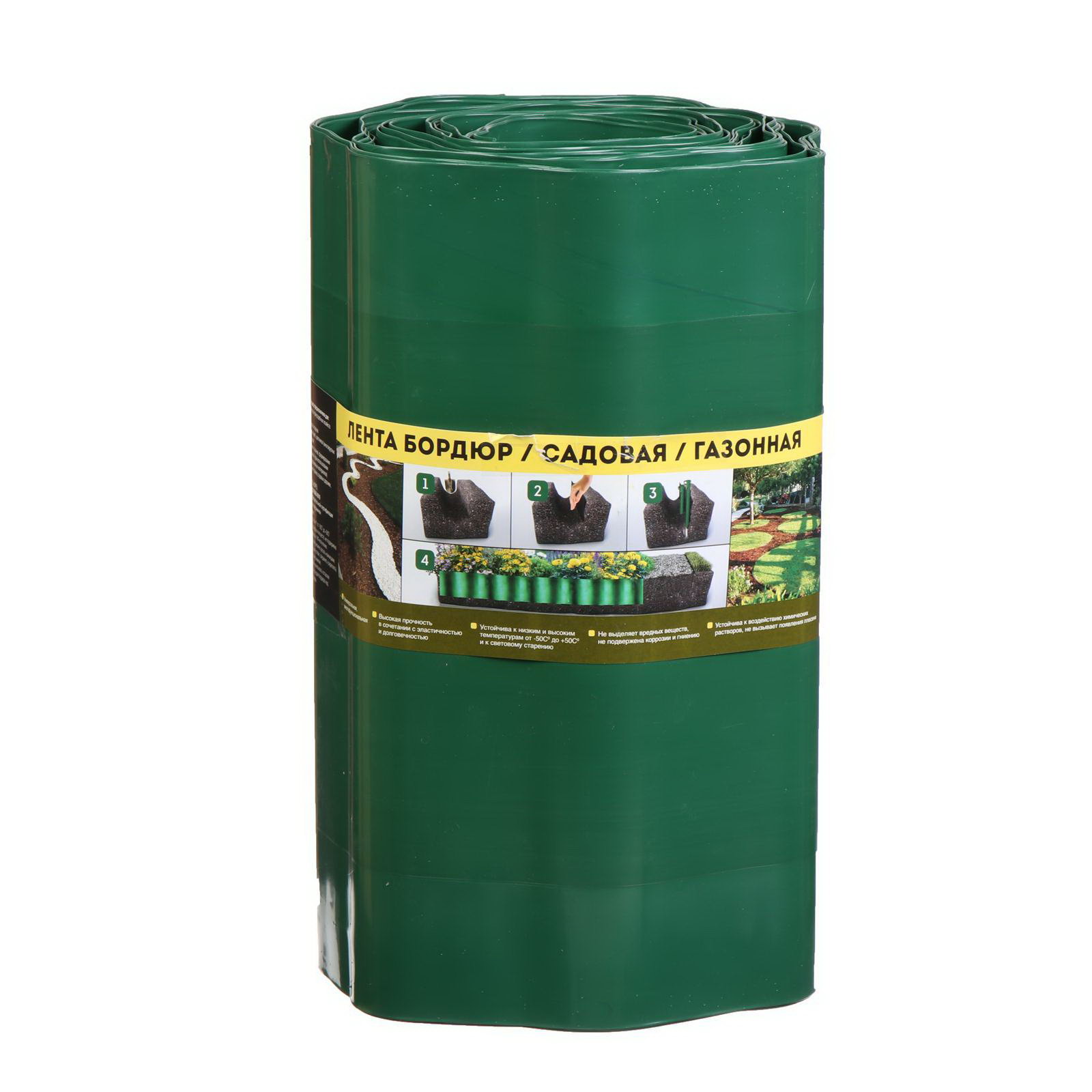 Лента бордюрная, 0.3 x 9 м, толщина 0.6 мм, гофра, пластиковая, зелёная, Россия