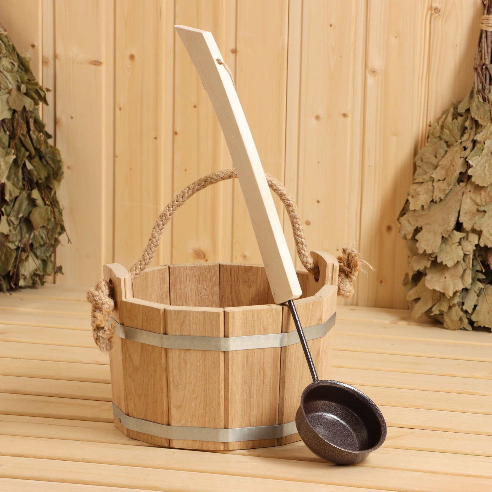 Набор для бани и сауны, 2 предмета: шайка деревянная, 4.5 л, черпак медный, 200 мл, Добропаровъ, Россия