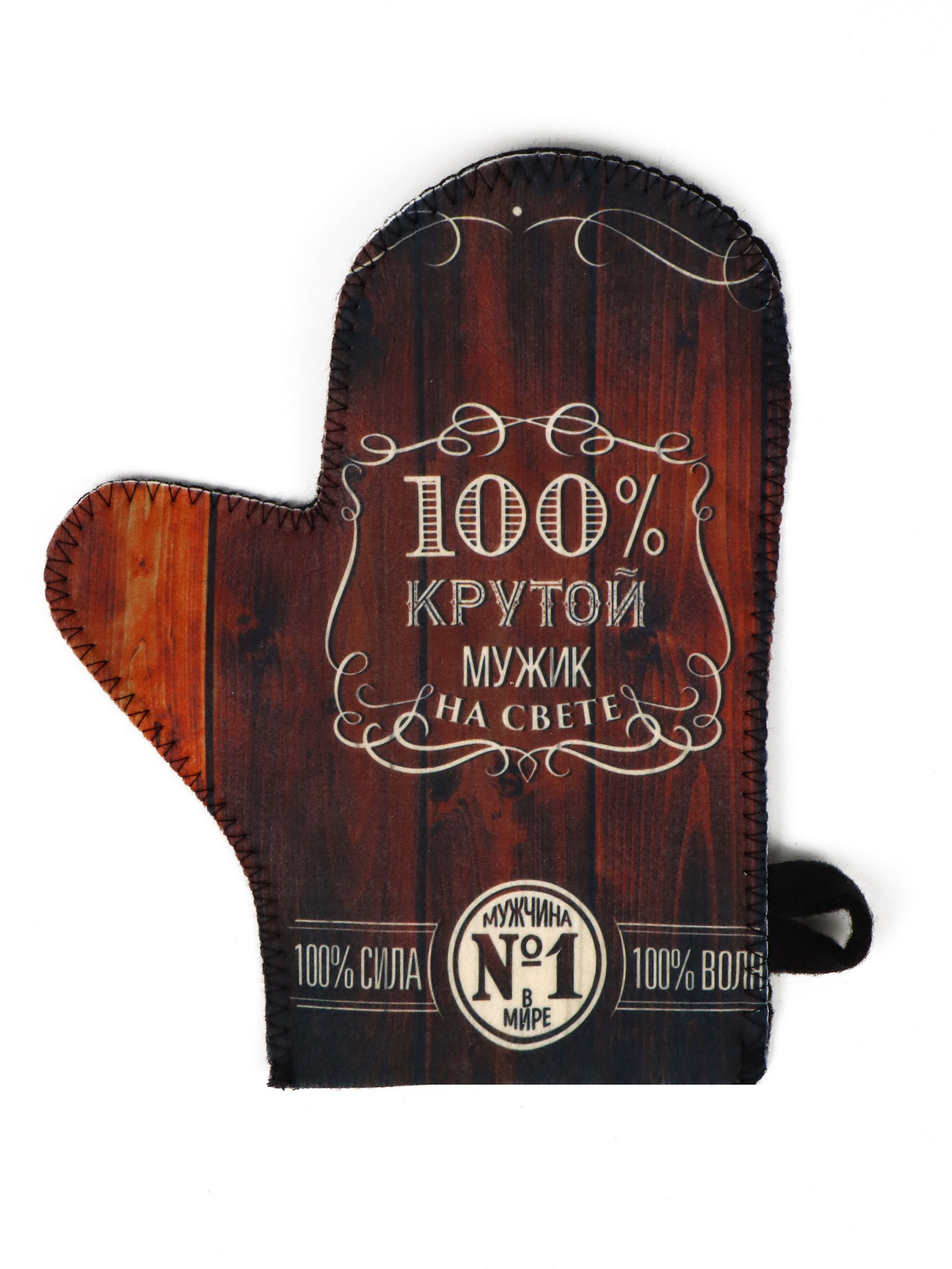 Набор для бани с принтом "Крутой мужик", 4 предмета: шапка, рукавица, тапочки, коврик, войлок, тёмный, Банная забава, Россия