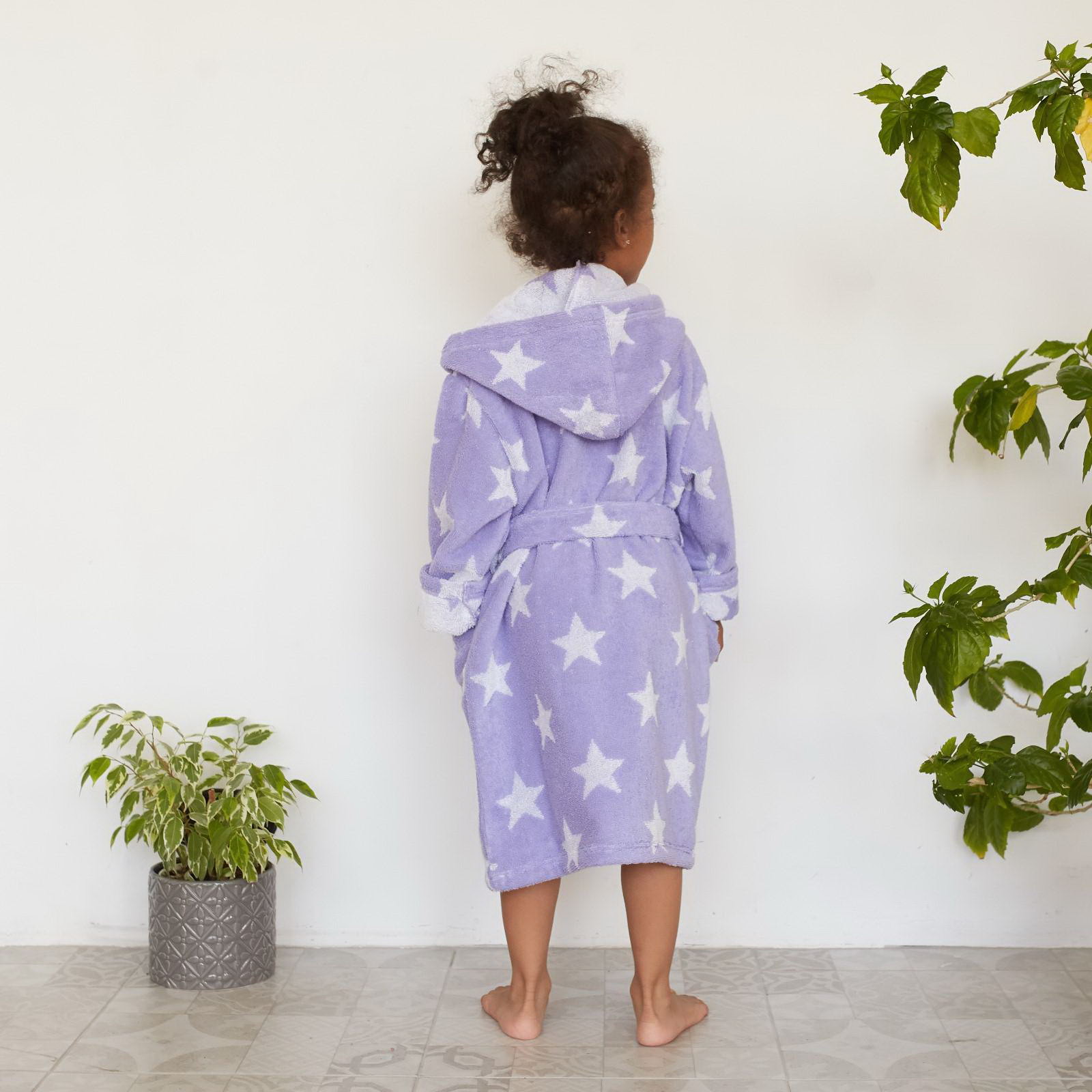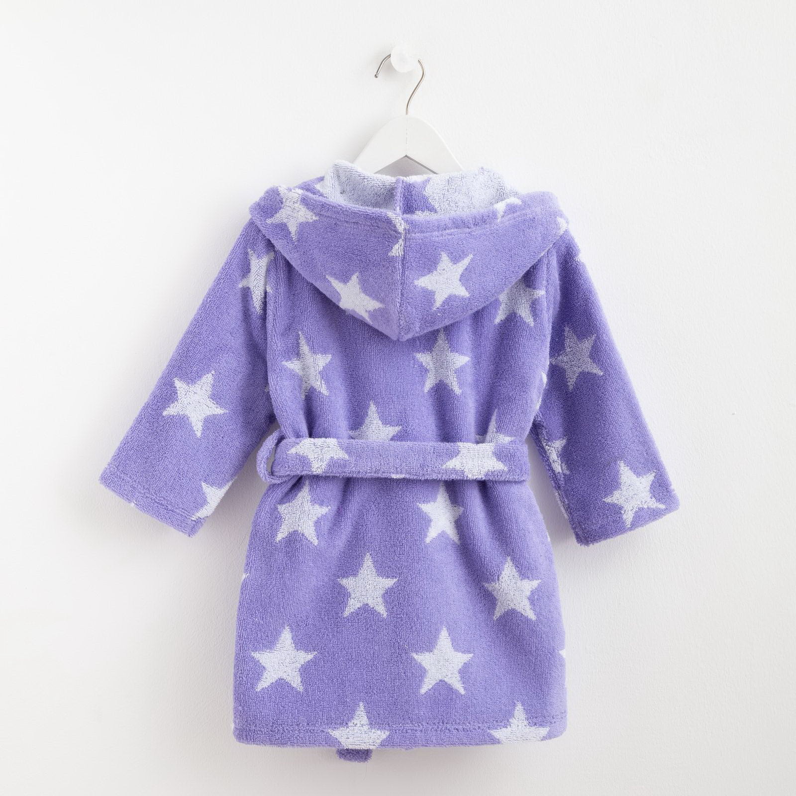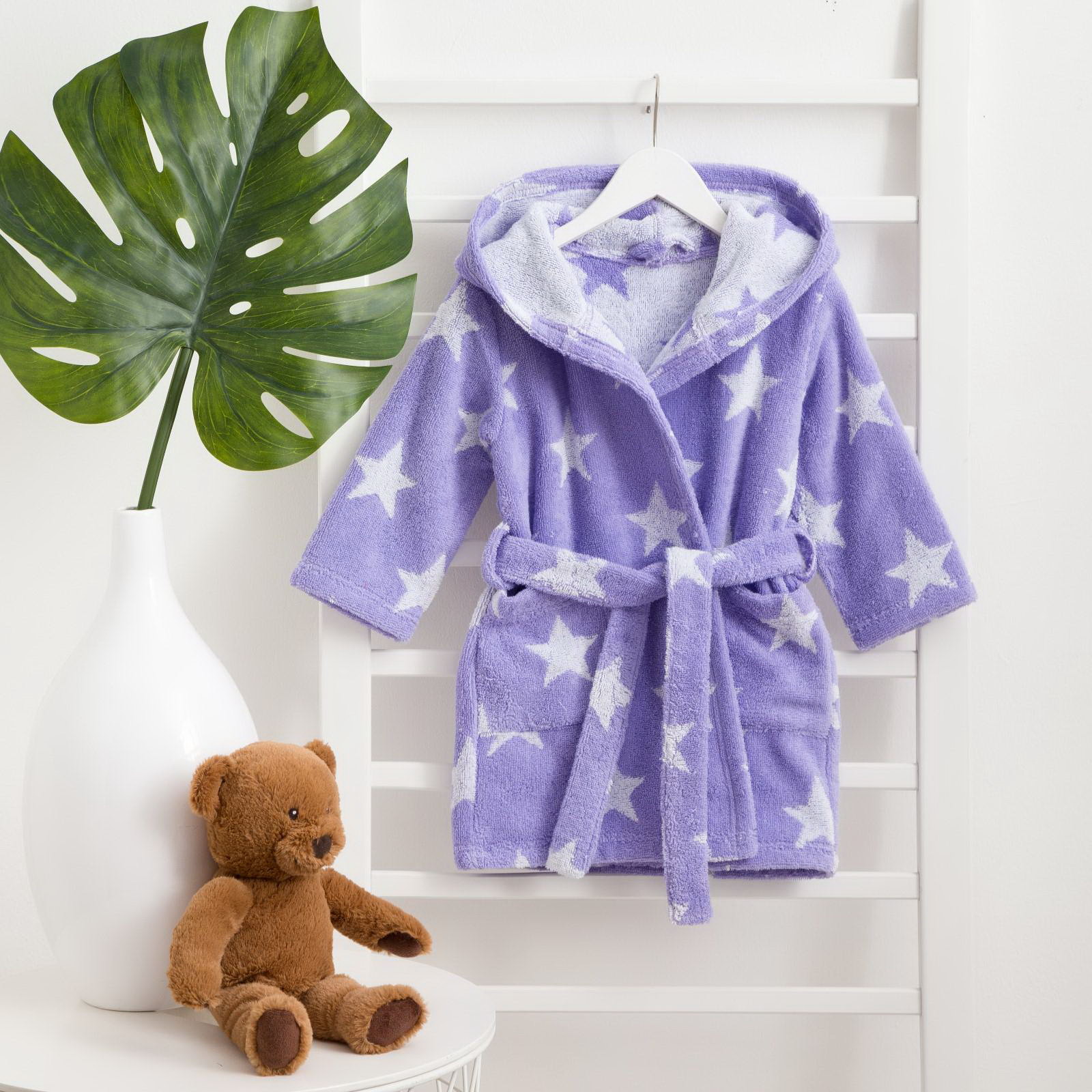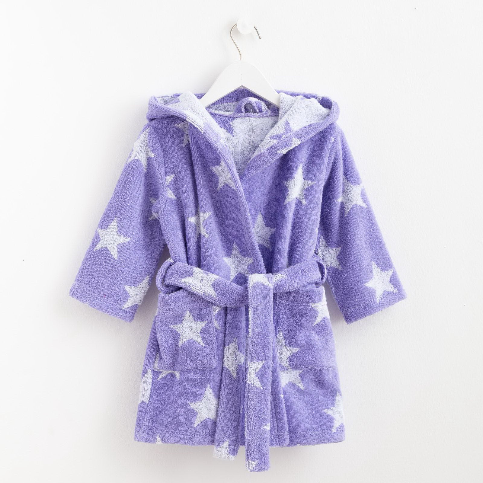 Халат махровый детский "Звездочки" размер 32, цвет лаванда, 100% хлопок 360 г/м2, Крошка Я, Россия