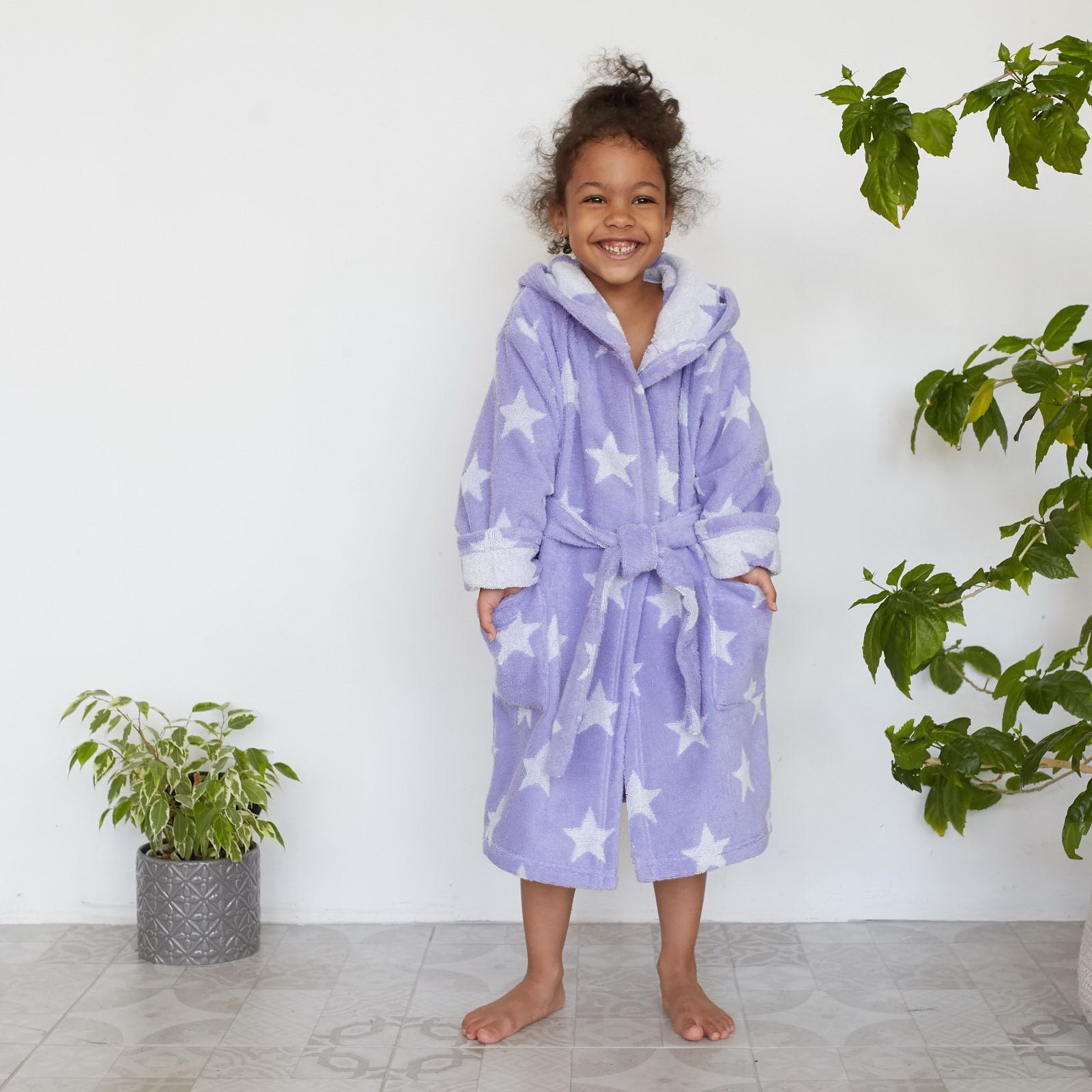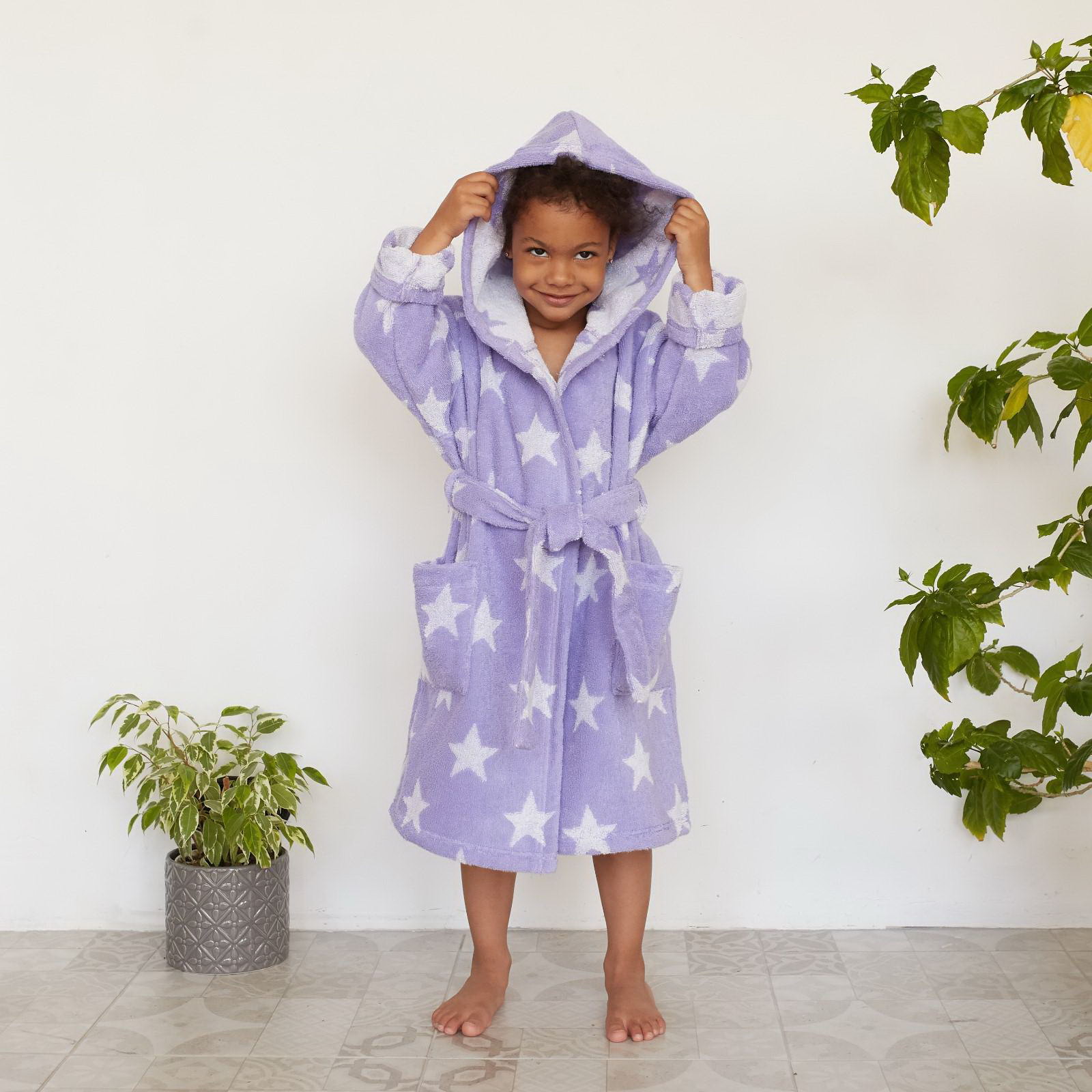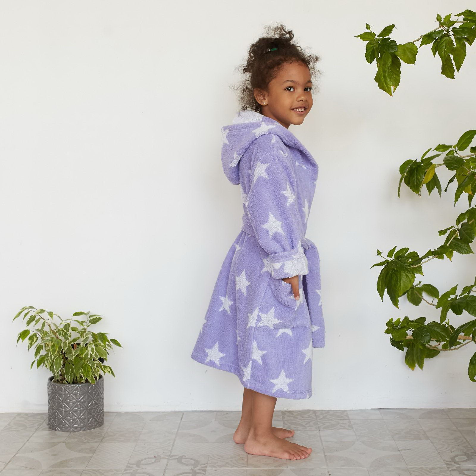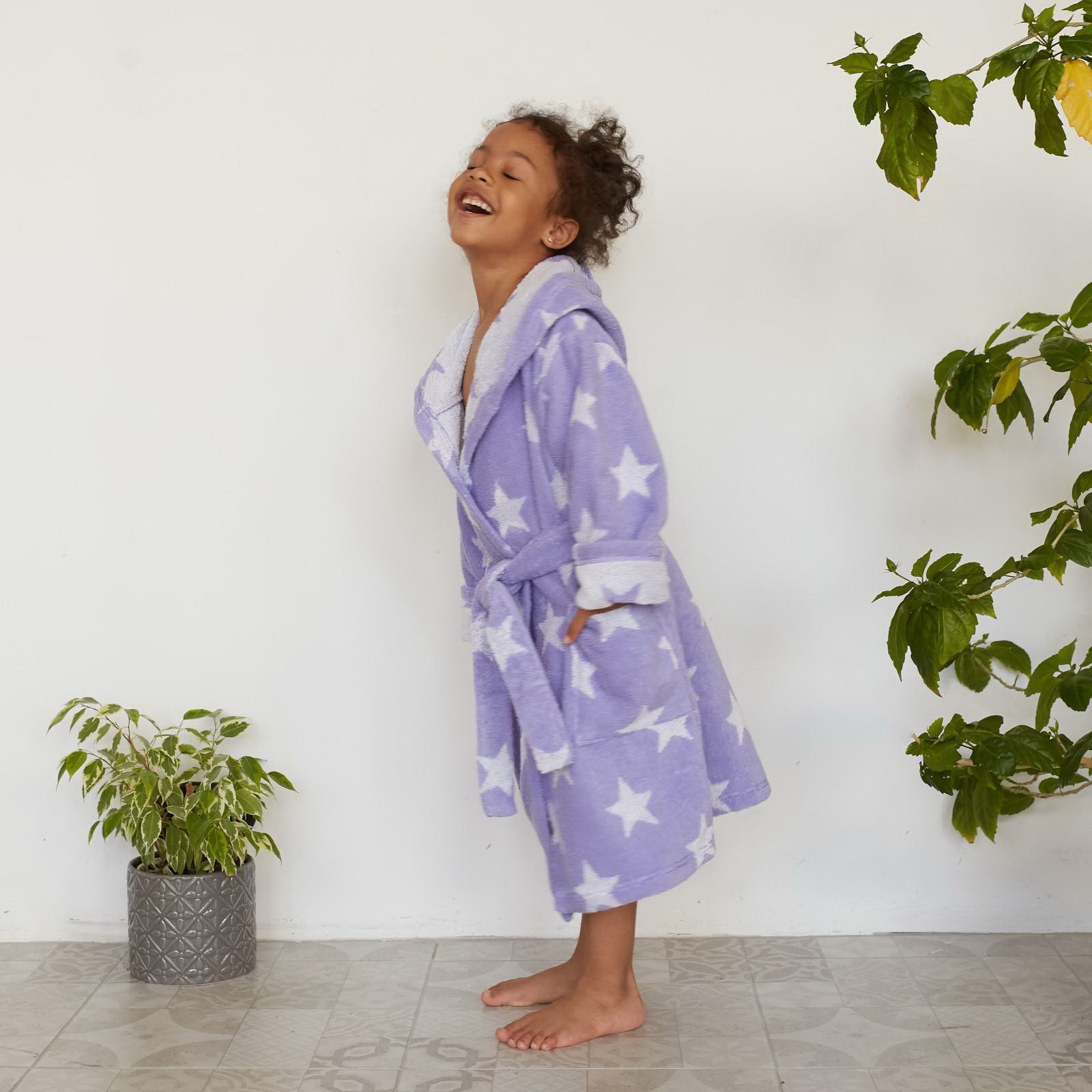 Халат махровый детский "Звездочки" размер 32, цвет лаванда, 100% хлопок 360 г/м2, Крошка Я, Россия