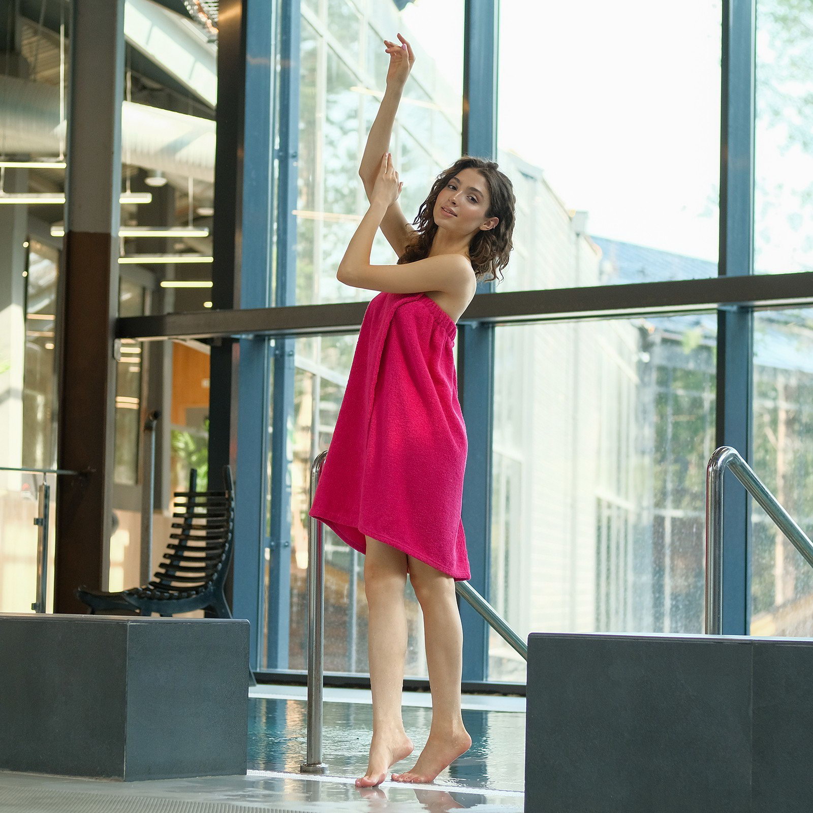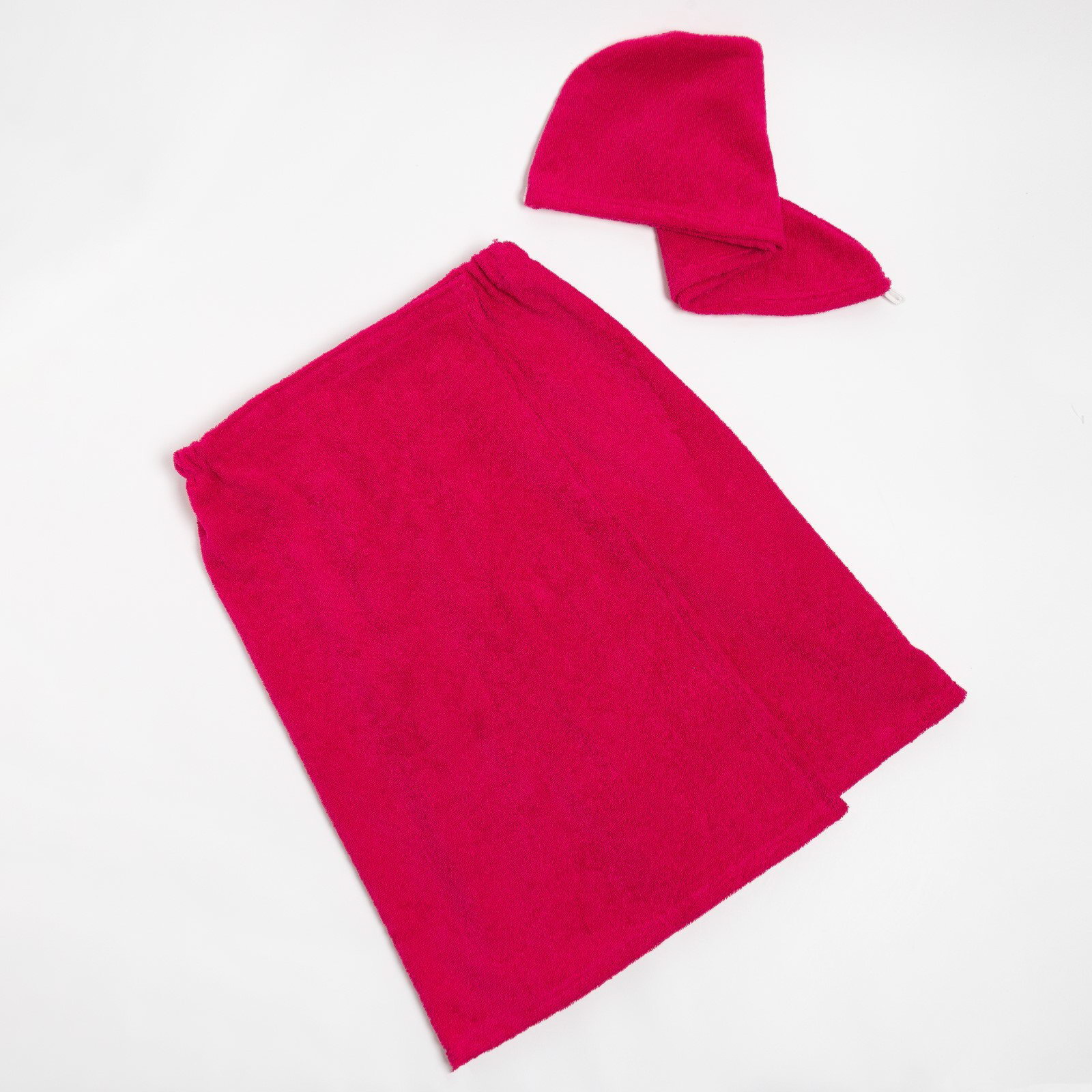 Набор для сауны:полотенце-парео 68*150см + чалма,цв.ярко-розовый,100%хл,320 г/м2, Экономь и Я, Россия
