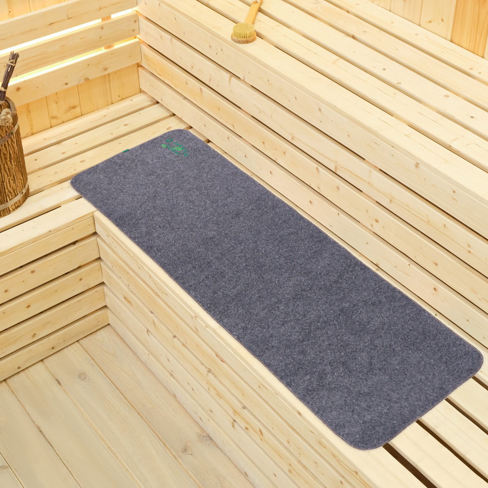 Коврик - лежак для бани и сауны "С лёгким паром", шерсть, полиэстер, серый, Добропаровъ, Россия