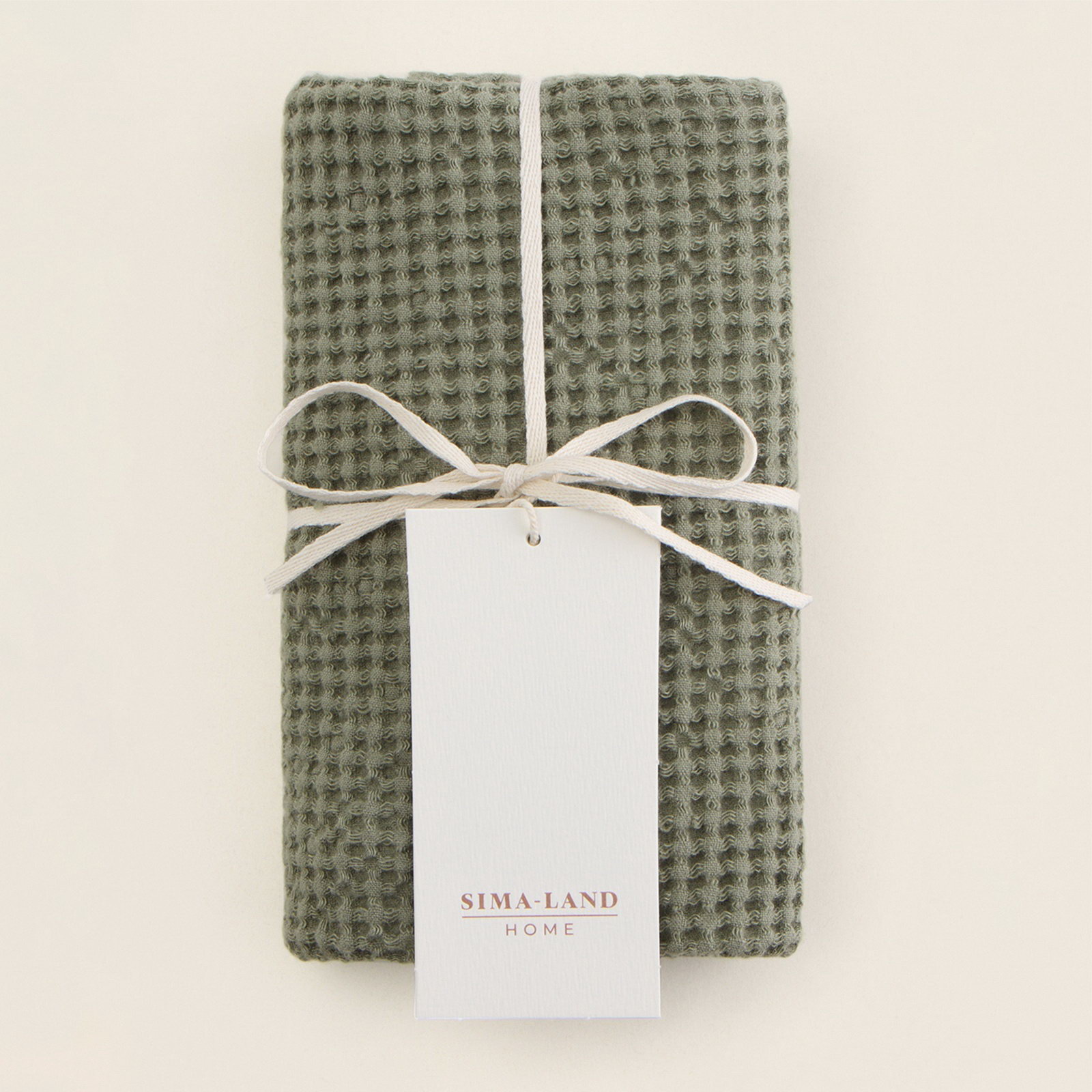 Полотенце вафельное SL HOME: Linen "Олива", 60x140 см, оливковое, Sima-Land Home, Беларусь
