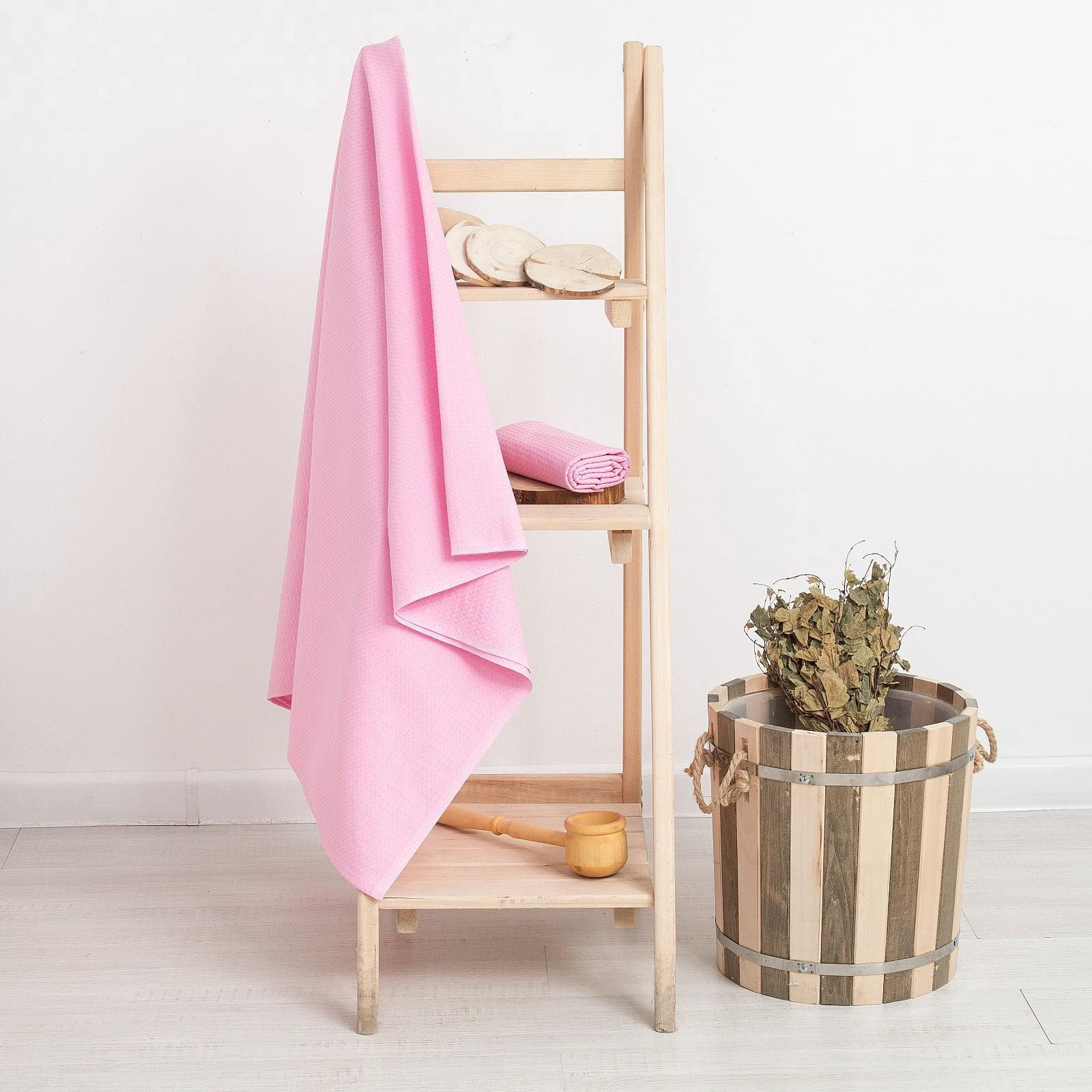 Простыня вафельная для бани 150х180 см, цвет розовый 100% хлопок, 200 гр/м2, 150x180 см., Экономь и Я, Россия