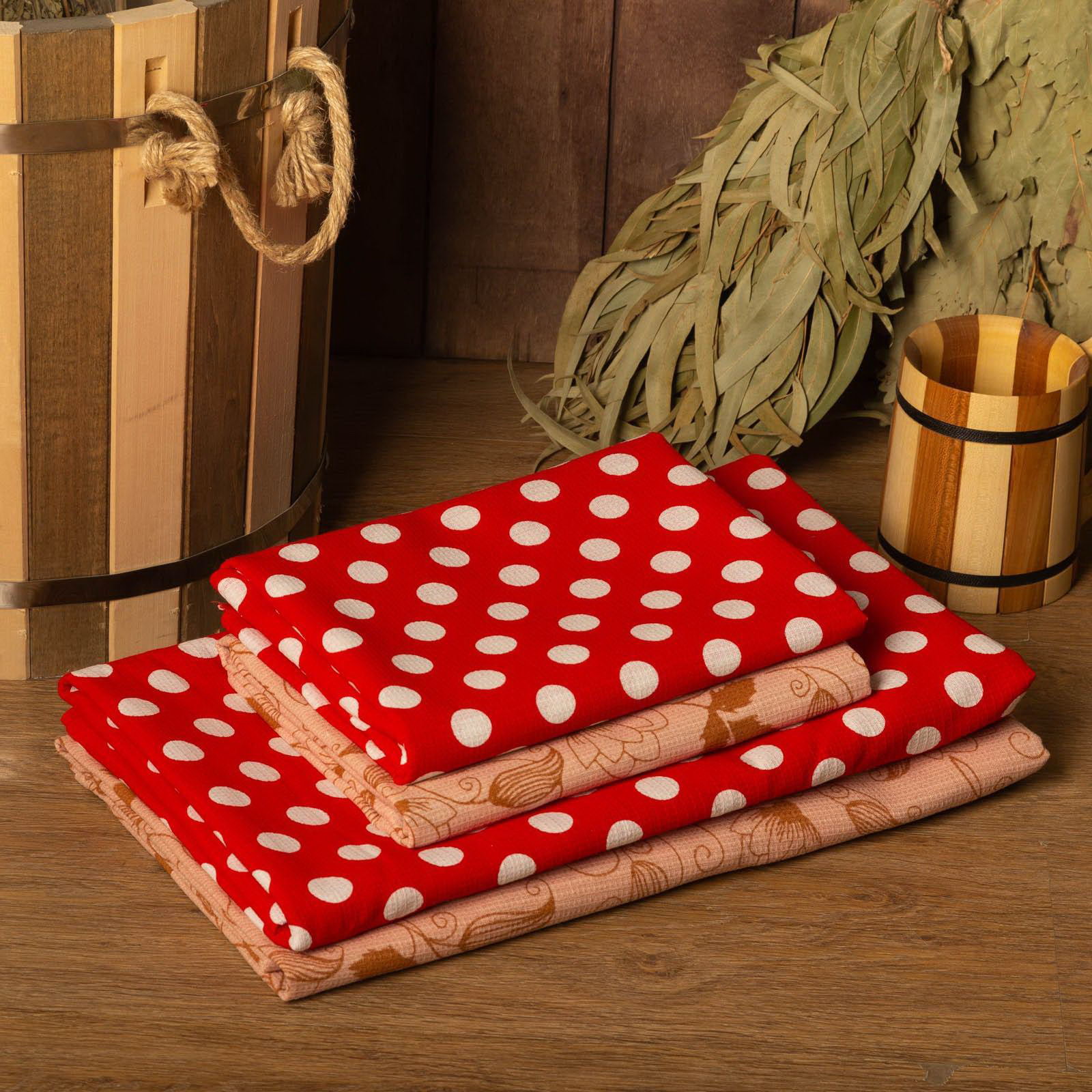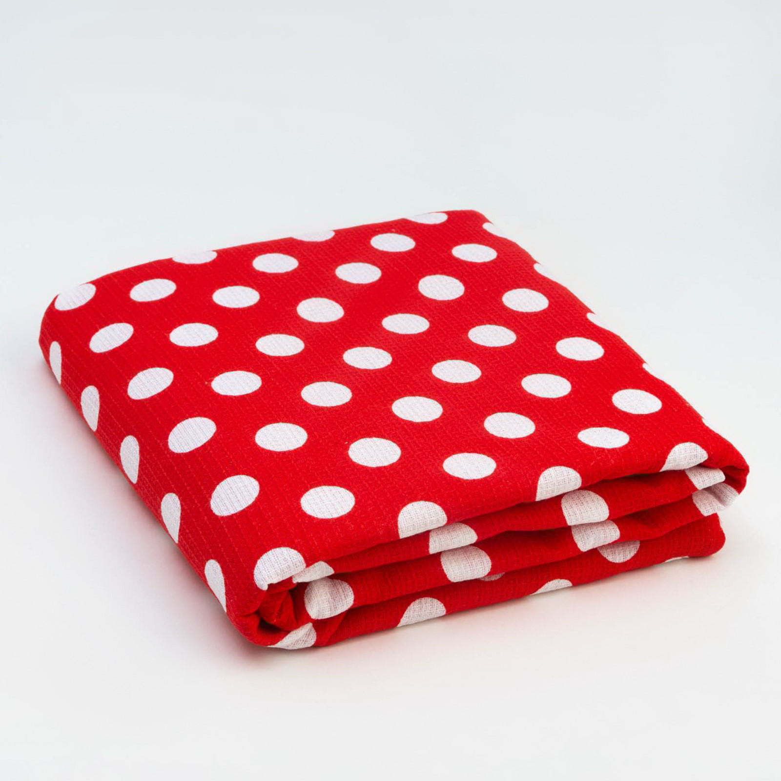 Простыня вафельная для бани "Горох" 150х180 см, цвет красный, 150 гр/м2, 100% хлопок, 150x180 см., Экономь и Я, Россия