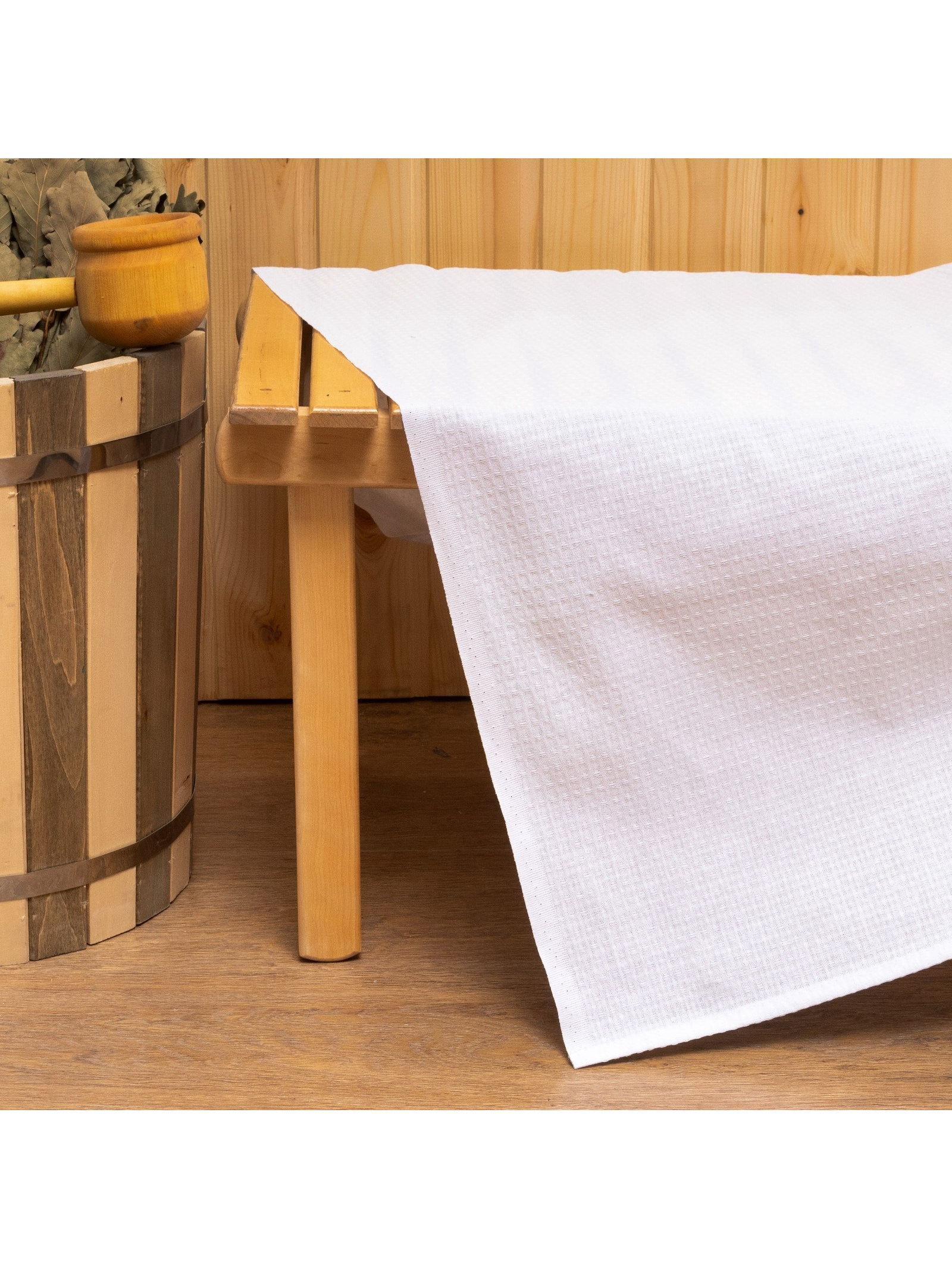 Простыня вафельная для бани 150х180 см, цвет белый, 100% хлопок, 200 г/м2, 150x180 см., Экономь и Я, Россия