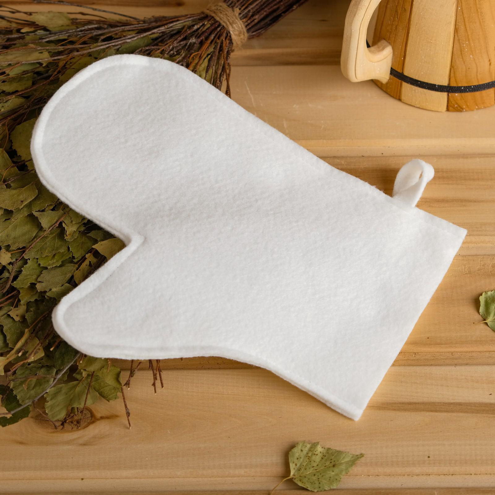 Рукавица для бани и сауны, полиэфир, белая, Россия