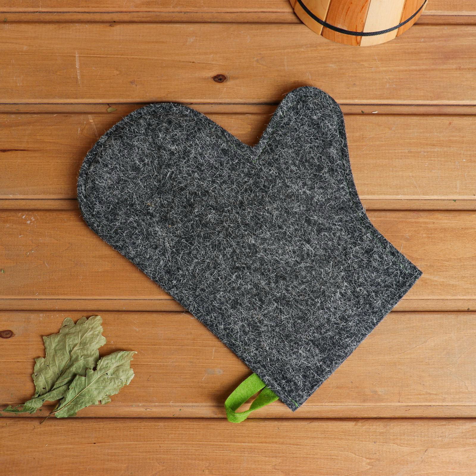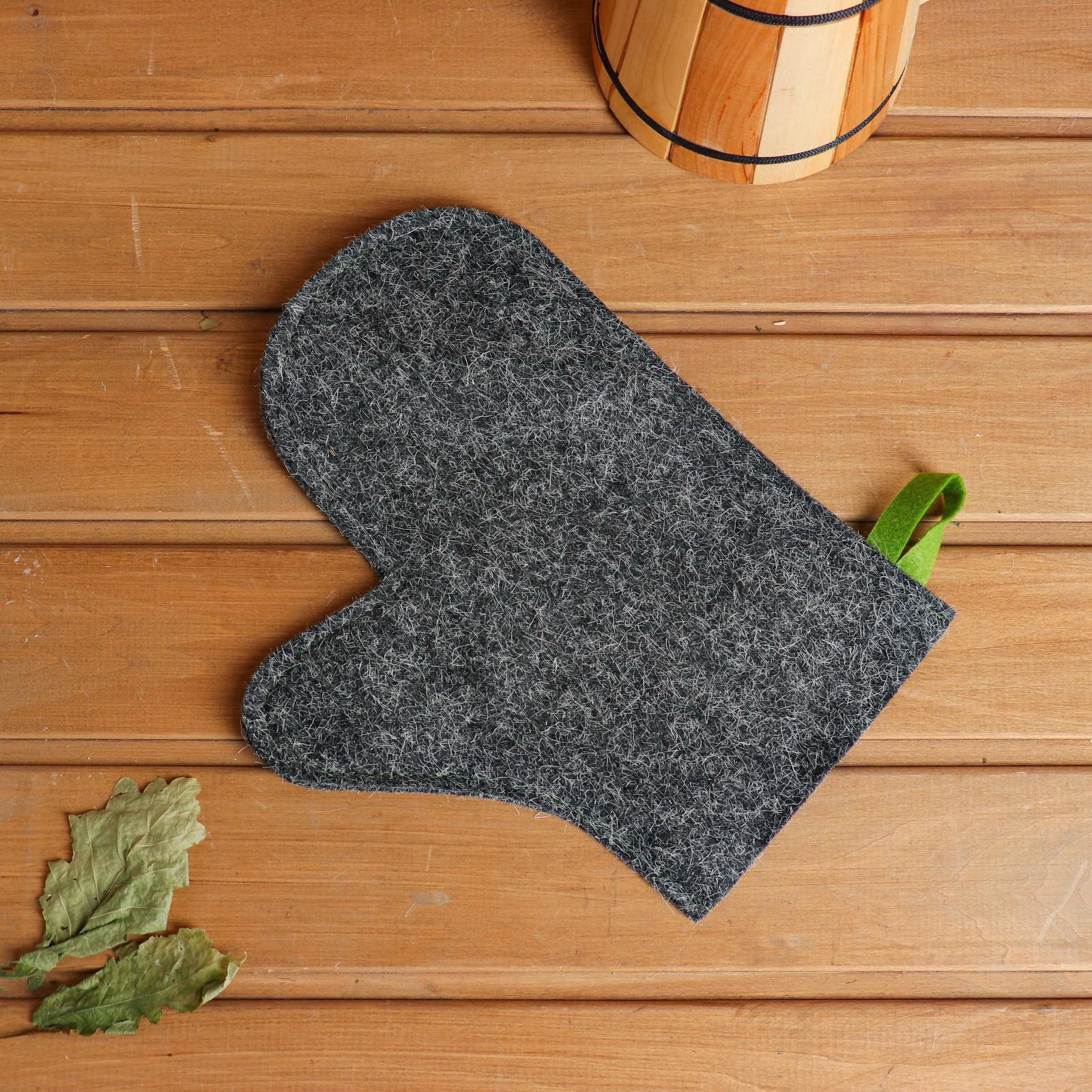 Рукавица для бани и сауны, войлок, серая, 22x0.5x28 см., Россия