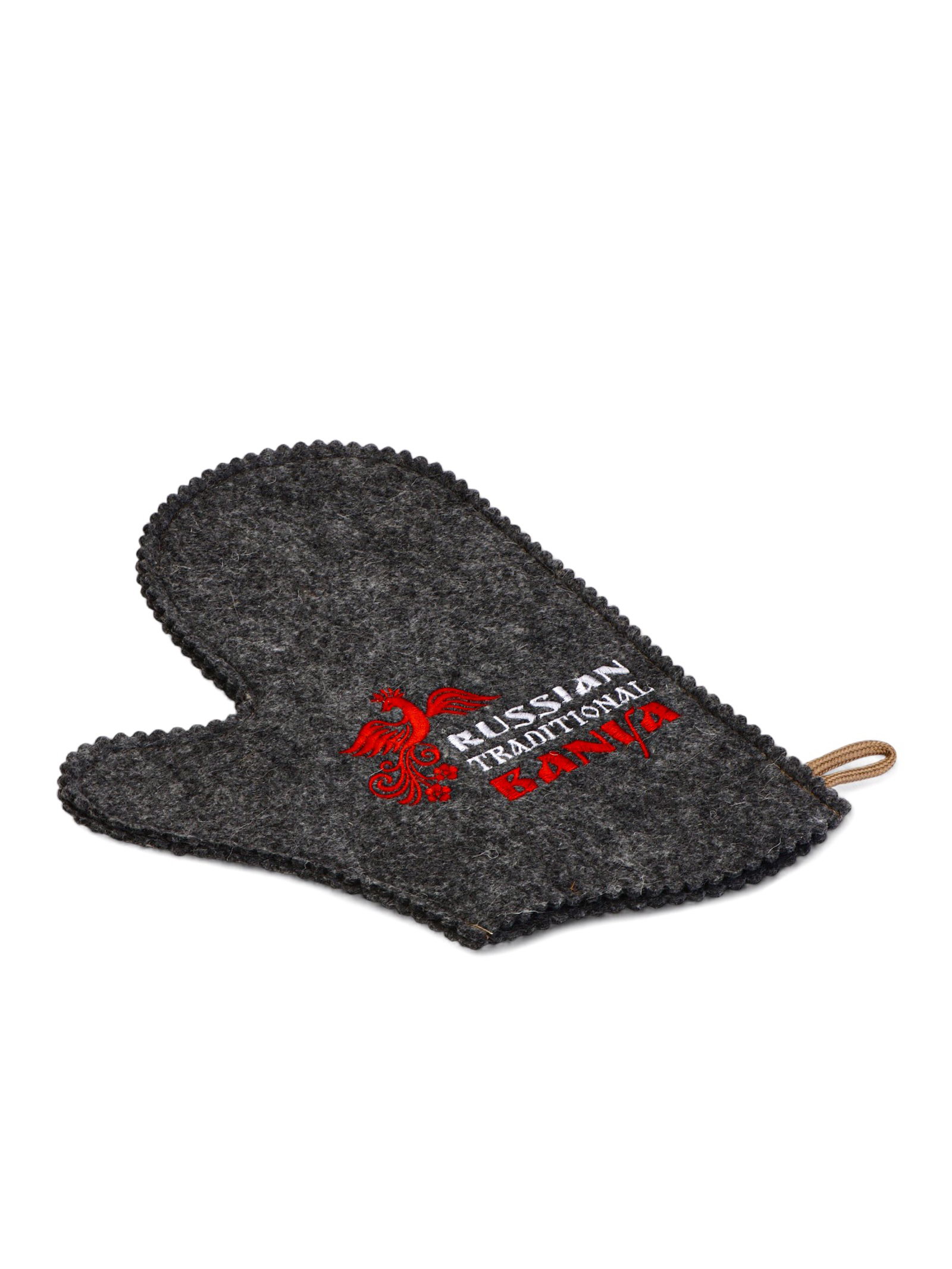 Рукавица для бани и сауны "Русские традиции", шерсть 50%, полиэфир 50%, серая, Россия