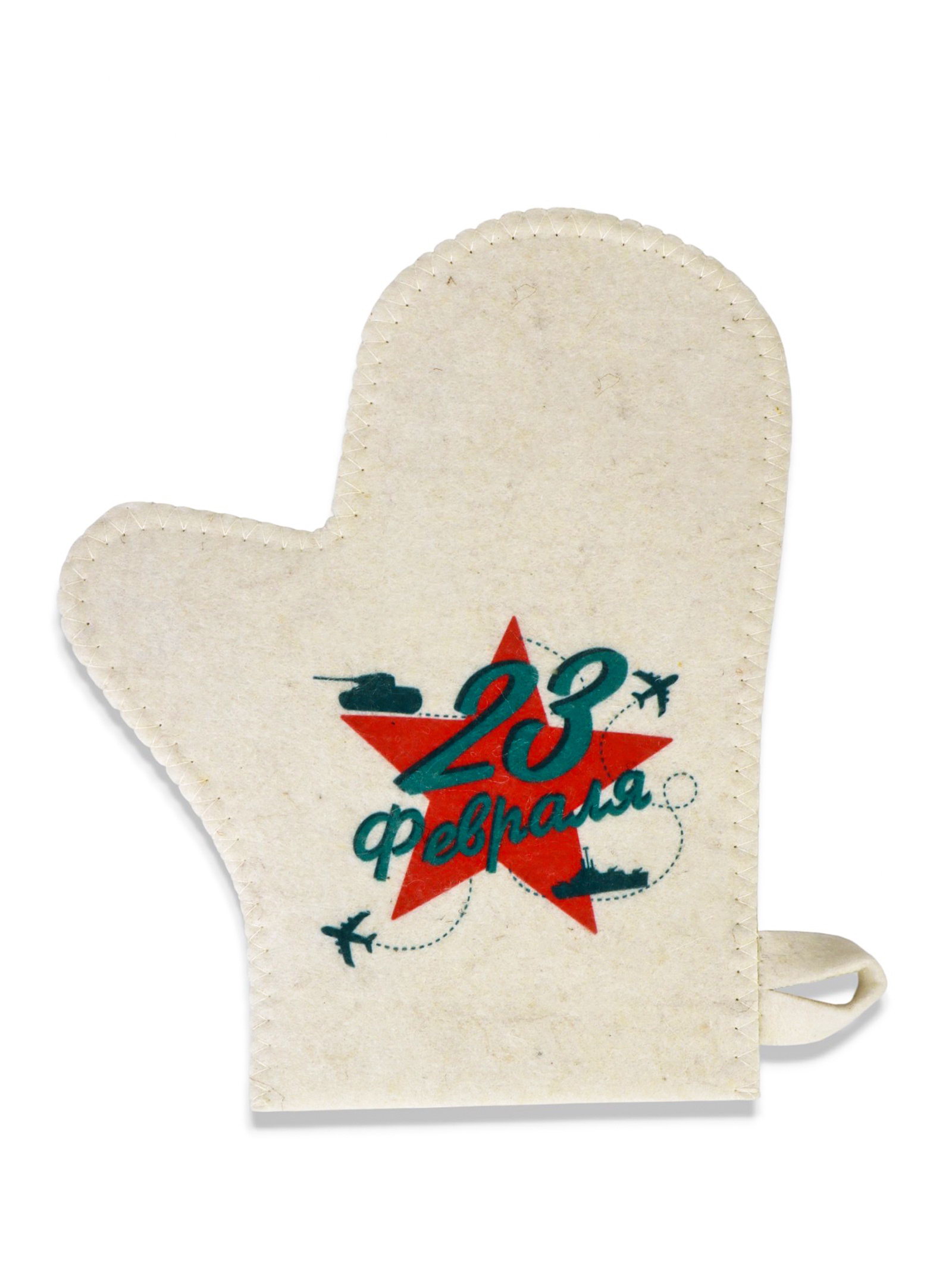 Рукавица для бани с принтом "23.02", белая, Россия