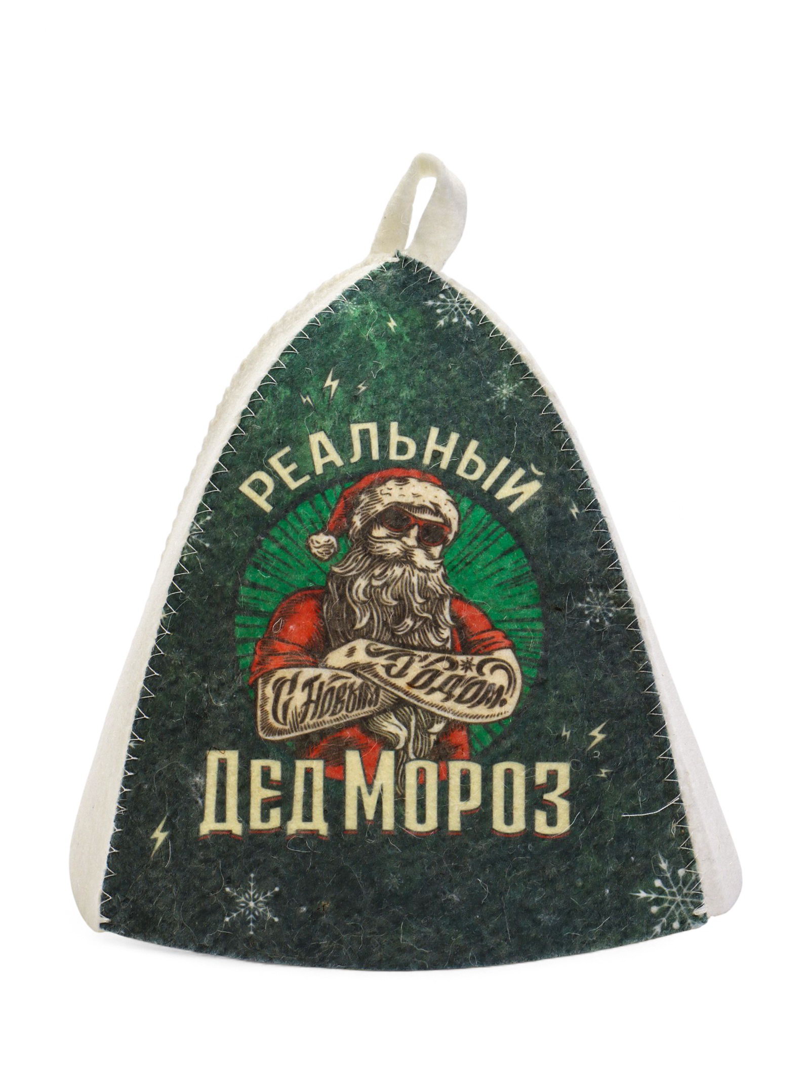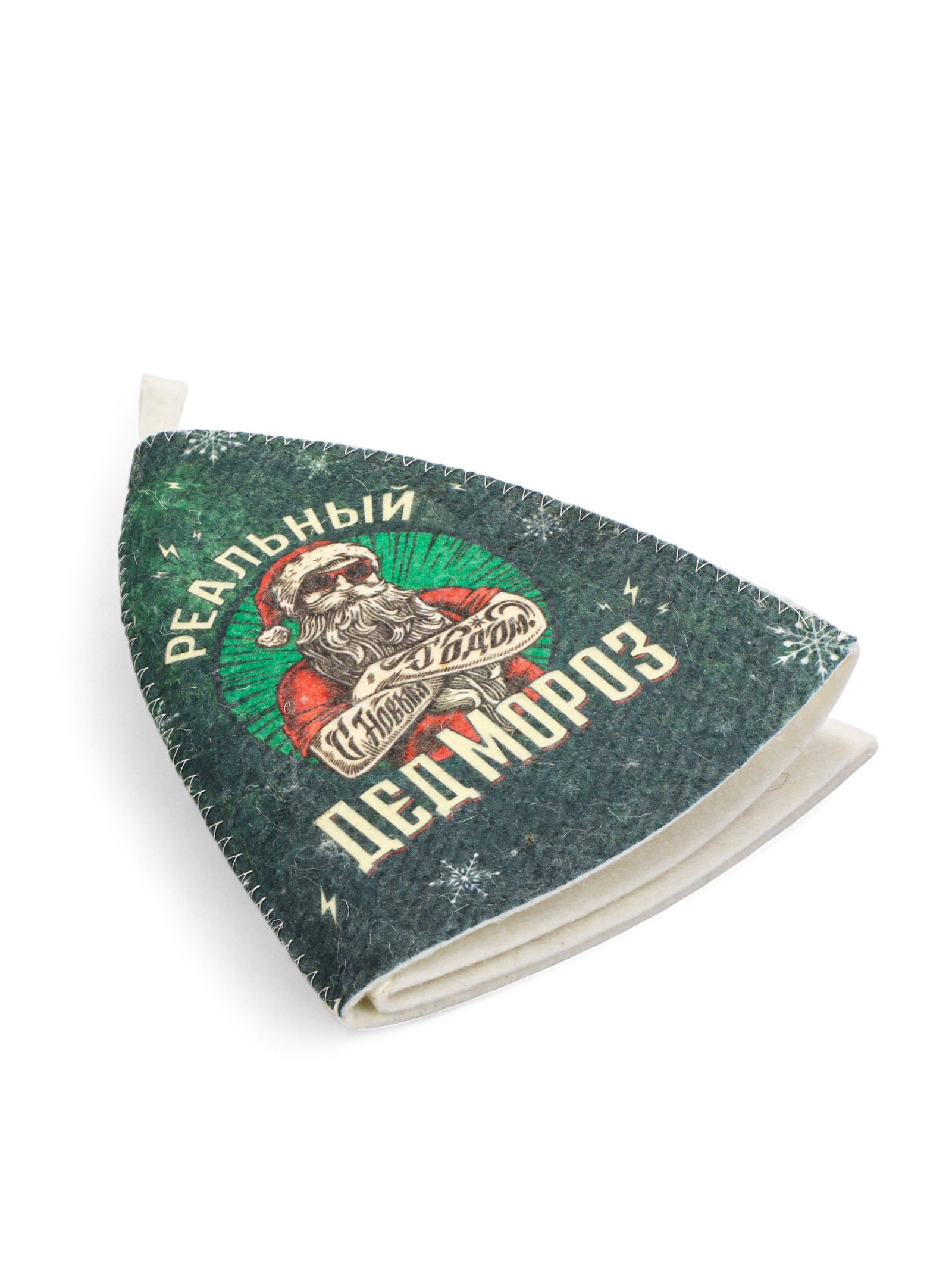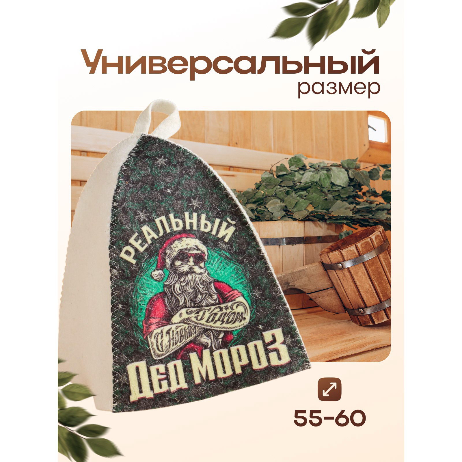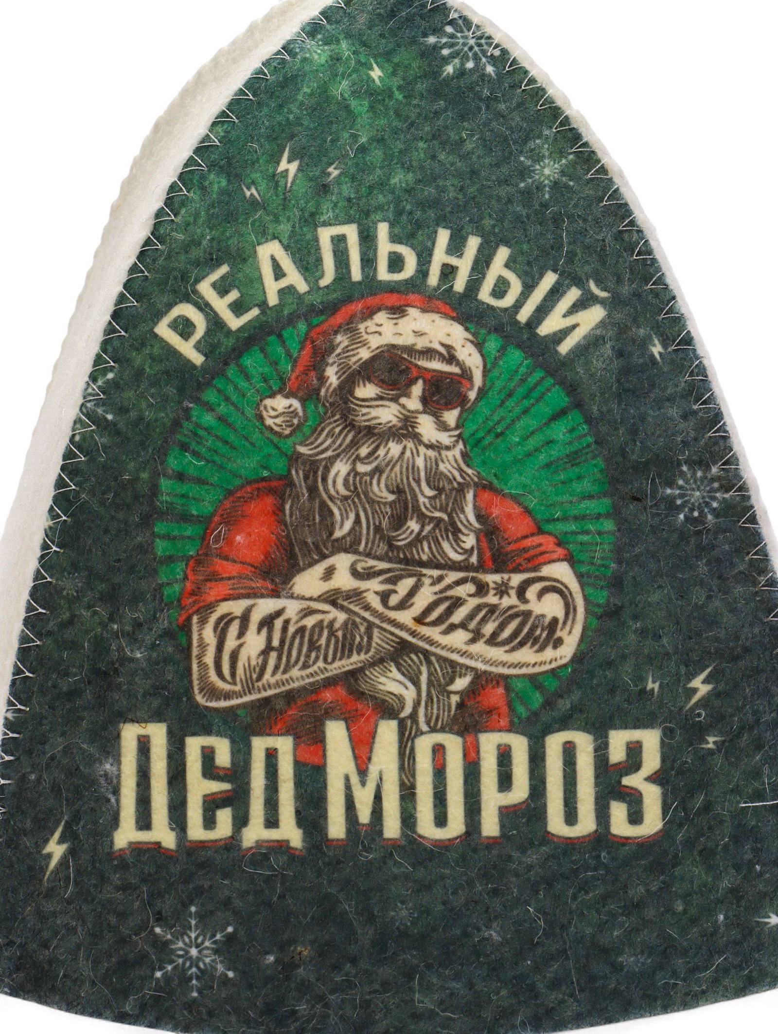 Шапка для бани и сауны, с принтом "Реальный Дед Мороз", полиэфир 70%, шерсть 30%, Банная забава, Россия