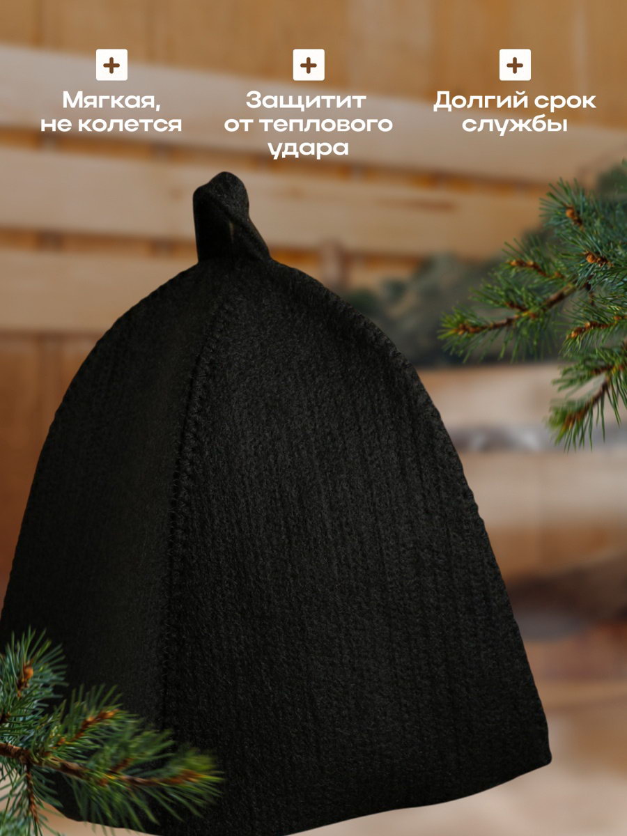 Шапка для бани и сауны, полиэфир 70%, шерсть 30%, с прямым низом, чёрная, Россия