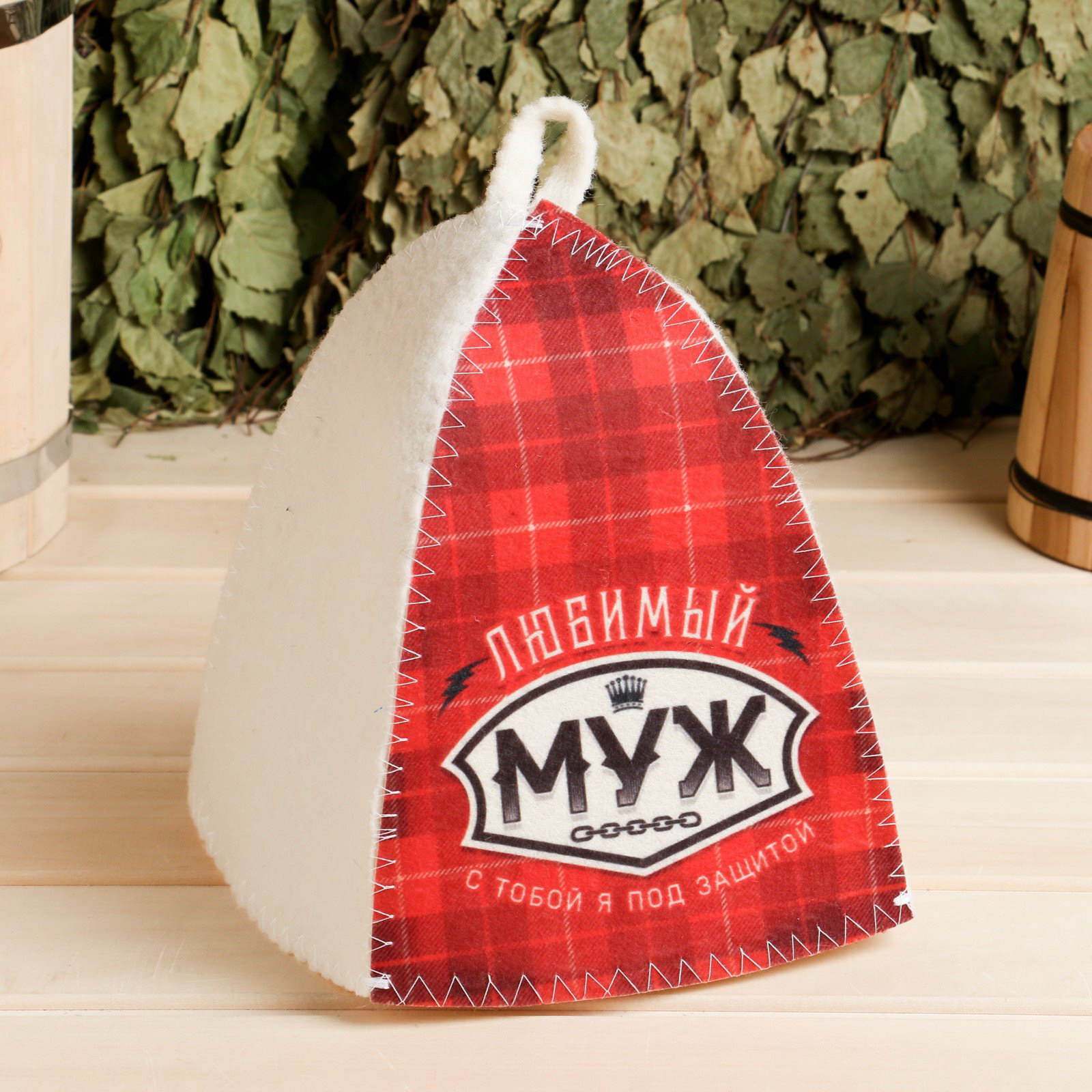 Шапка для бани и сауны "Любимый муж", полиэфир, шерсть, серая, Банная забава, Россия